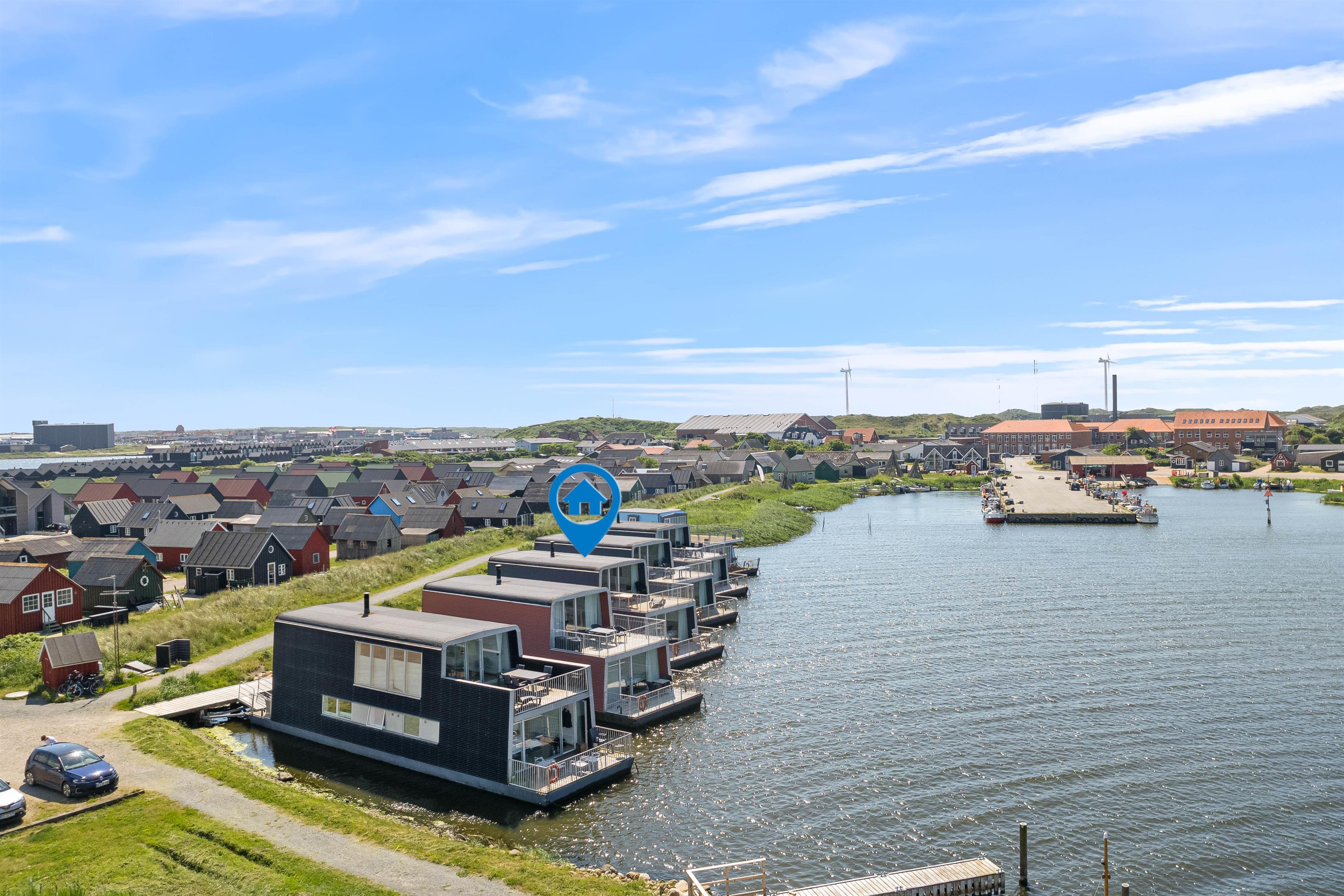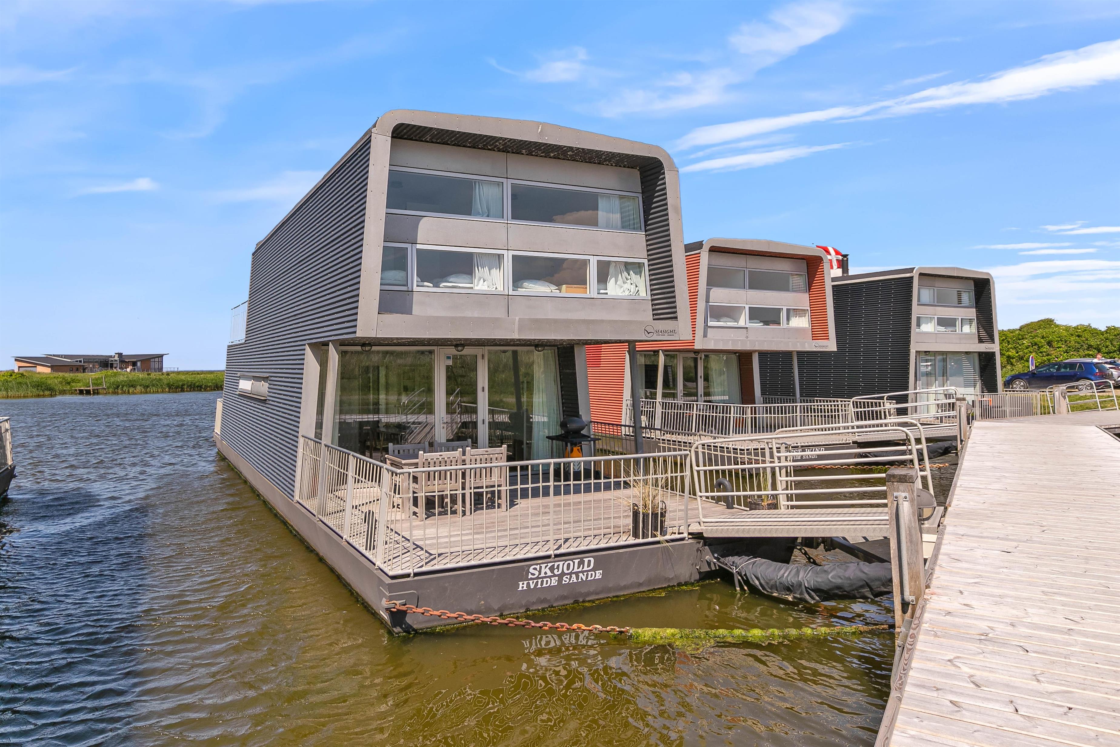 Ferie på en husbåd kan ikke sammenlignes med noget andet. Det er en oplevelse helt i særklasse. Man bor på vandet og har alligevel alle faciliteter, som er at finde i et luksus sommerhus. Derudover får I en pragtfuld beliggenhed med fantastisk udsigt og nær byliv med butikker og restauranter. Husbåden, som er fra 2005, er på 105 m2 og ligger i den hyggelige “Tyskerhavn” i Hvide Sande. Der er 3 soveværelser; et master bedroom med gulvtæppe og dobbeltseng, 1 værelse med 2 enkeltsenge og et med en mindre dobbeltseng. Ovenpå finder I den flotte og hyggeligt indrettede stue med en fantastisk udsigt over havn og fjord. Her er der fladskærms-TV og en flot knitrende brændeovn, som skaber hygge og varme. I stueetagen finder I husets 2 badeværelser. Et med bruseniche, gulvvarme og sauna, og et andet med bruseniche, gulvvarme og et lækkert hjørnespabad. Køkkenet er veludstyret med opvaskemaskine, mikroovn og en fryser på 40 L. Der er desuden vaskemaskine og tørretumbler.