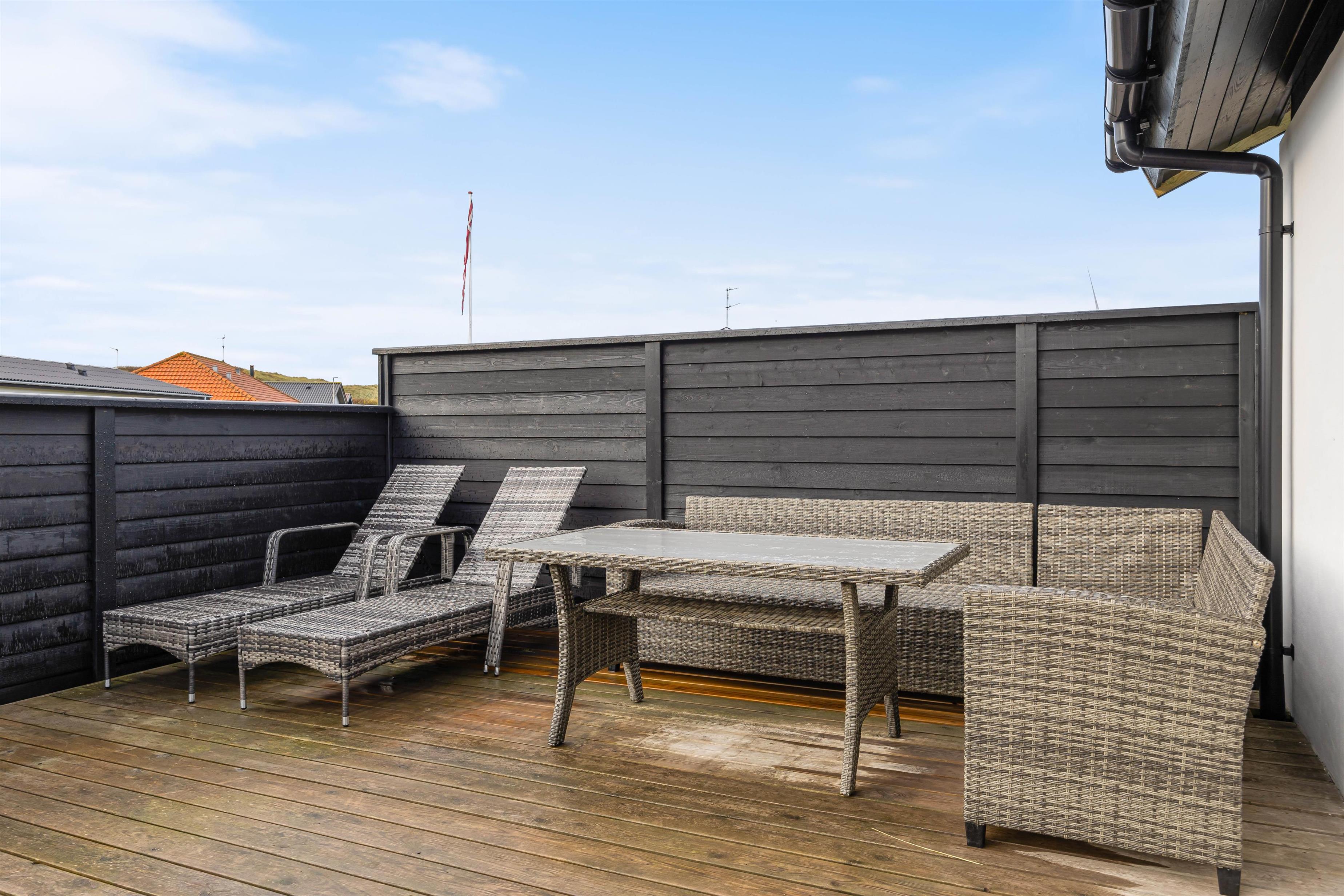 Udendørs byder sommerhuset på en dejlig terrasse, hvor I kan sidde uforstyrret og nyde ferien. Terrassen er ideel til morgenkaffen eller en god bog i solen, og om aften kan I finde grillen frem og nyde en hyggelig aften i det fri.