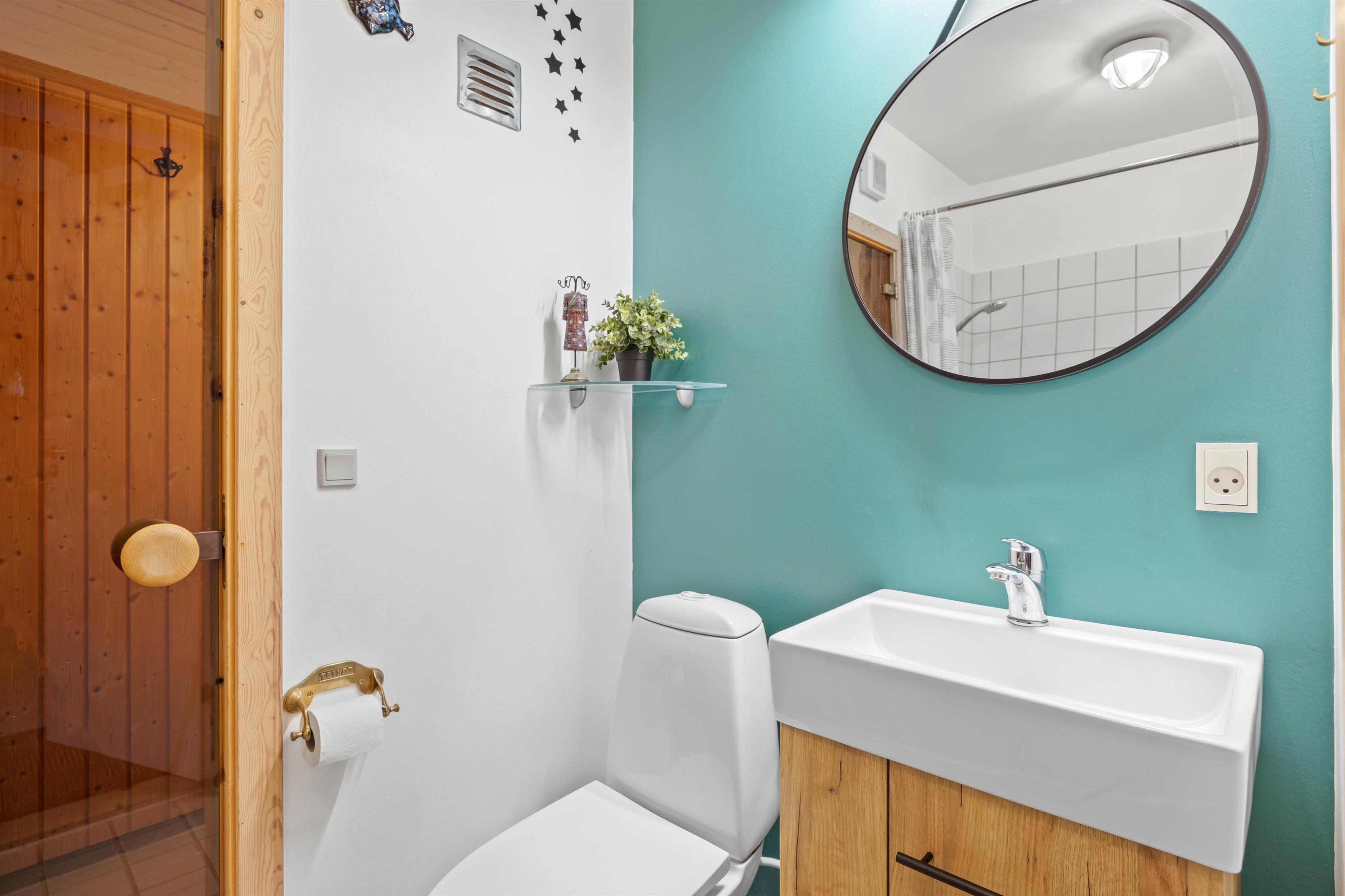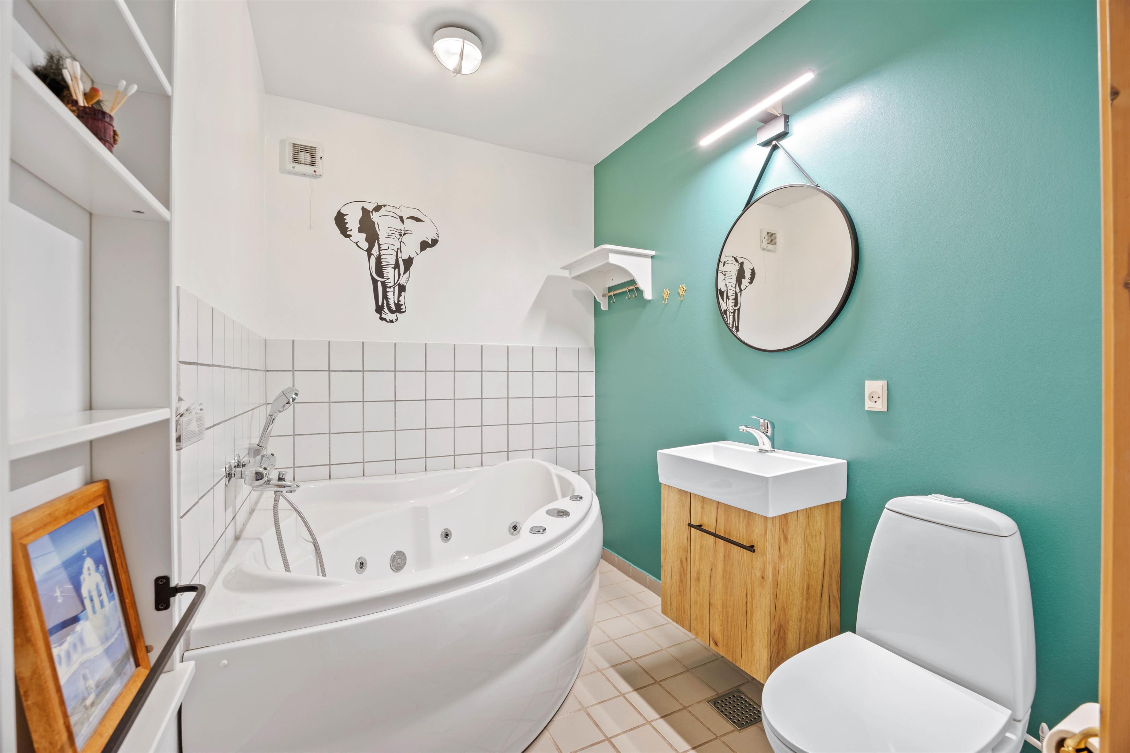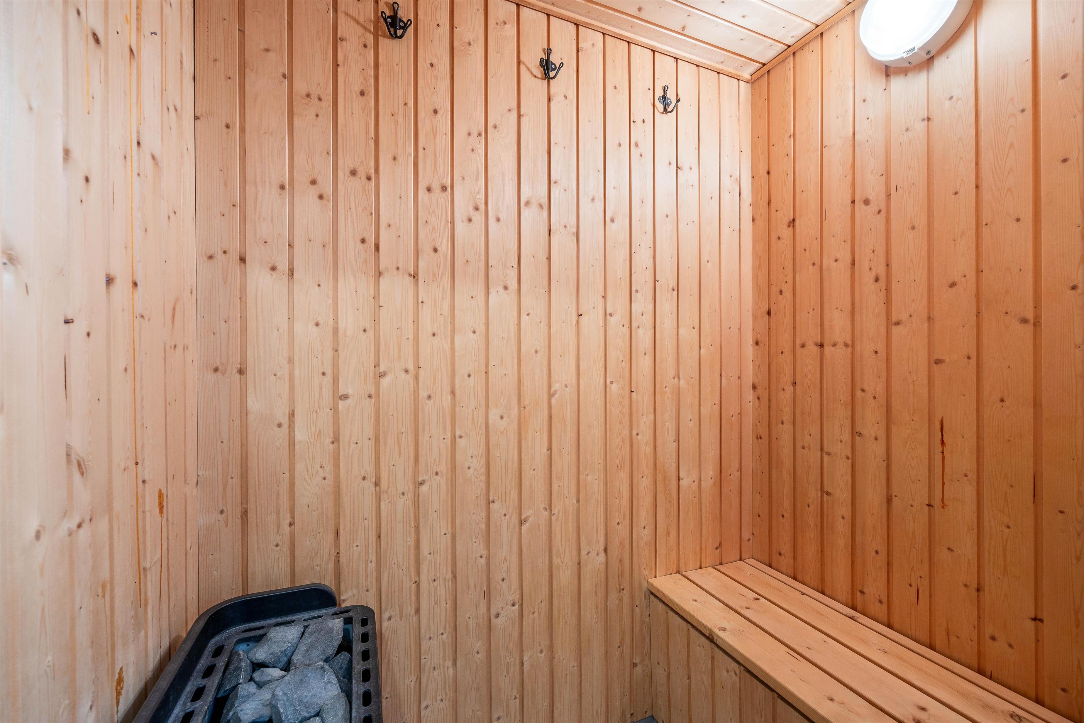 Som et ekstra plus råder lejligheden over 2 badeværelser med gulvvarme, og her finder I både spabad og sauna til en dejlig wellnessaften fyldt med afslapning og velvære.