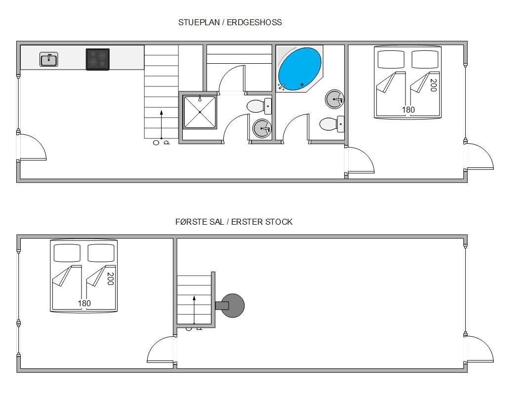 Køkkenet er praktisk udstyret med opvaskemaskine, induktionskomfur og mikroovn, så der kan laves et lækkert måltid – måske I selv har fanget en fisk eller 2, som skal tilberedes? Efter en god middag kan I trække jer tilbage på de 2 soveværelser, som er indrettet med 2 dobbeltsenge og 1 enkeltseng.