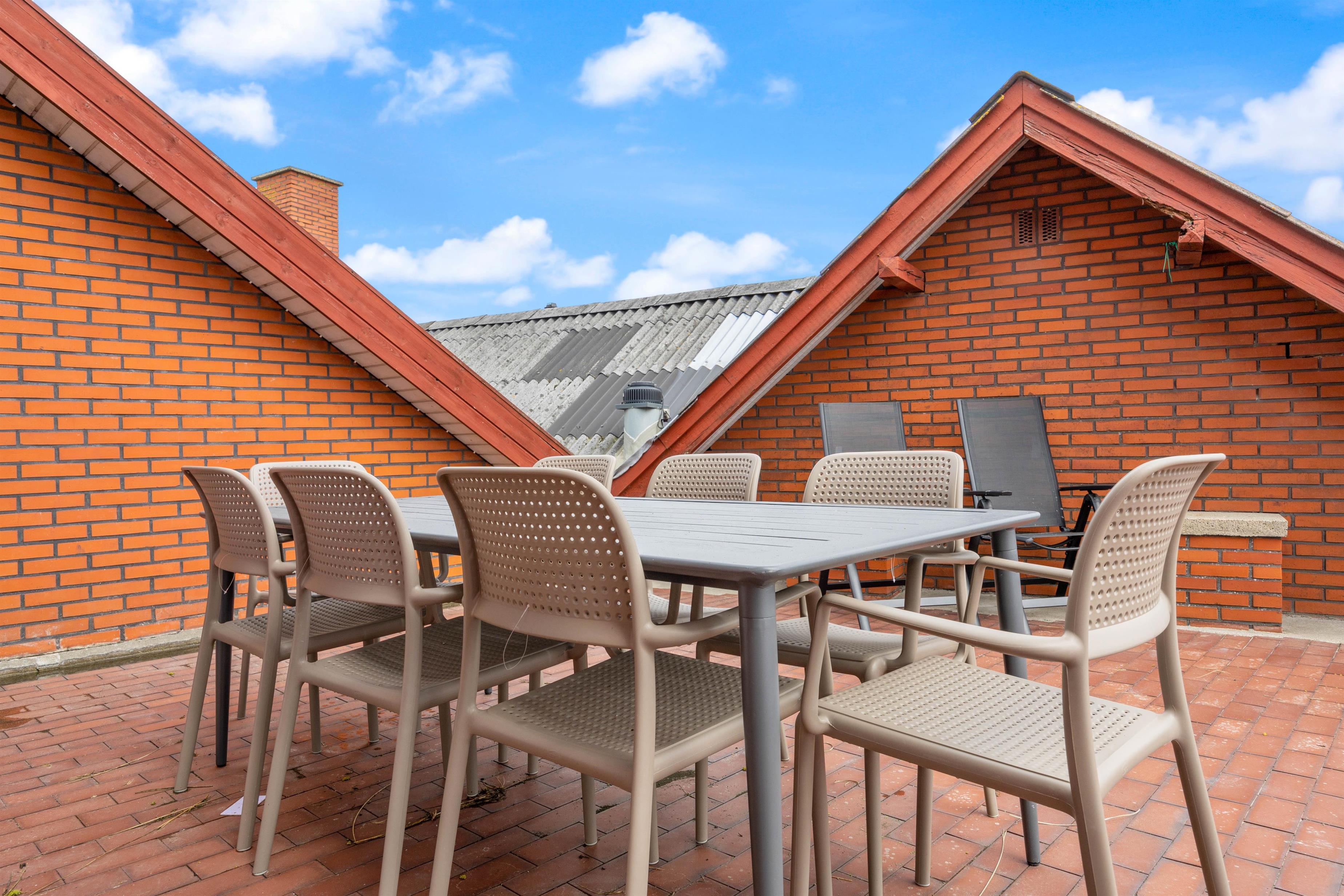 Tilhørende ferielejligheden er der 2 tagterrasser, hvorfra I har en skøn panoramaudsigt til området og havnen. Her kan I se skibene sejle i havn og mennesker, der forsøger at fange en fisk. Her er det oplagt at spise et lækkert grillmåltid, spille et brætspil eller nyde solens stråler. Her er der nemlig både havemøbler, grill og liggestole, som I kan benytte i det gode vejr.