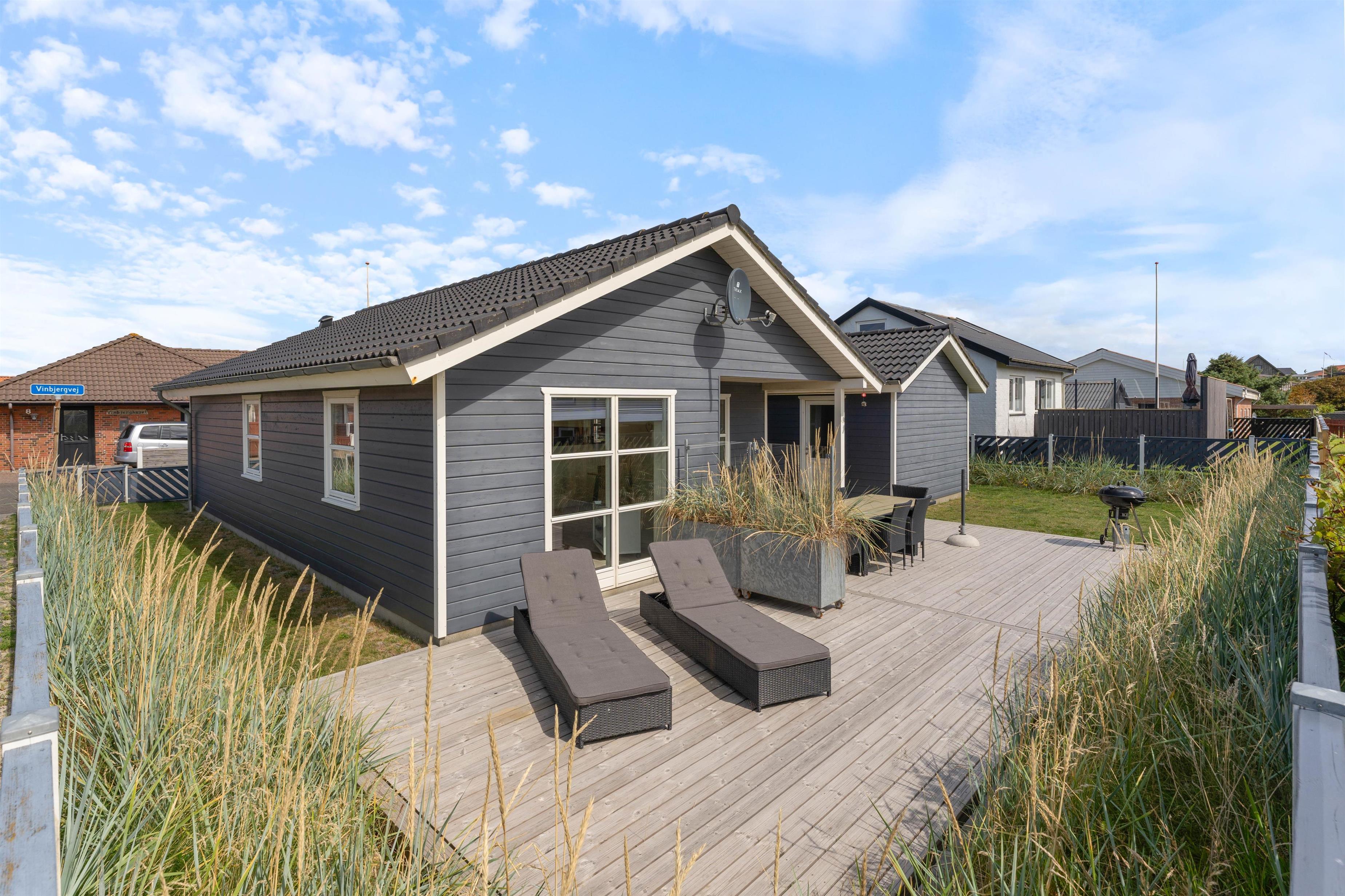 På Vinbjergvej 9 i Hvide Sande finder I dette fine feriehus med plads til 4 personer og 1 hund. Her får I strandferie og byferie kombineret i ét. Fra sommerhuset er der 200 meter til Vesterhavet, og nærmeste indkøb ligger 450 meter herfra.
