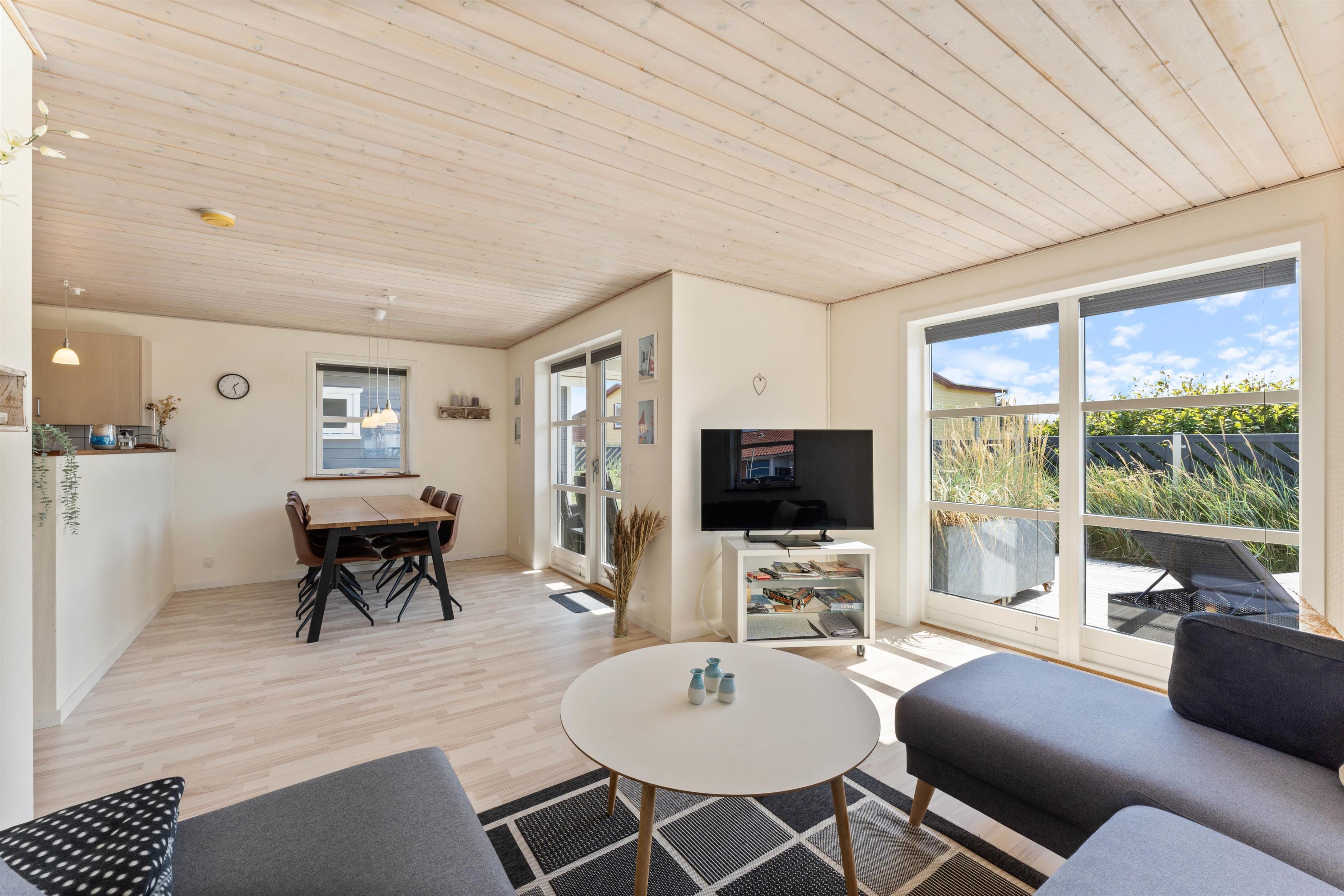 Sommerhuset er velindrettet og fremstår lyst og indbydende. Opholdsrummet består af stue, køkken og spiseplads i ét, så familien kan være samlet mest muligt - også når der skal laves mad. Hvis I ankommer i en el-bil, finder I i dette sommerhus en ladeboks til elbil med et type 2 stik med en max. ladeeffekt på 16 Kwh.