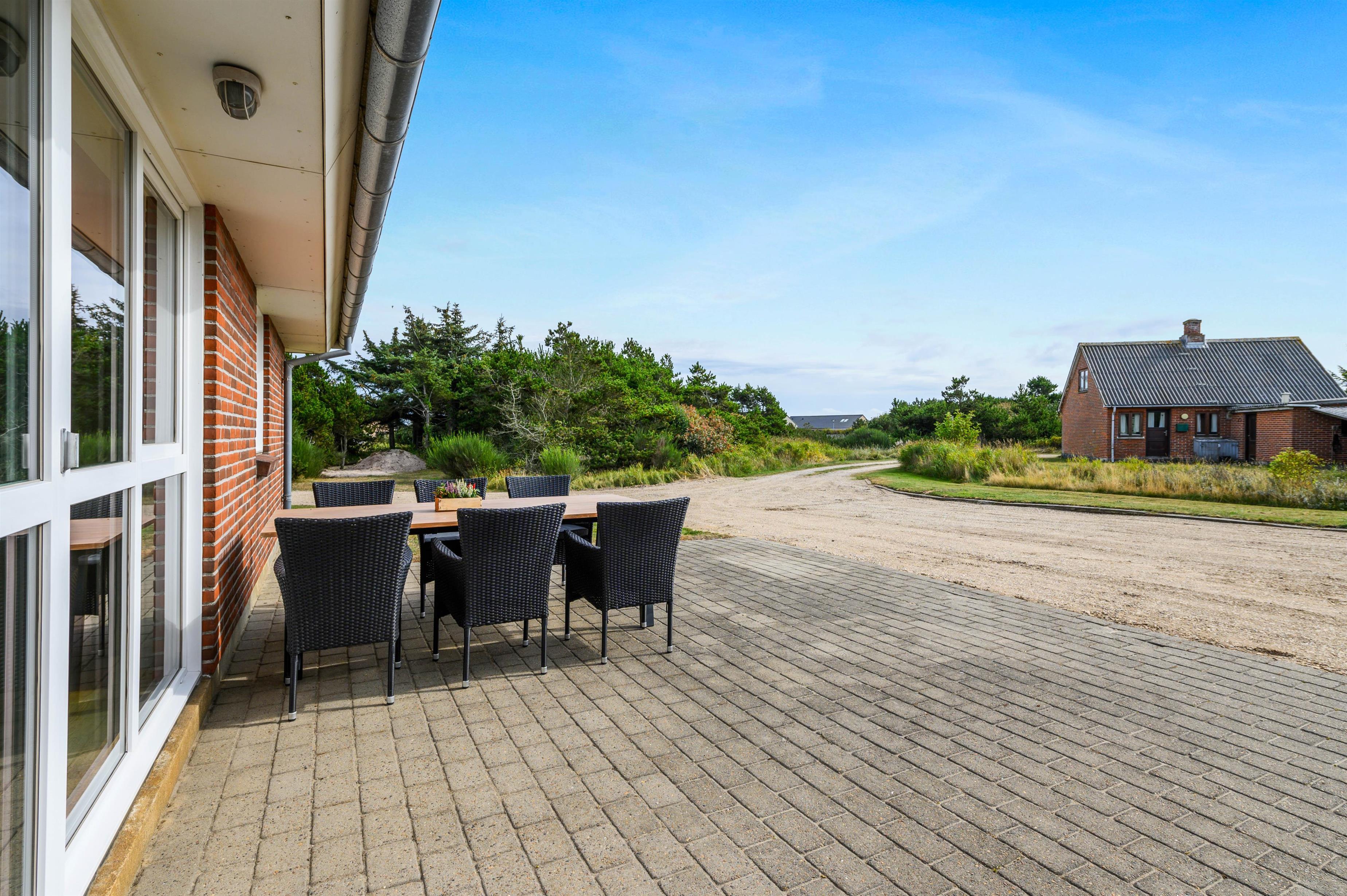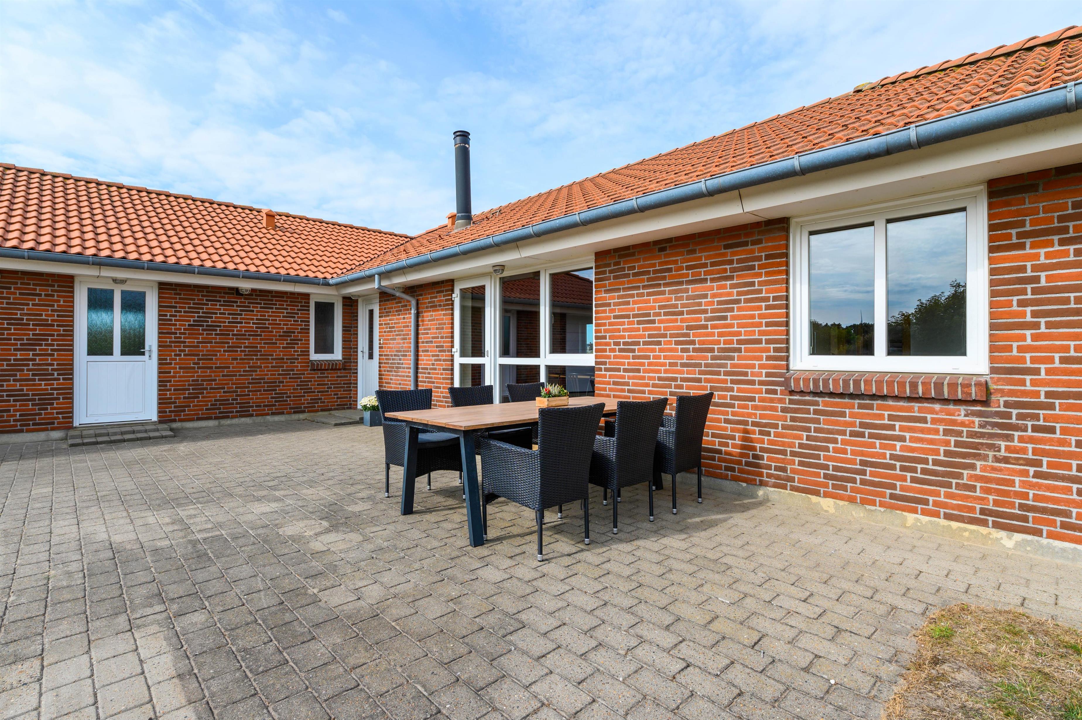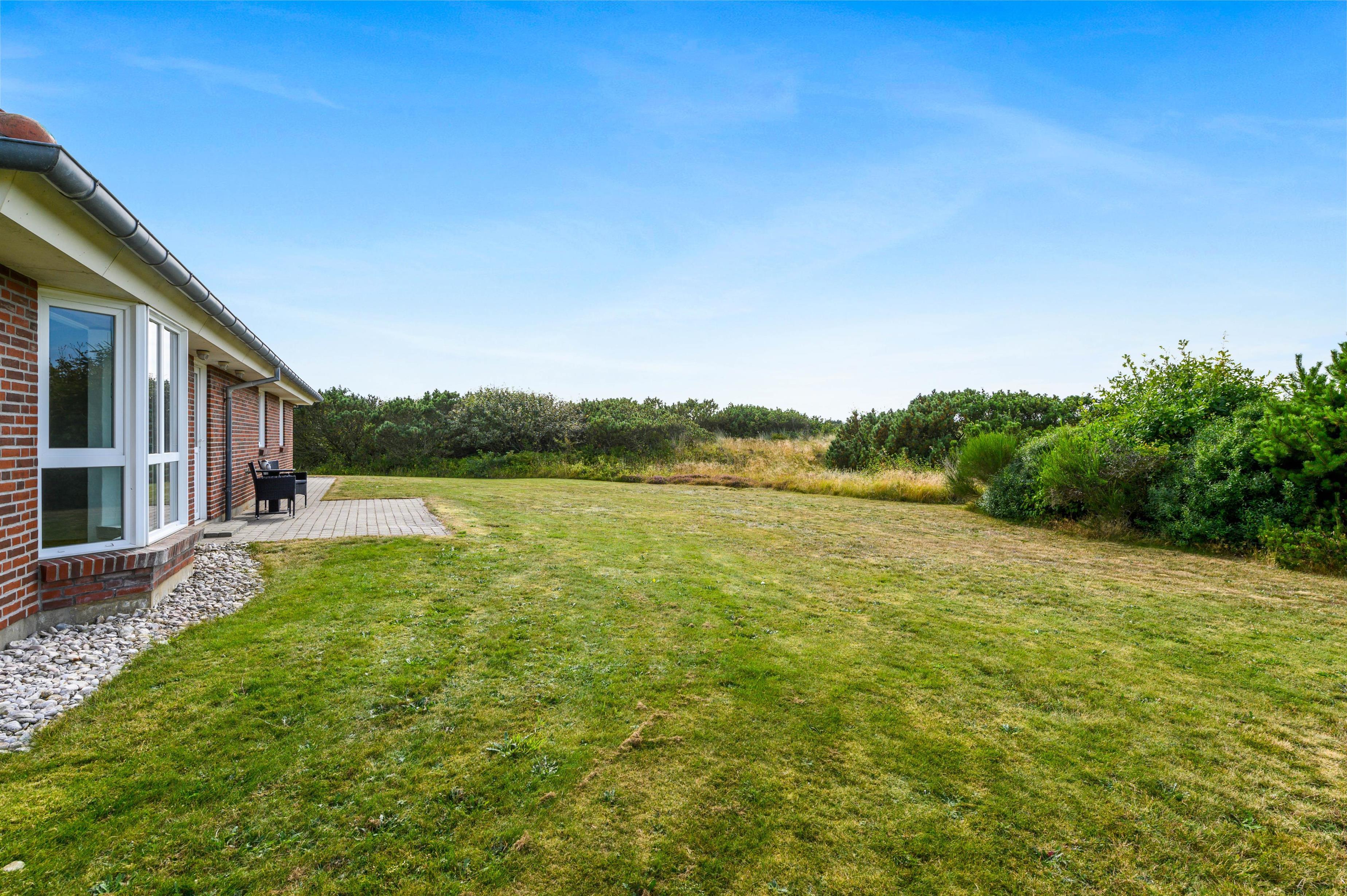 Sommerhuset har et skønt udendørsområde, der er ideel til afslapning i den friske luft. Her står komfortable havemøbler og liggestole klar til jer på den delvist afskærmede terrasse. Den perfekte afslutning på en god feriedag er på terrassen med et lækkert grillmåltid og et godt glas vin, og børnene kan lege på den store plænegrund, som tilhører sommerhuset.