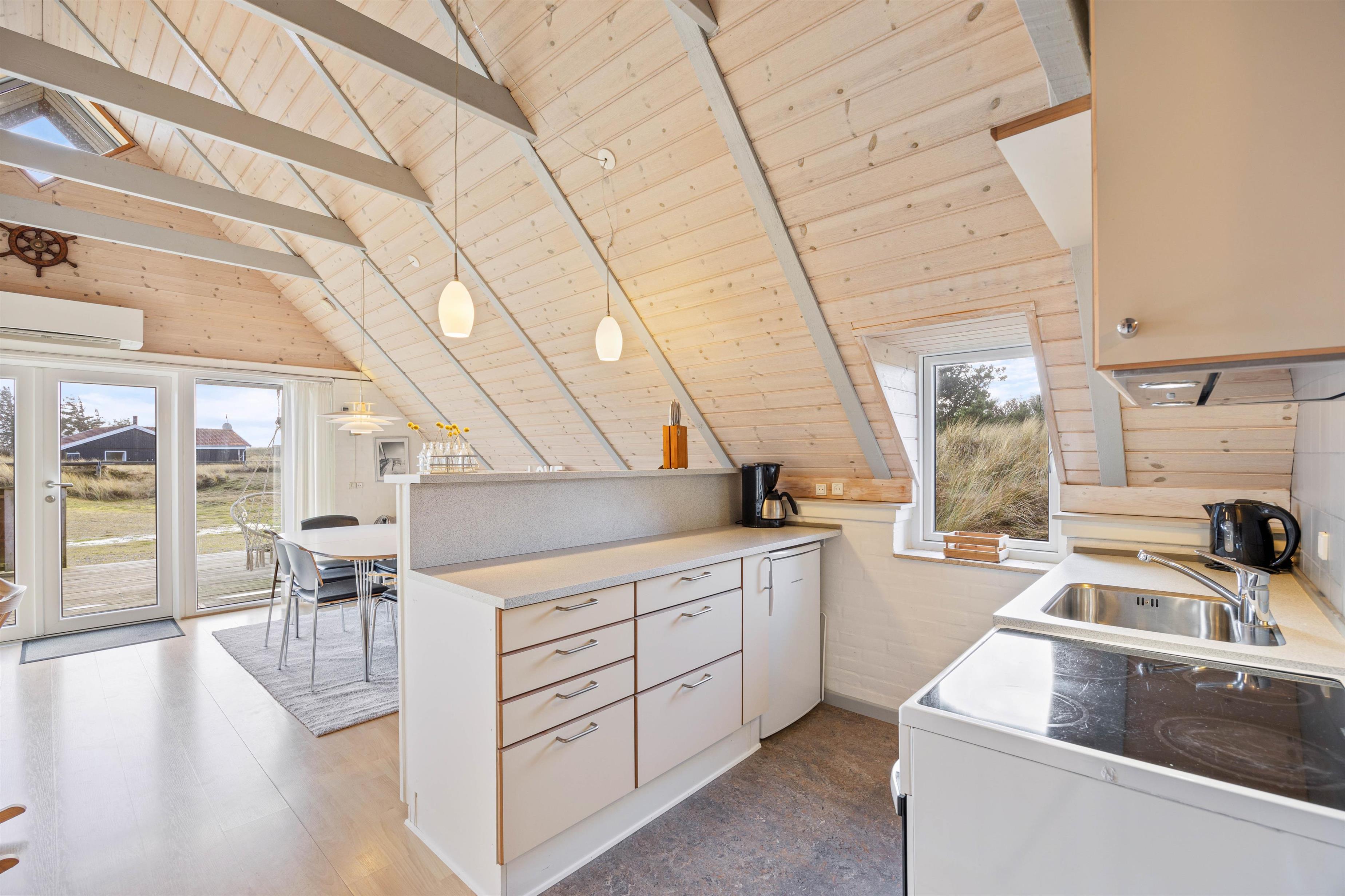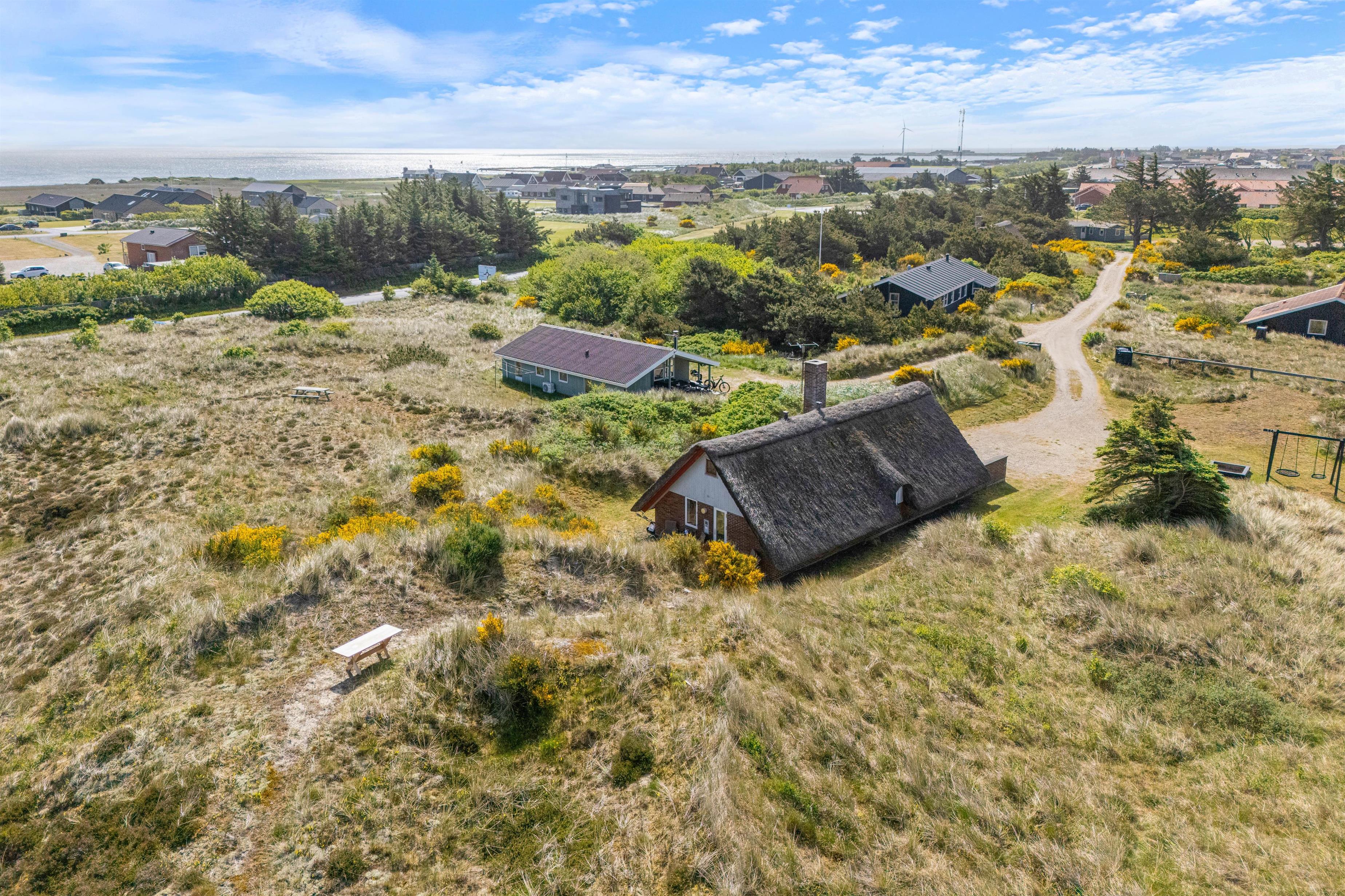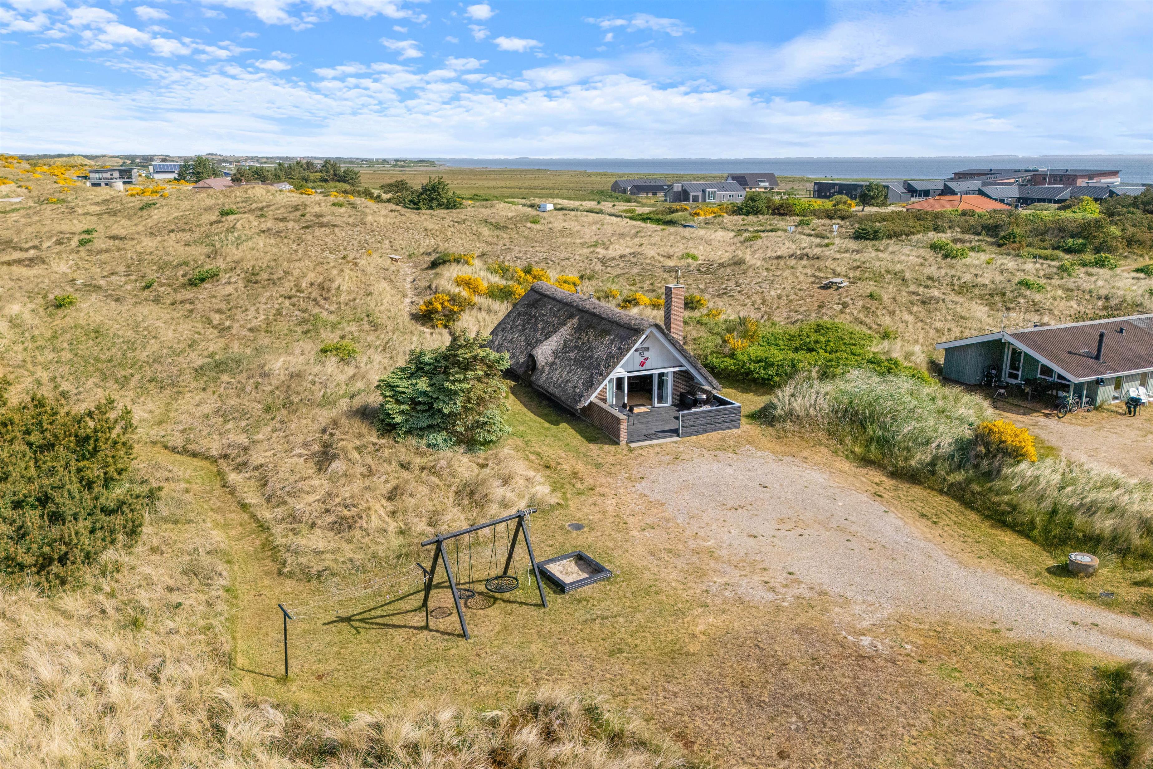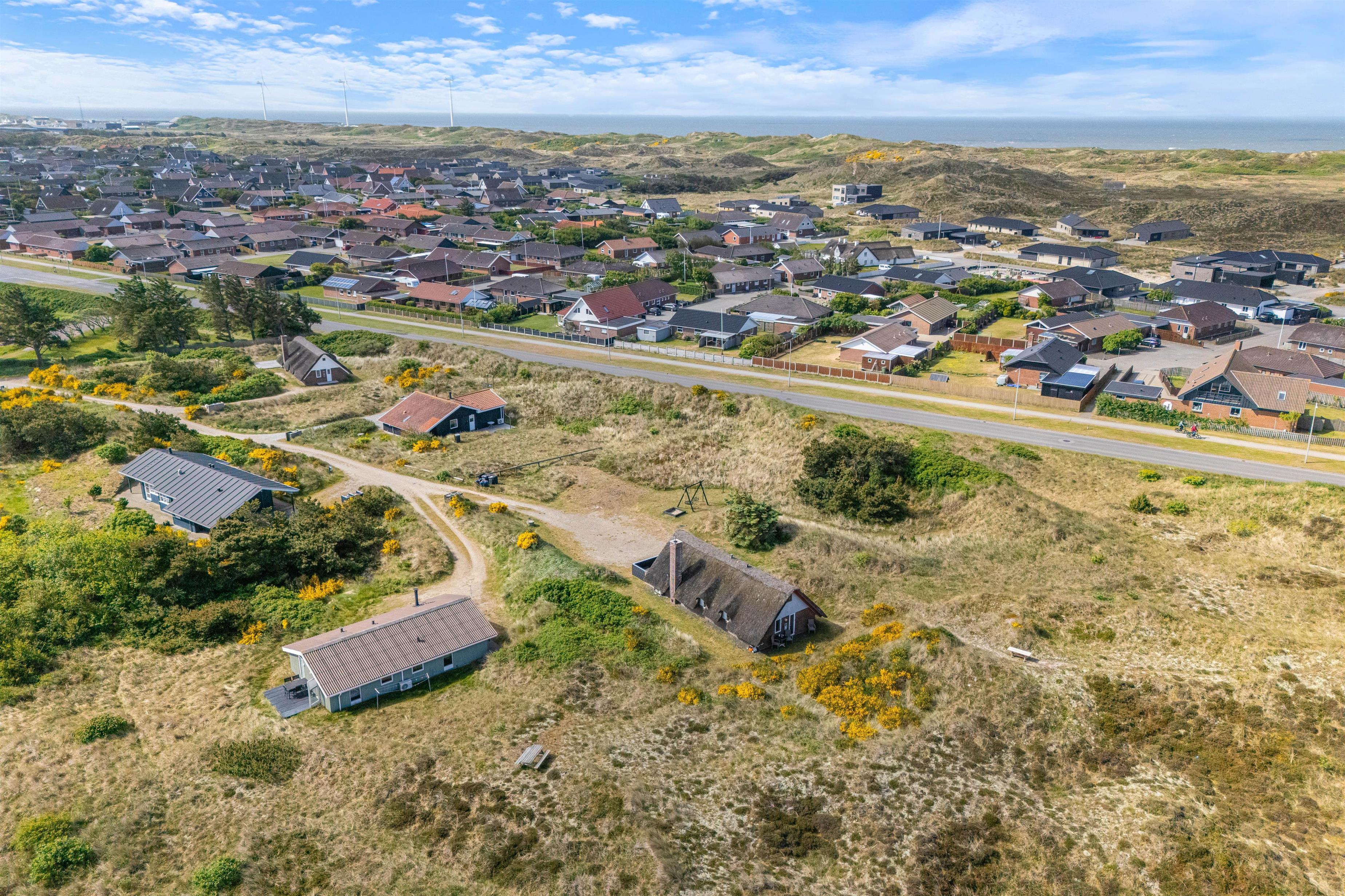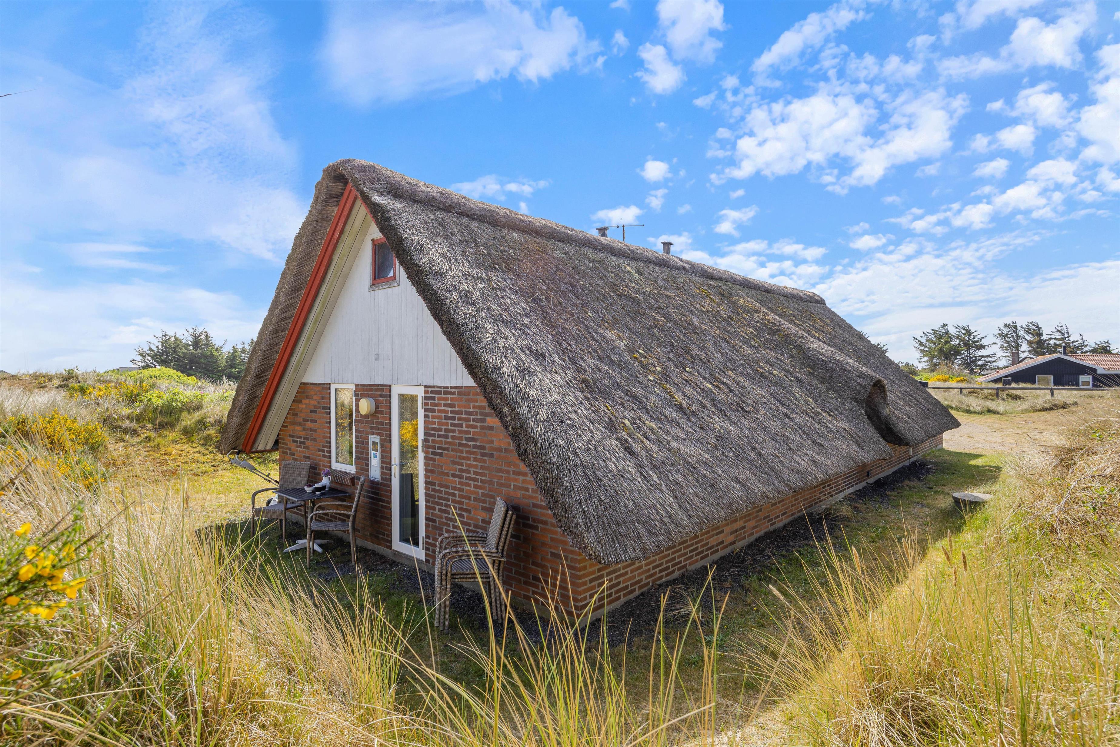 Feriehuset ligger i den nordlige del af Hvide Sande i et uforstyrret område, hvor marehalmen flagrer i vinden. Hverken Vesterhavet eller Ringkøbing Fjord ligger længere end en gåtur fra sommerhuset. Ringkøbing Fjord er perfekt for surfere, om man er til windsurfing, kabelbane eller hyggelige gåture med hunden. Fra Syd- og Nordmolen i Hvide Sande finder I de perfekte badestrande.