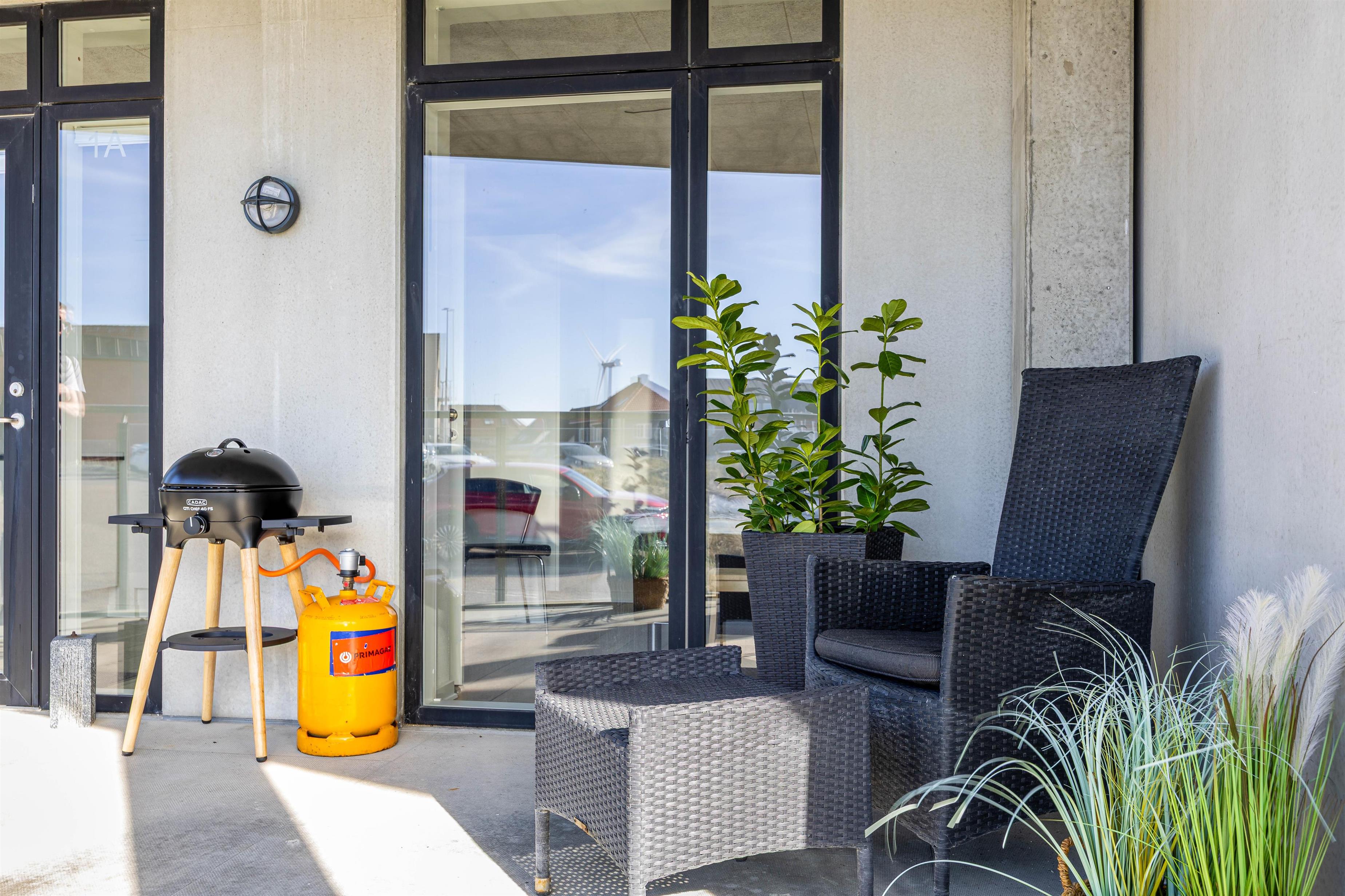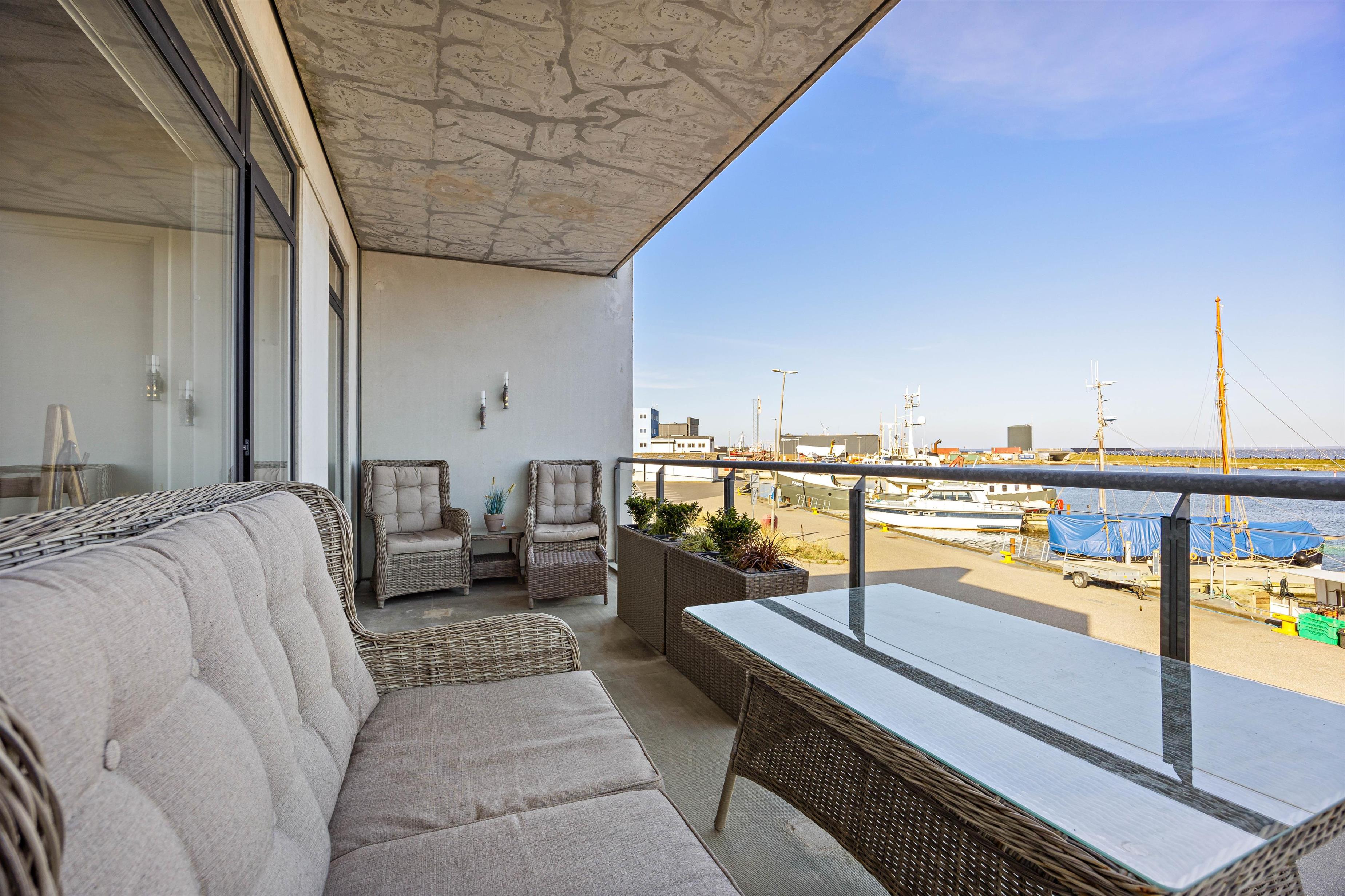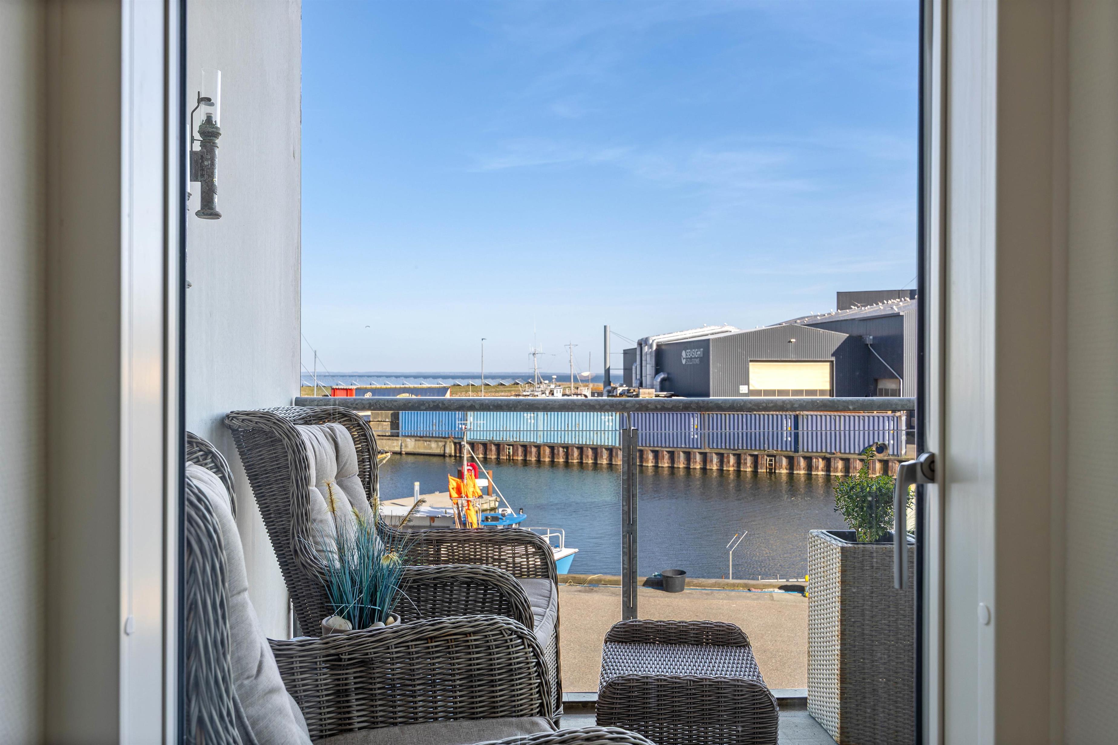 Udenfor finder I 2 overdækkede altaner – 1 mod vest ved indgangen, som ligger ugeneret, da lejligheden ligger i enden af bygningen og 1 mod øst med direkte udgang fra køkken-alrummet. Altanen mod øst er perfekt til at nyde morgenkaffen i læ for vinden eller grille en lækker middag på de lune sommeraftener. Den fantastiske udsigt over havnen og de små fiskerbåde skaber en unik stemning og giver en særlig ro til feriedagene.