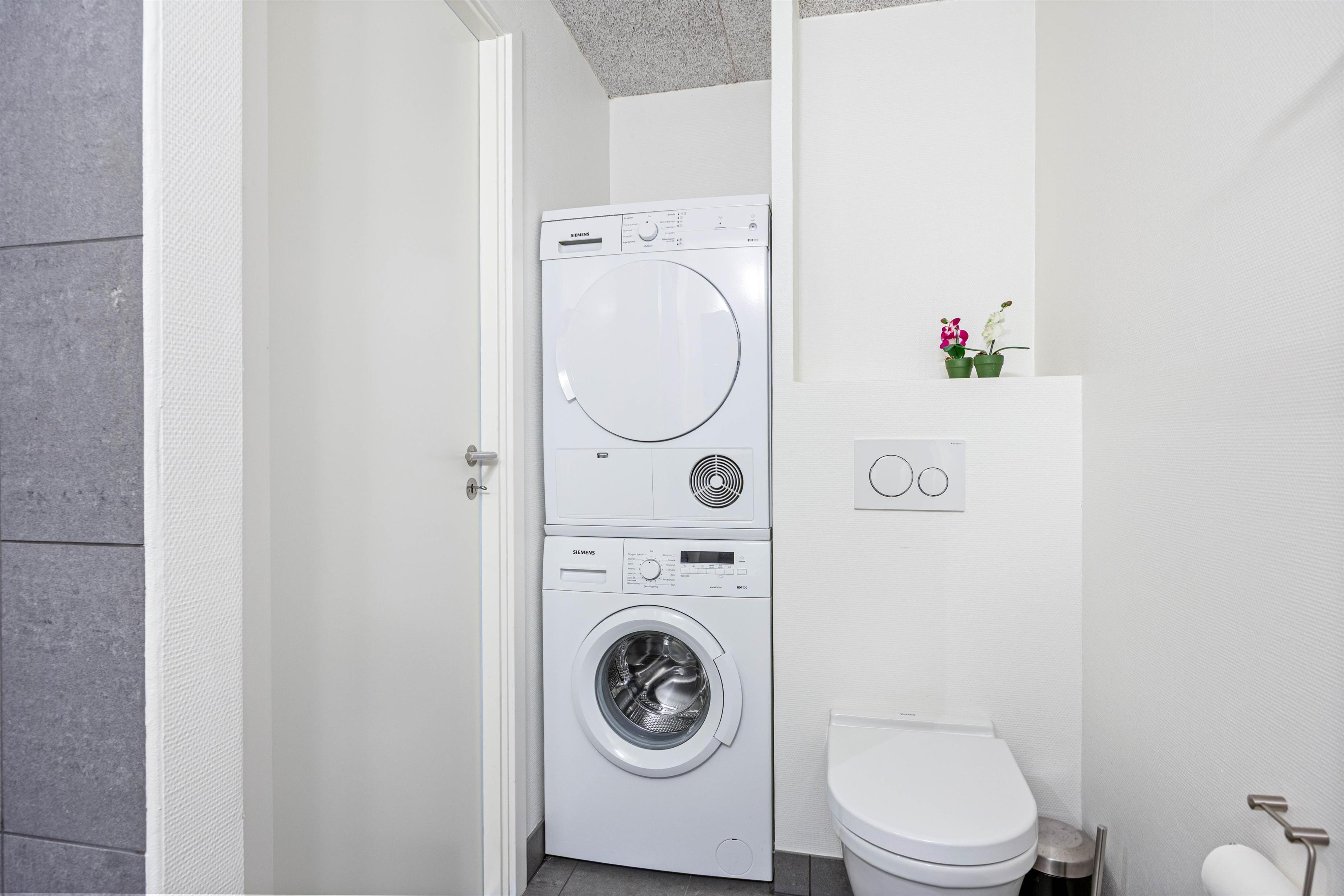 Lejligheden har 2 soveværelser – et med dobbeltseng og et med 2 enkeltsenge – og 1 dejligt badeværelse med gulvvarme, der sikrer varme fødder fra morgenstunden. På badeværelset finder I også en vaskemaskine og tørretumbler, så I har mulighed for at få vasket jeres tøj.