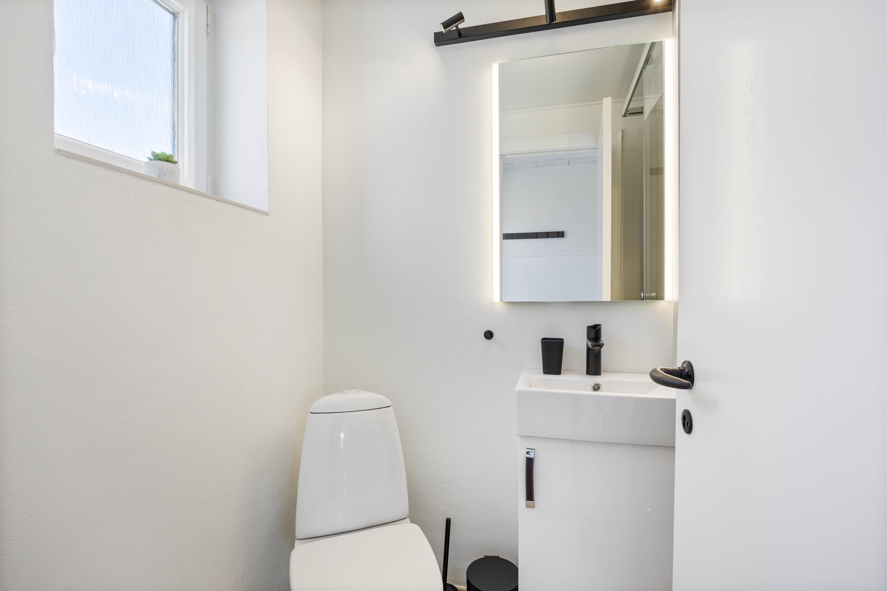 Praktisk er her både badeværelse og gæstetoilet, så I undgår kø om morgenen. Her er tre fine soveværelser, som alle er udstyret med komfortable dobbeltsenge. Friske håndklæder sørger vaskemaskinen og tørretumbleren for! Sommerhuset forsynes med fjernvarme og er derfor billigt at opvarme.