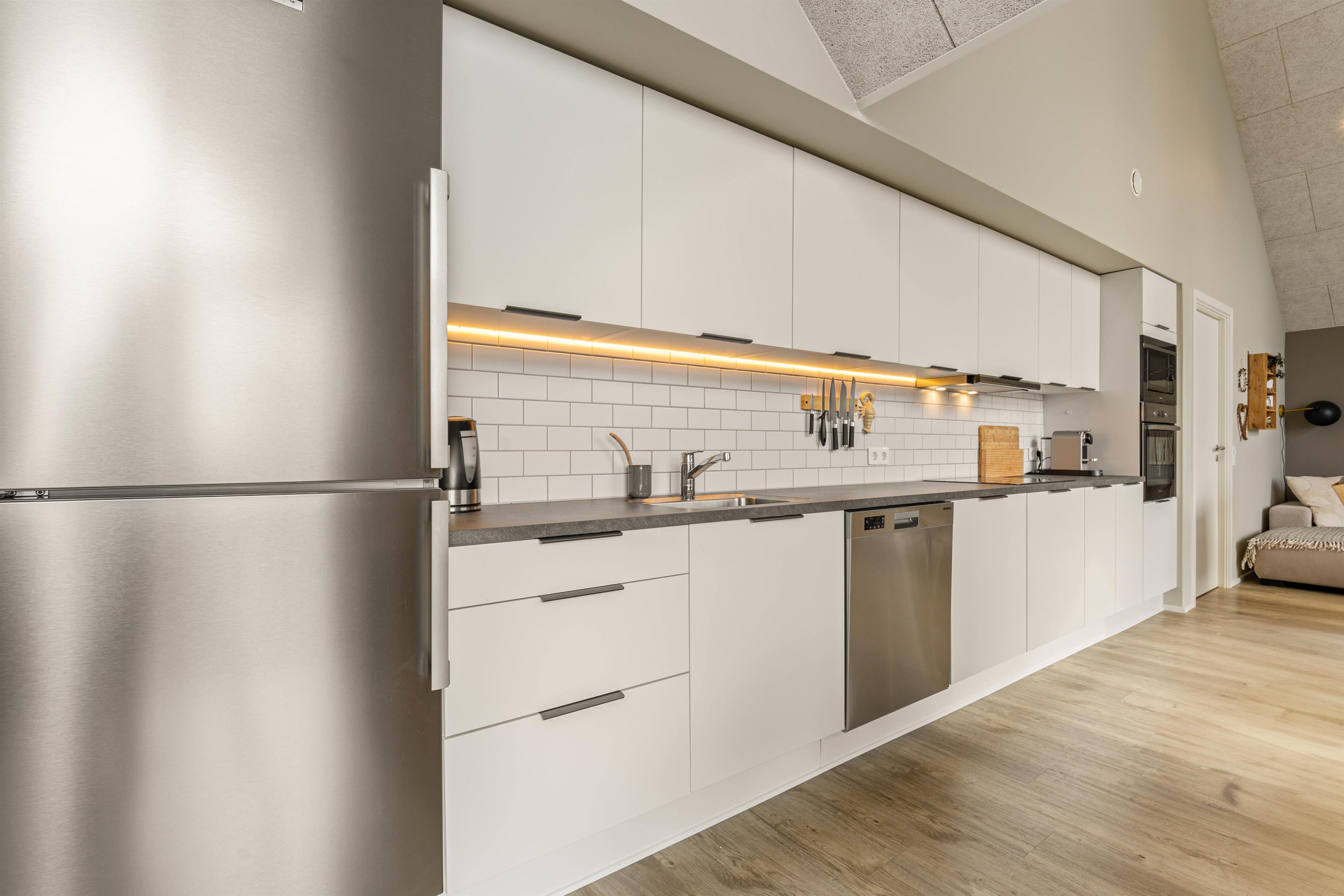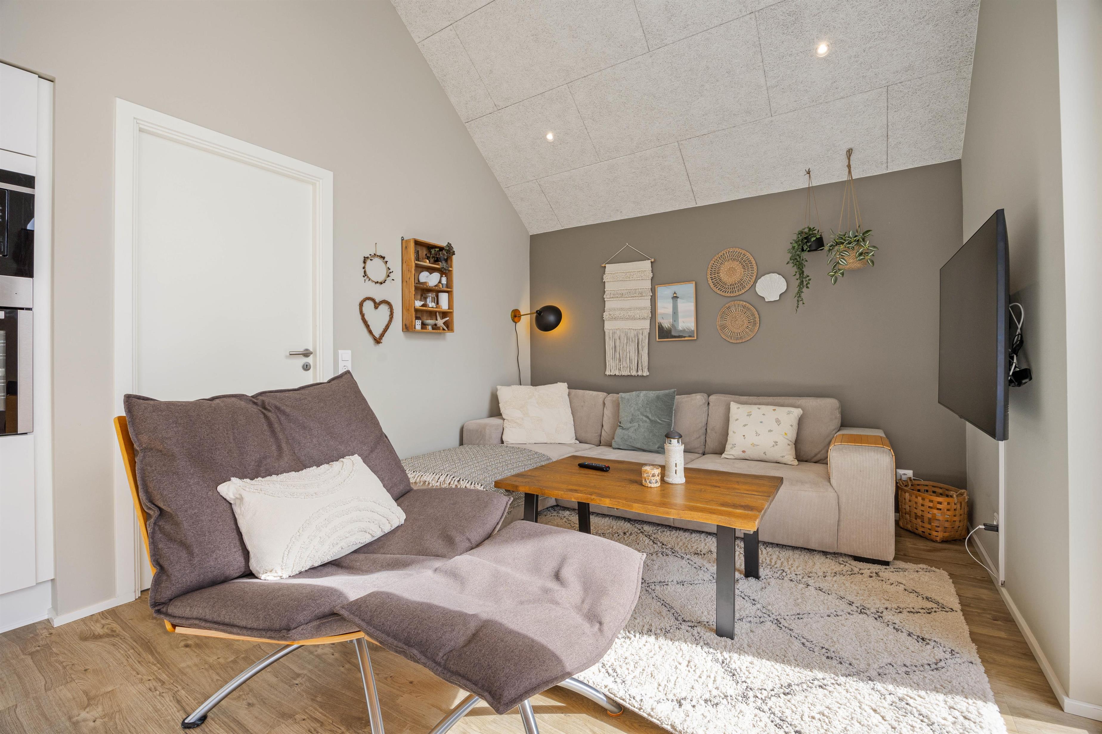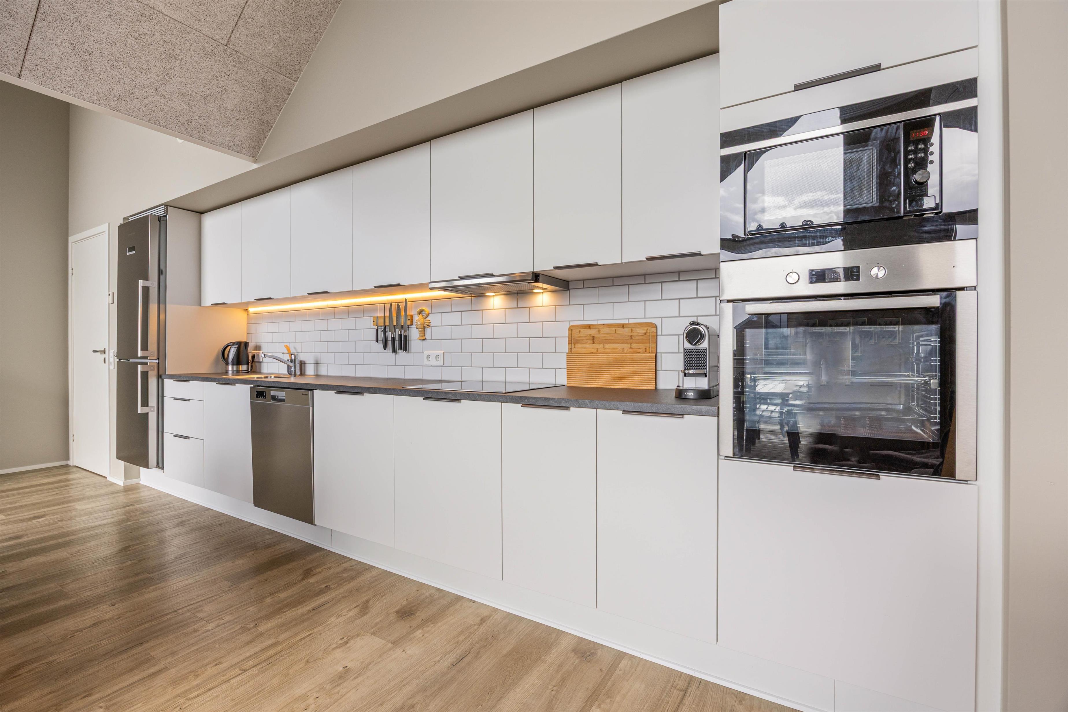 Ferielejligheden på første sal er opført i 2022 og inviterer dig indenfor i en lækker og strømlinet indretning, hvor ”moderne” og ”hyggelig” smelter sammen på bedste vis. Alle praktiske faciliteter er i top, og de huslige pligter er hurtigt overstået med både opvaskemaskine, vaskemaskine og tørretumbler i ferieboligen.