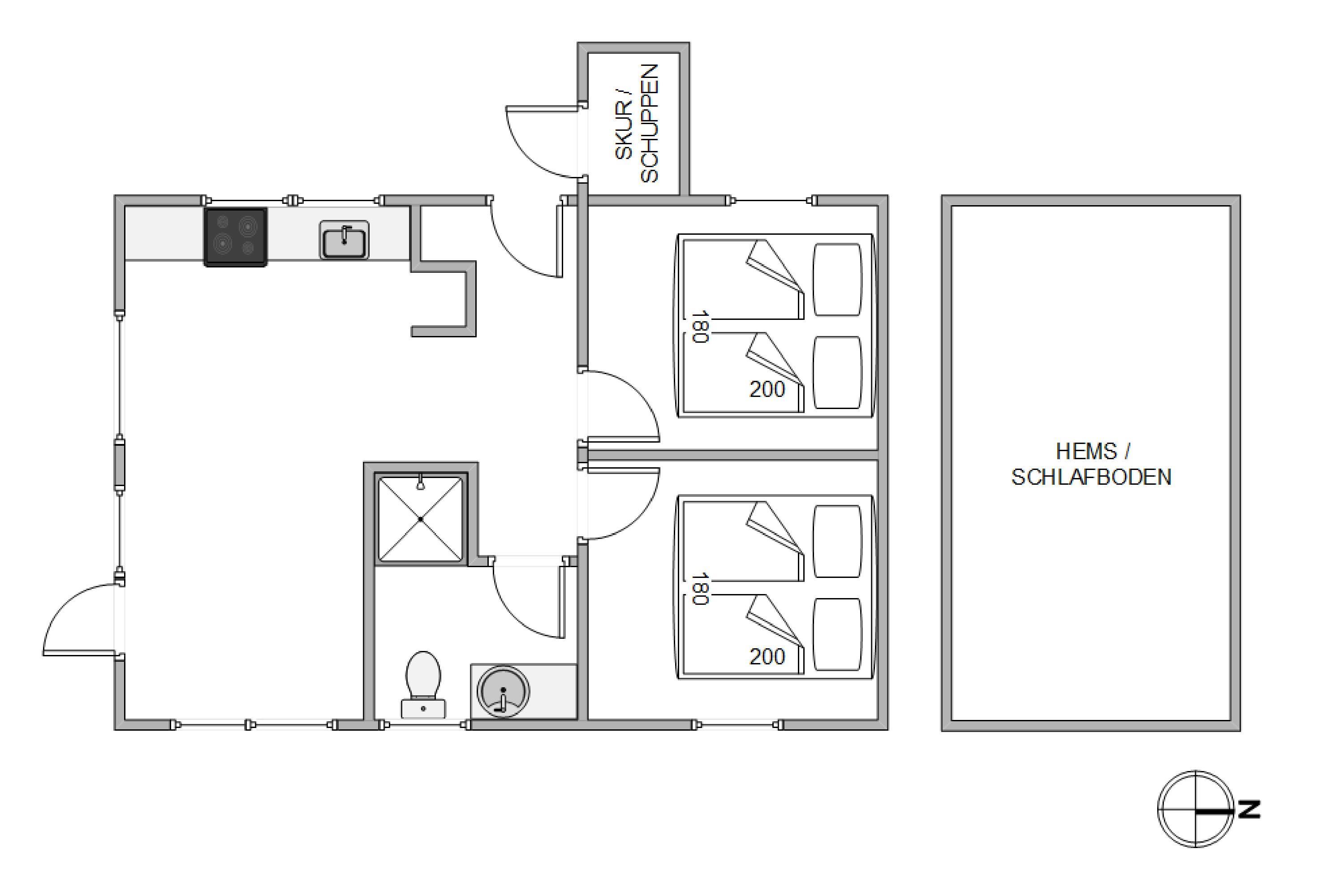 Det lille sommerhus fremstår lyst og indbydende med de moderne faciliteter, sans for detaljer og afslappende atmosfære. Her vil I hurtigt føle jer godt tilpas. Hjertet af sommerhuset vil helt sikkert blive jeres samlingspunkt til hyggelige og sjove stunder med familien. Køkkenalrummet tilbyder desuden et fint og funktionelt køkken med alt det nødvendige.