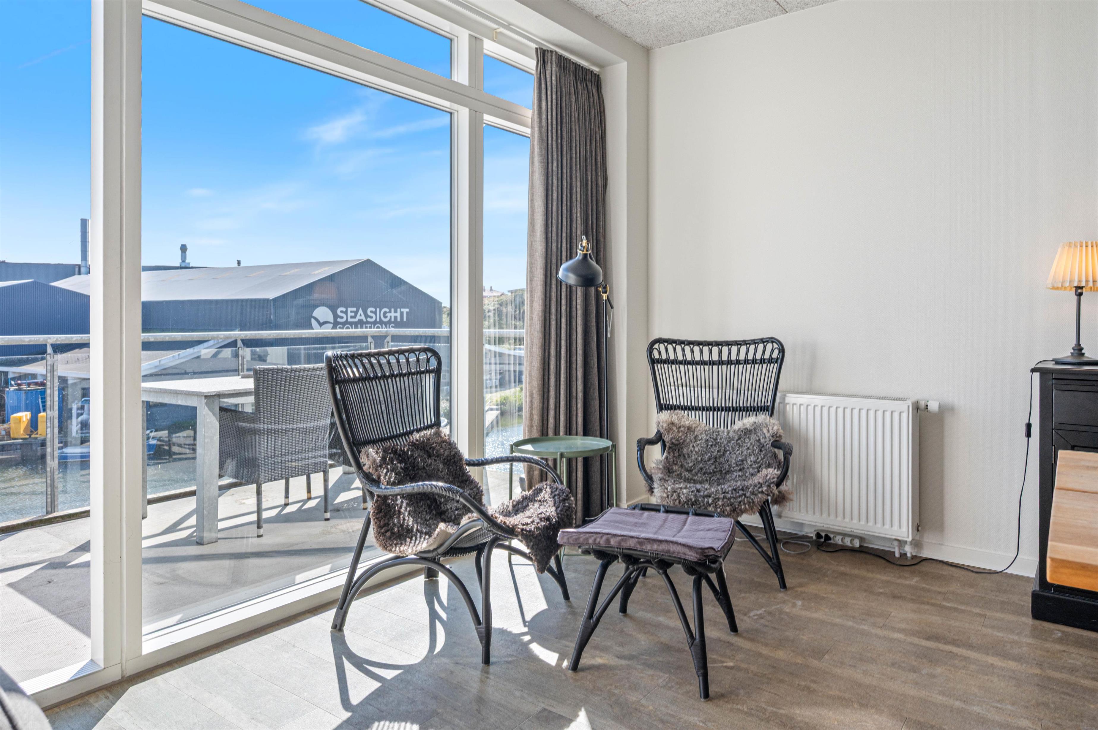 I har det charmerende havnemiljø lige uden for vinduet, og I kan nyde den flotte udsigt fra sofaen ligegyldigt vind og vejr. Ferielejligheden har en god og stabil internetforbindelse, så I kan surfe på nettet på den medbragte elektronik. En ekstra bonus er, at strømforbruget er inkluderet i lejeprisen - så I behøver ikke tænke på ekstra omkostninger i jeres ferie.