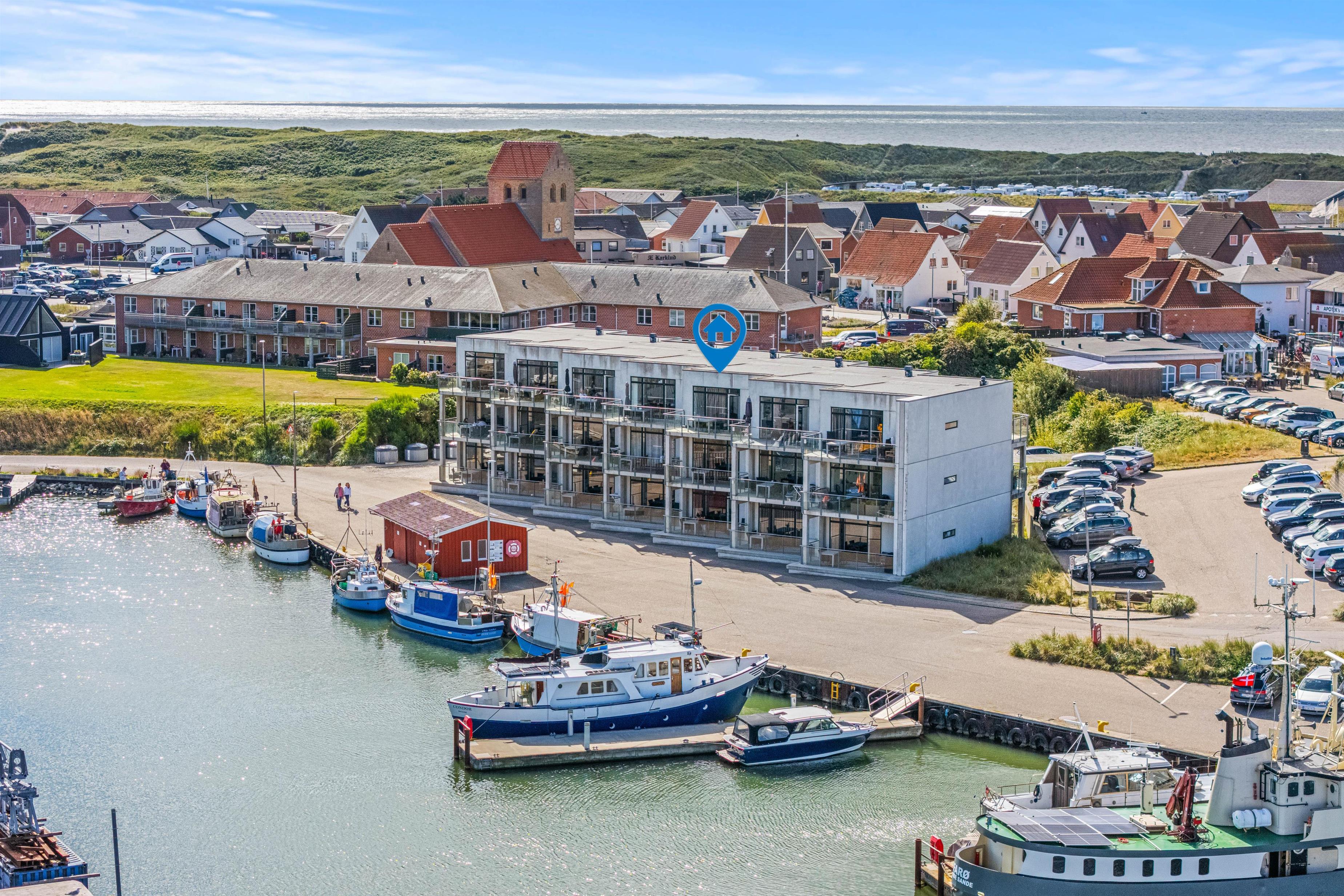 I får en helt unik beliggenhed i den hyggelige havneby Hvide Sande, og her ligger alt i gåafstand fra feriehjemmet.