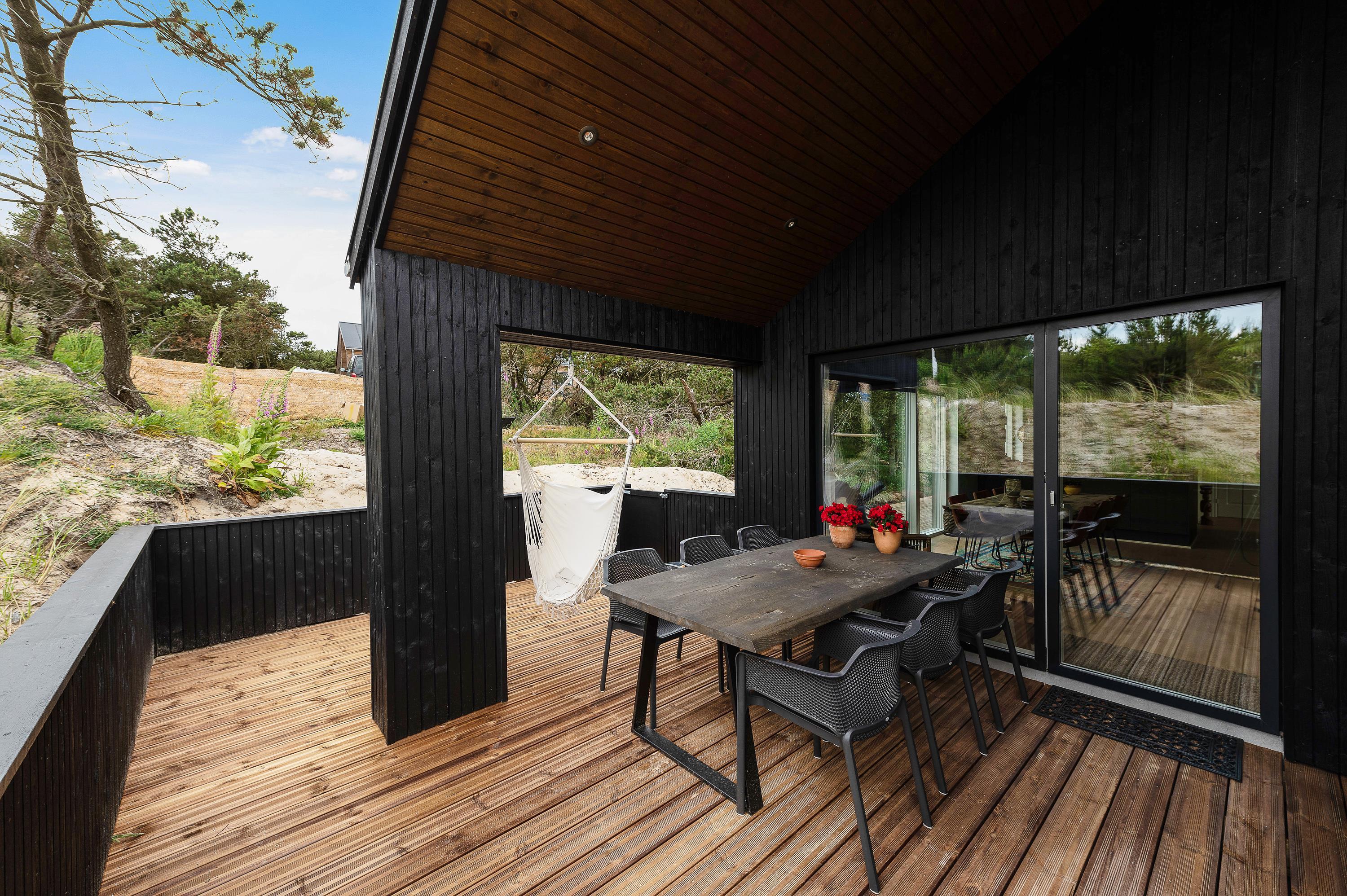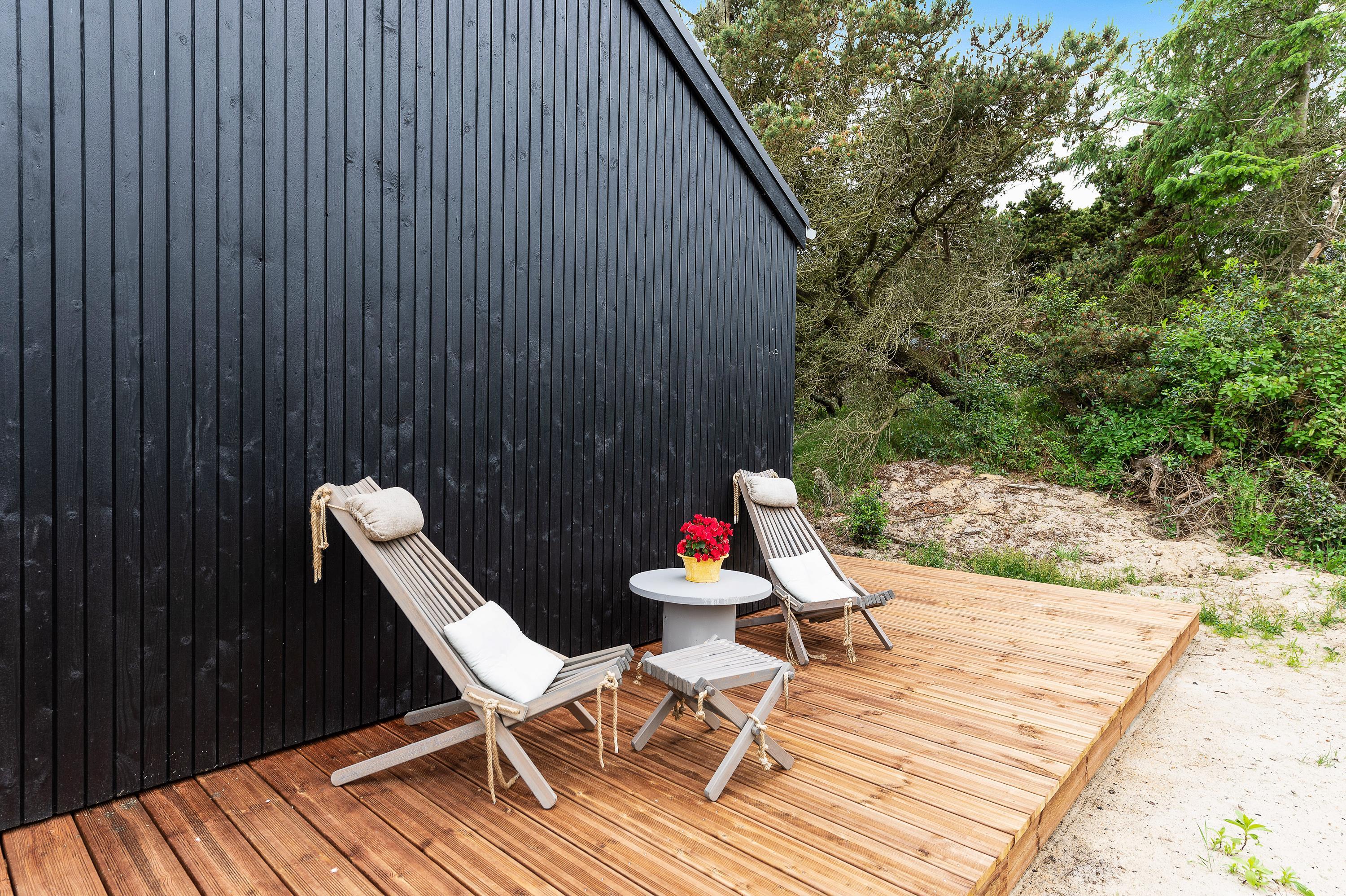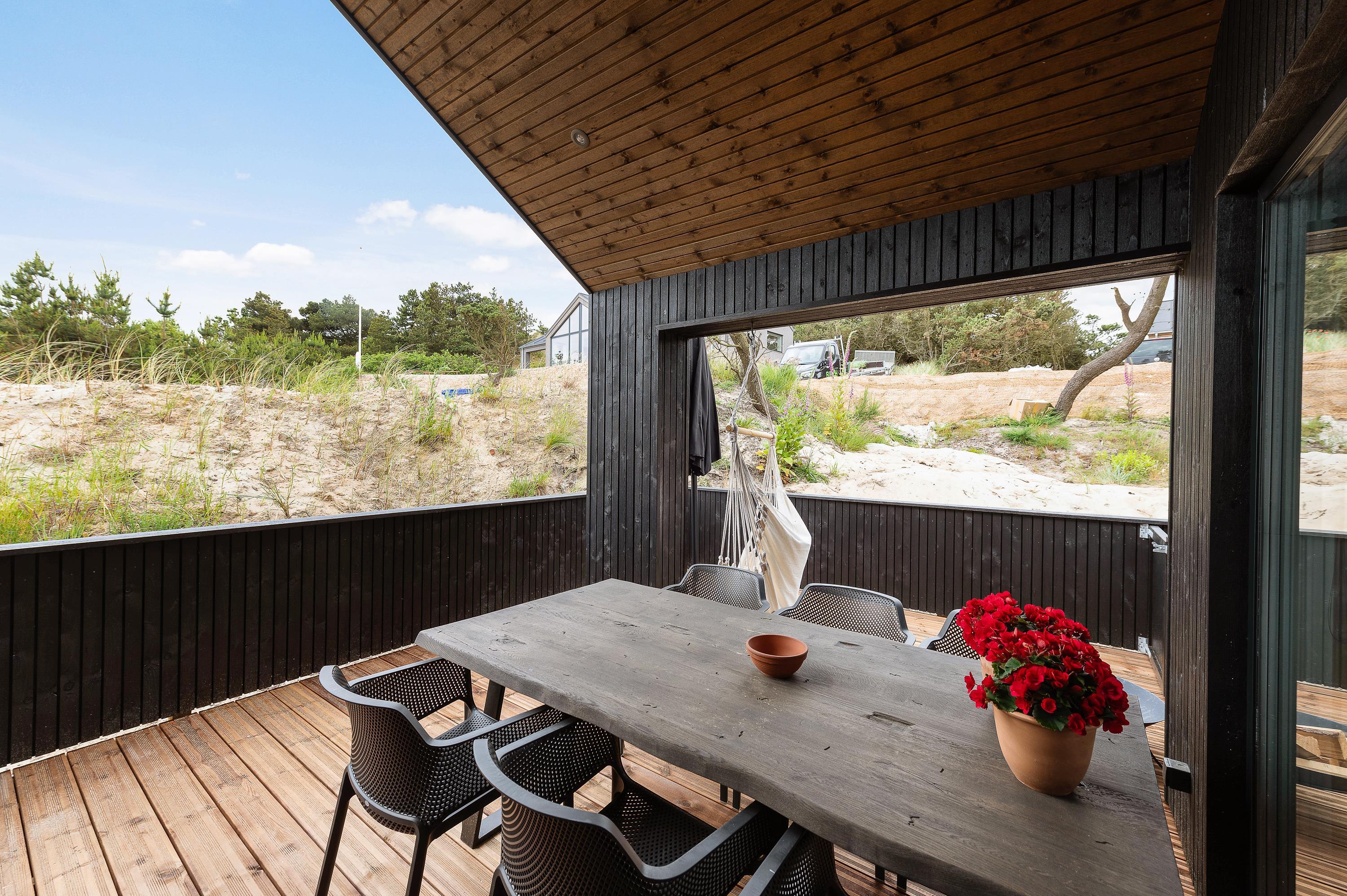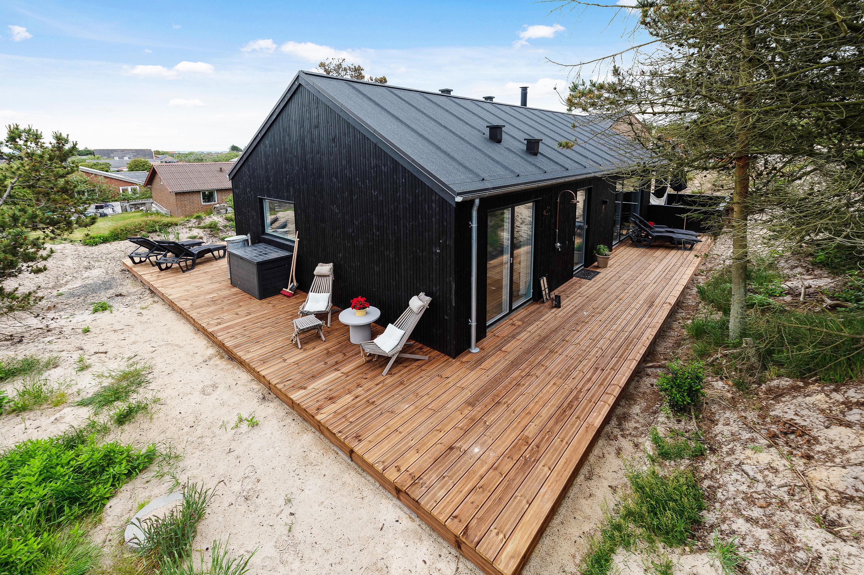 Denne skønne ”sommerdrøm” i udkanten af Hvide Sande og på kanten af en klit har en dejlig østvendt terrasse, hvor I kan nyde morgenkaffen, mens I nyder solopgangen over Ringkøbing fjord.