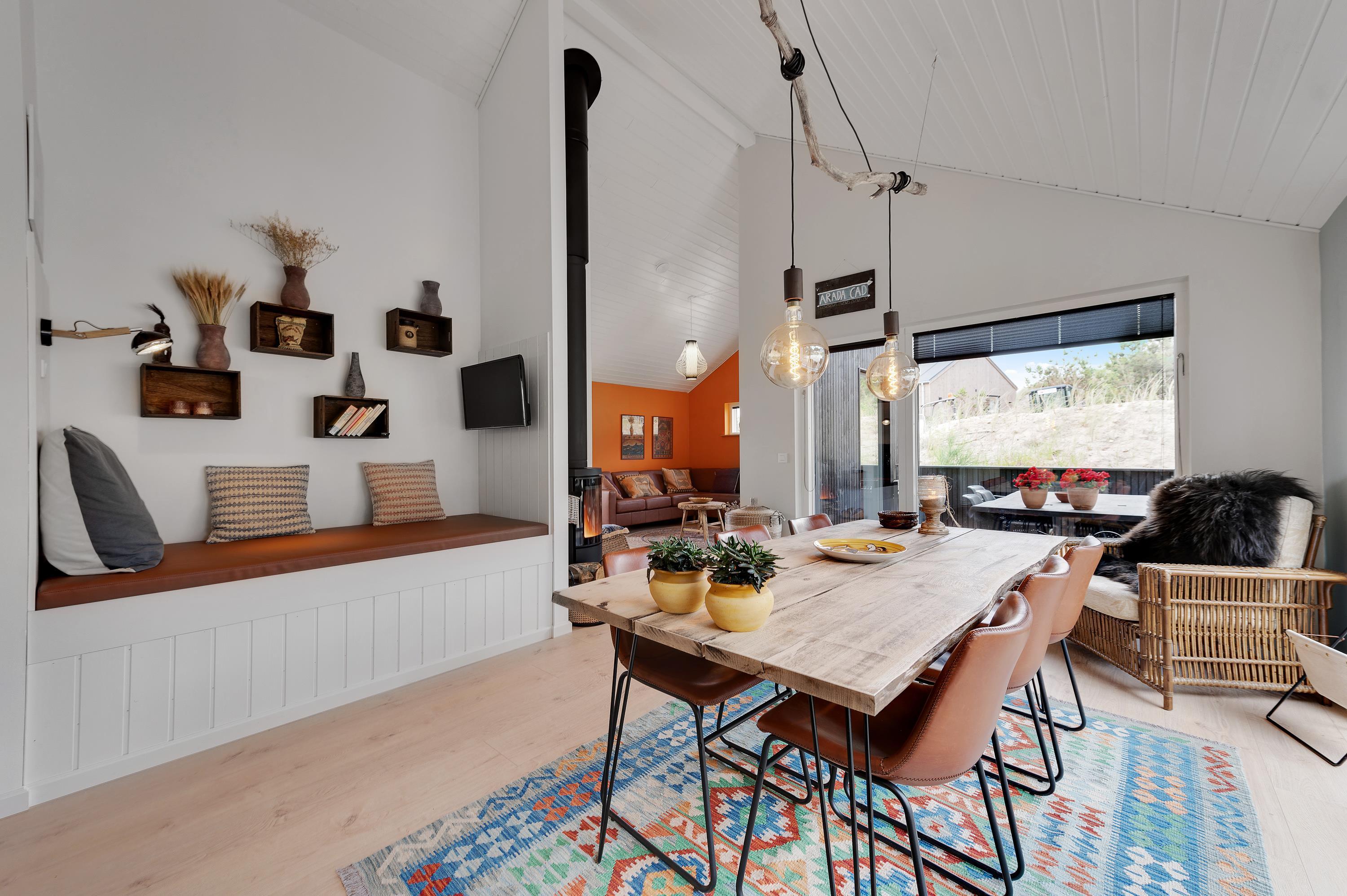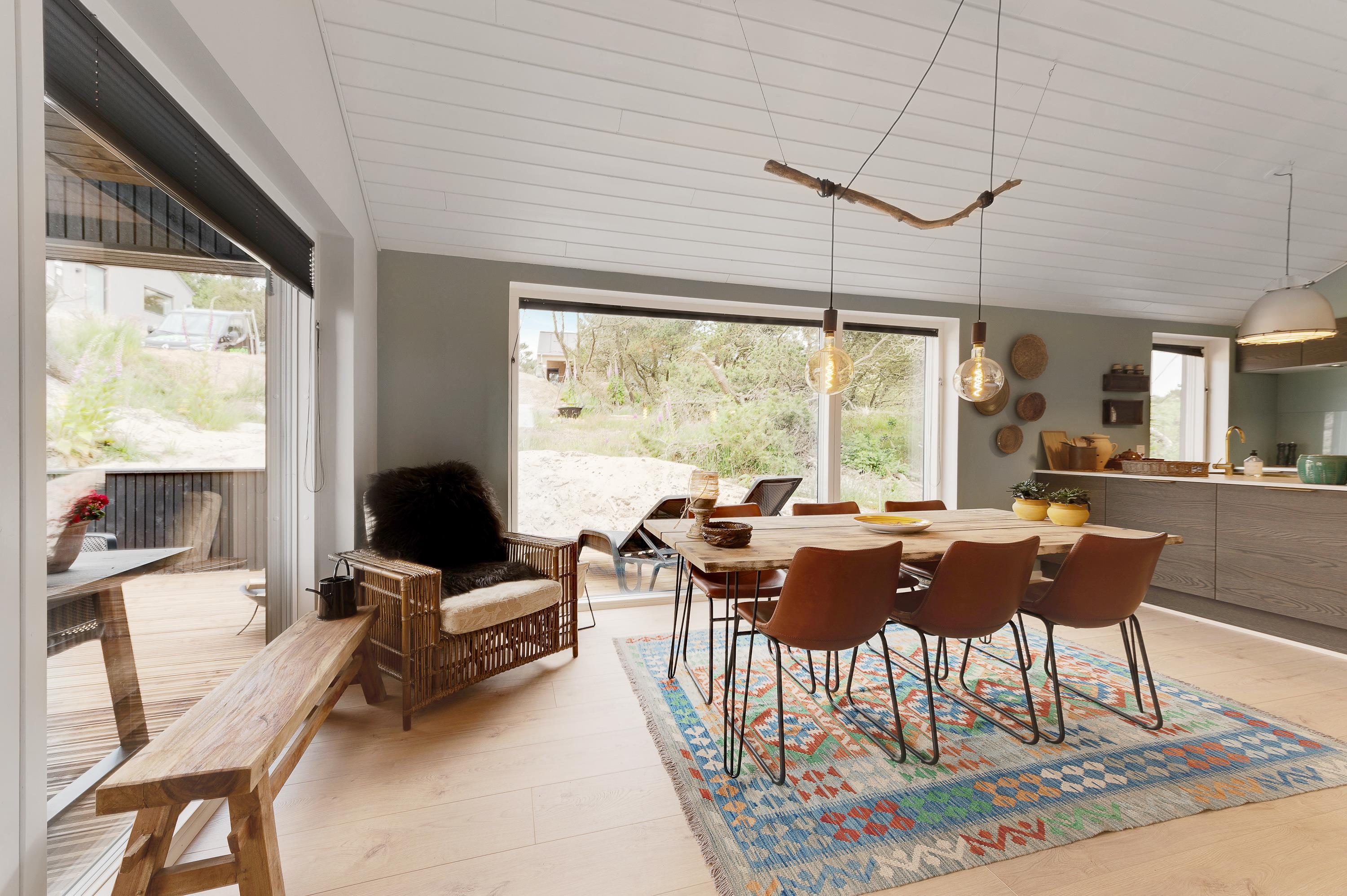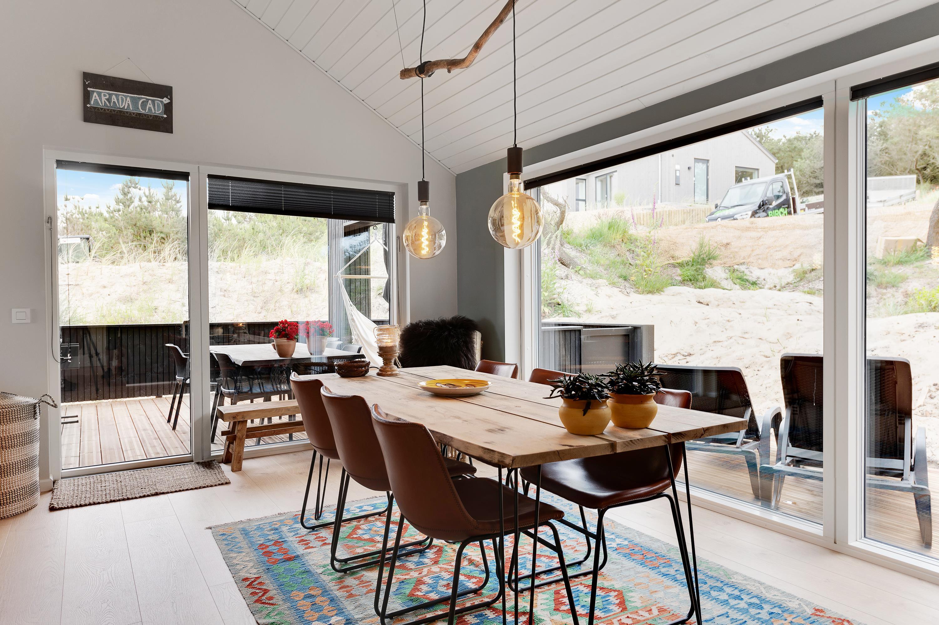 De store vinduespartier bringer naturen og solen helt ind i huset. Nyd hinandens selskab, mens I dyster i diverse familiespil ved spisebordet eller råhygger i alkoven med en god bog imens ilden knitrer i brændeovnen. Perfekt hygge efter en lang dag ved stranden i naturen.