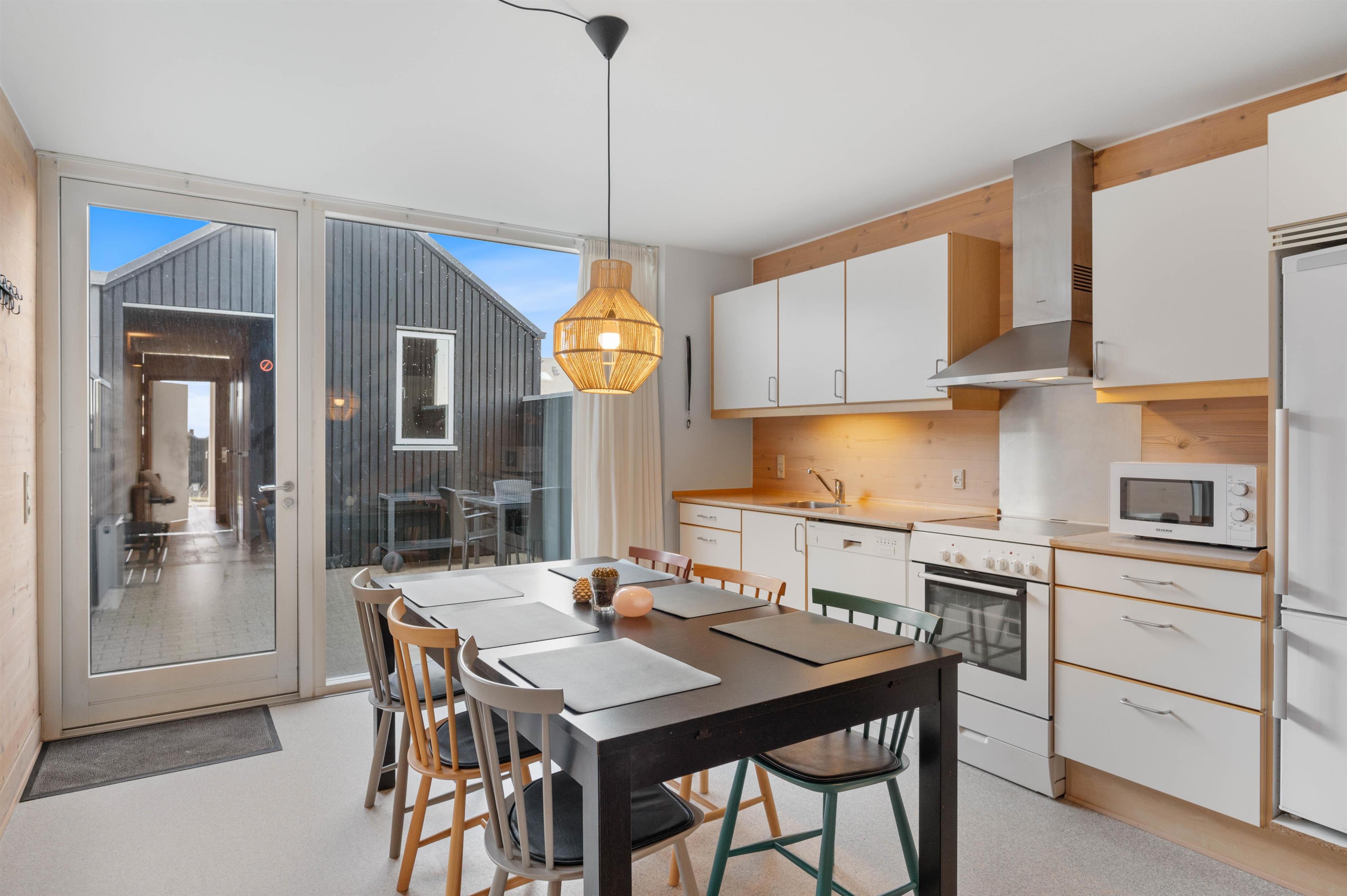 Ferielejligheden på Slusen fordeler sig på to etager og er smagfuldt indrettet med masser af fine faciliteter. Omgivelserne er lyse og venlige, og gennem de store vinduer kan I nyde udsigten til den smukke fjord.