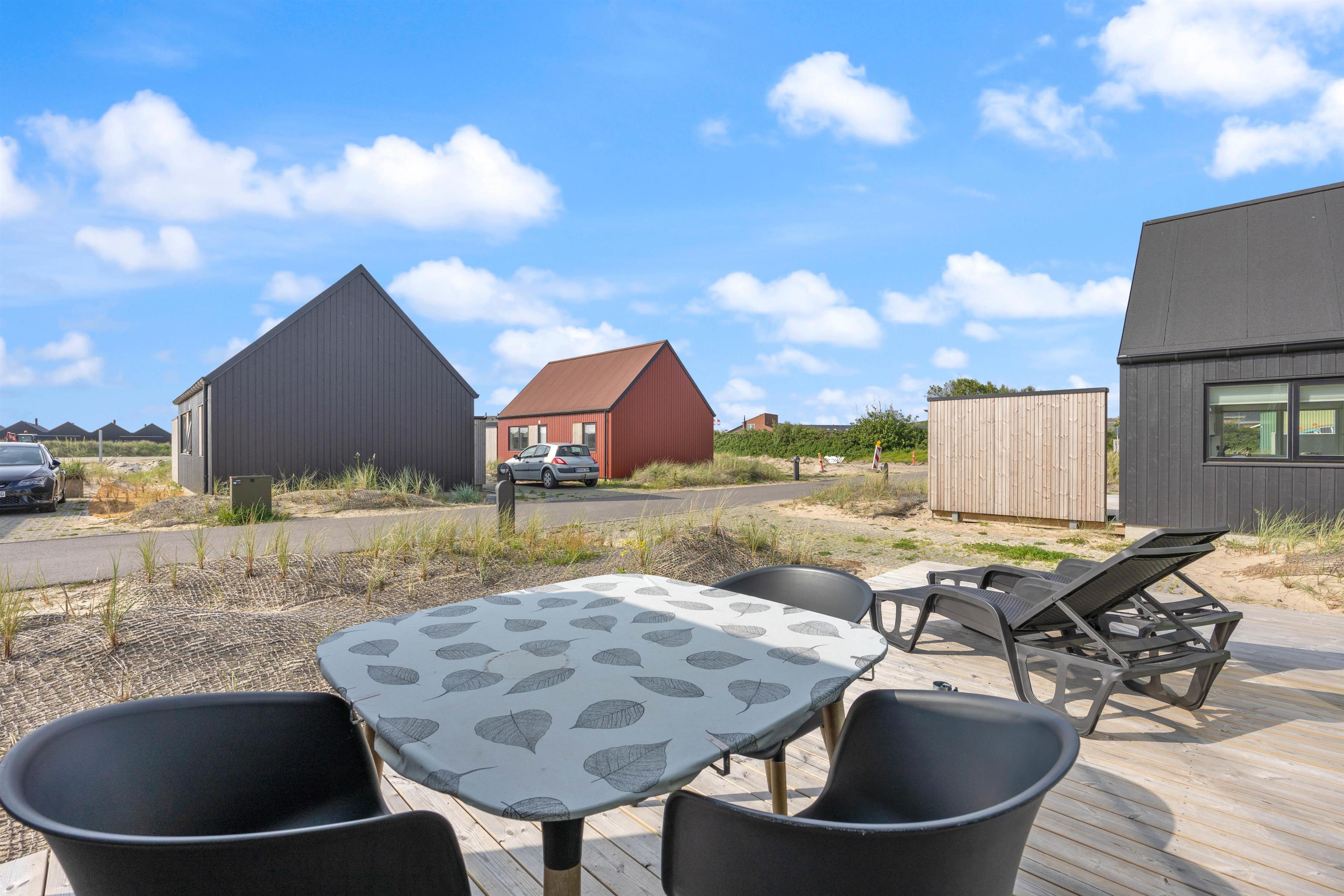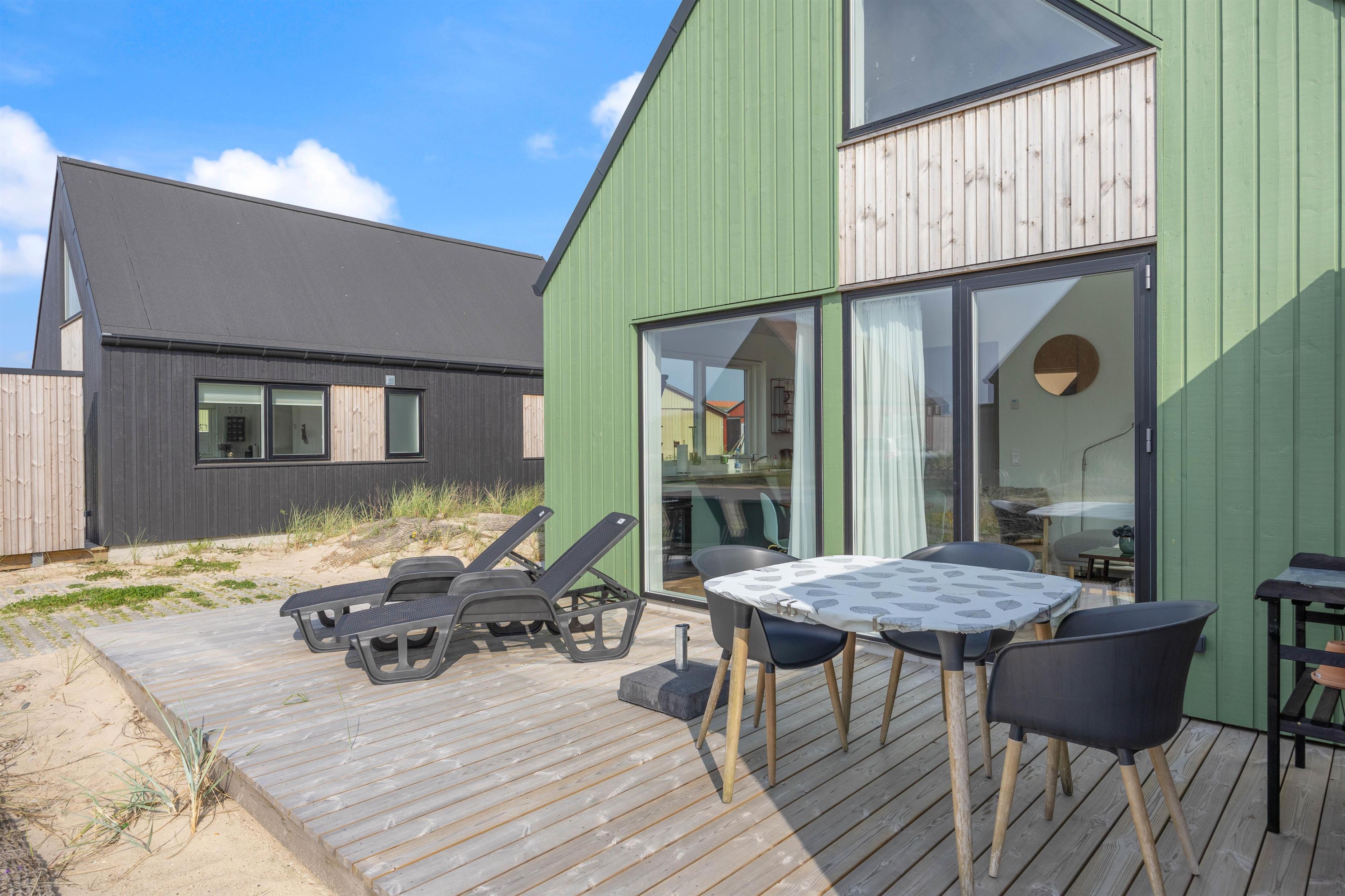 På terrassen er der også havemøbler og liggestole, som sørger for, at I har et komfortabelt sted at nyde solstrålerne.