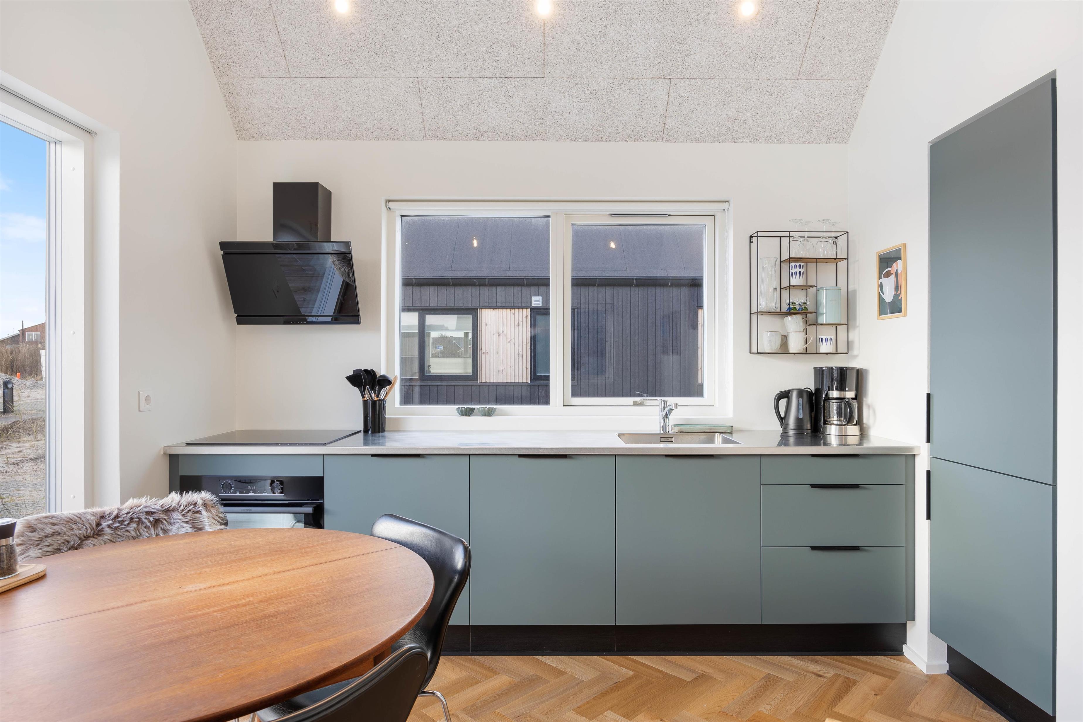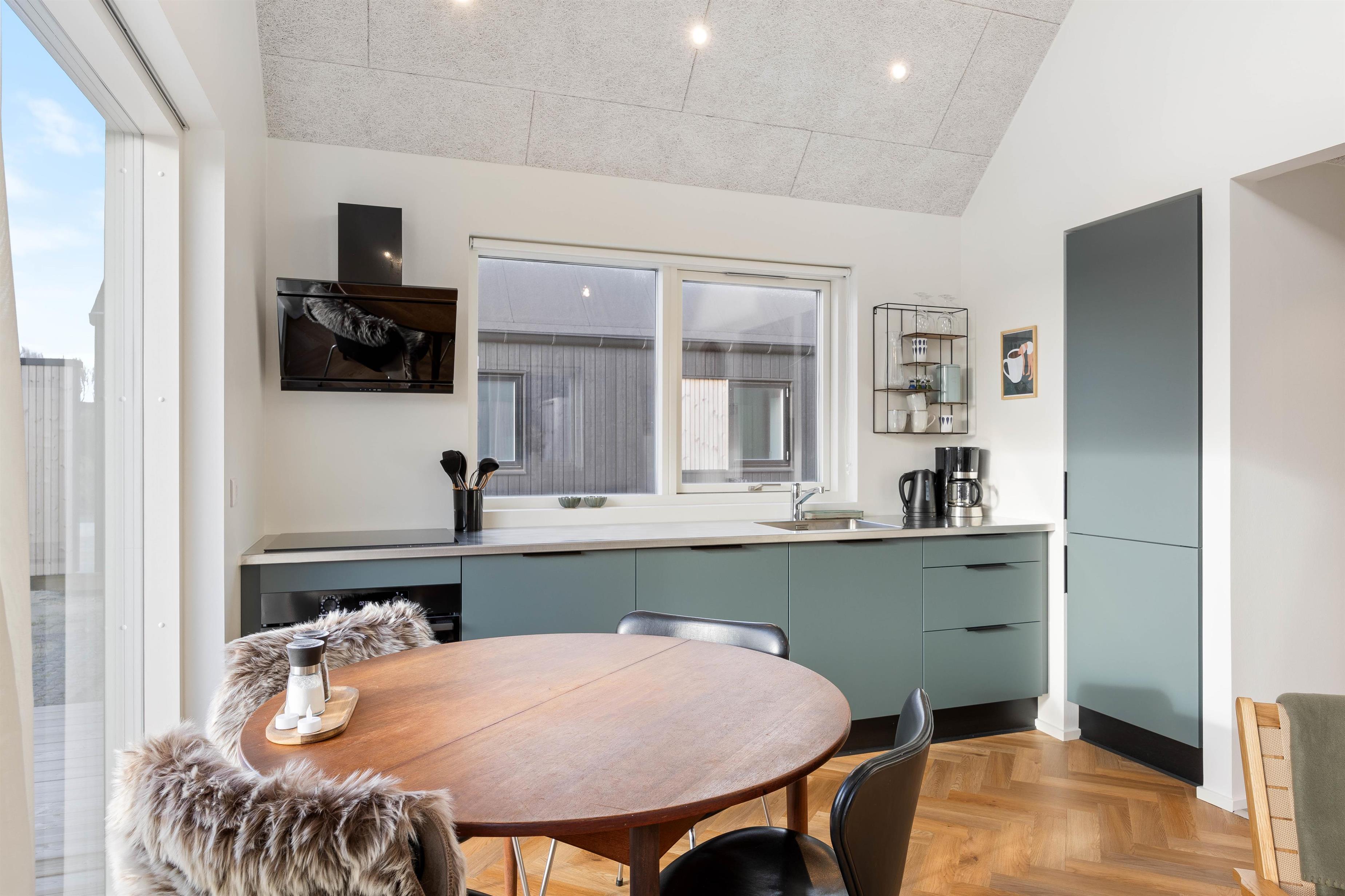 Samlingspunktet i sommerhuset vil helt naturligt blive køkkenalrummet, hvor mange af feries hyggelige stunder vil blive holdt. Her er der en komfortabel indretning, som fremstår både lys og nordisk. Kombineret med de moderne faciliteter i køkkenet vil I altid kunne lave nogle lækre måltider.
