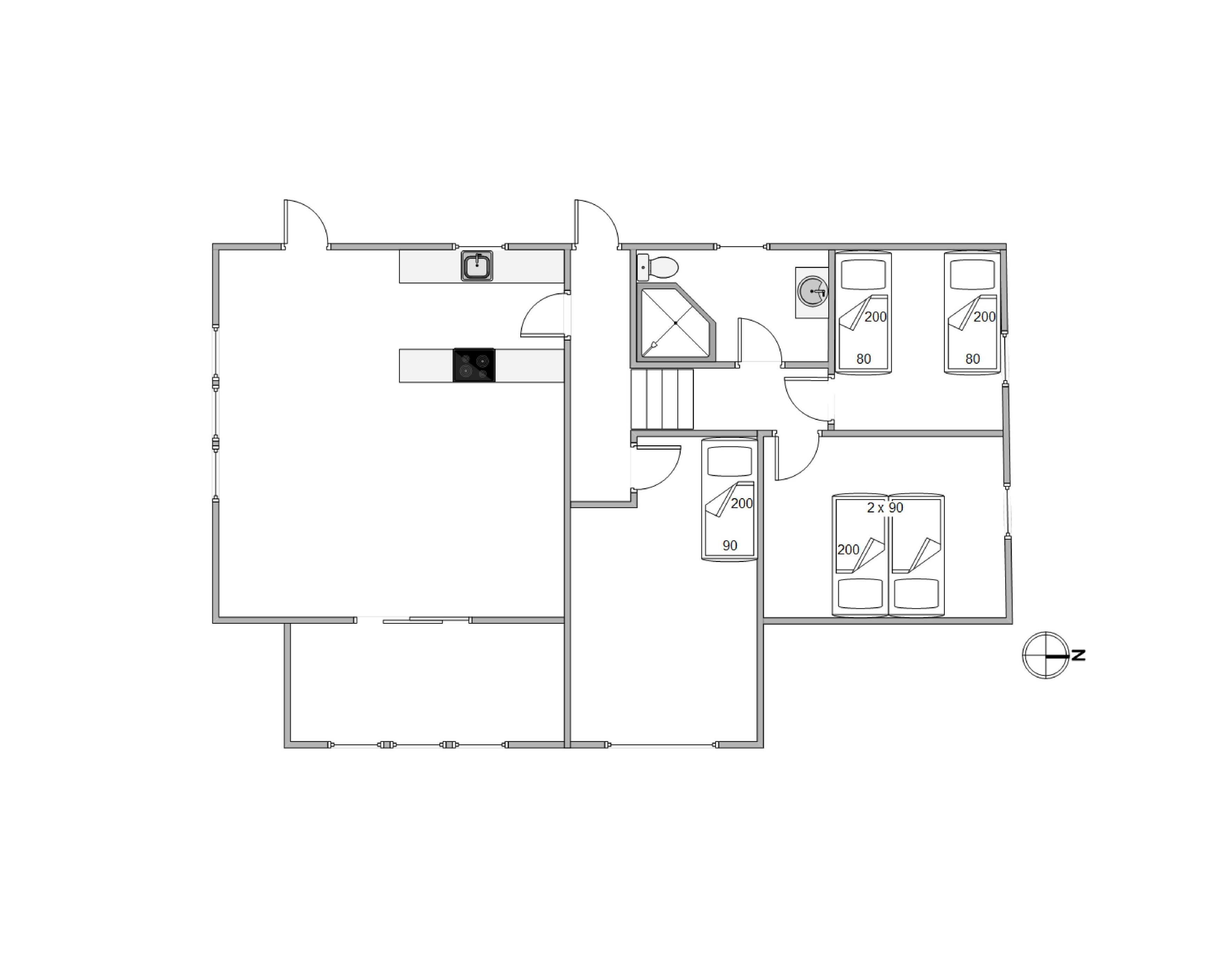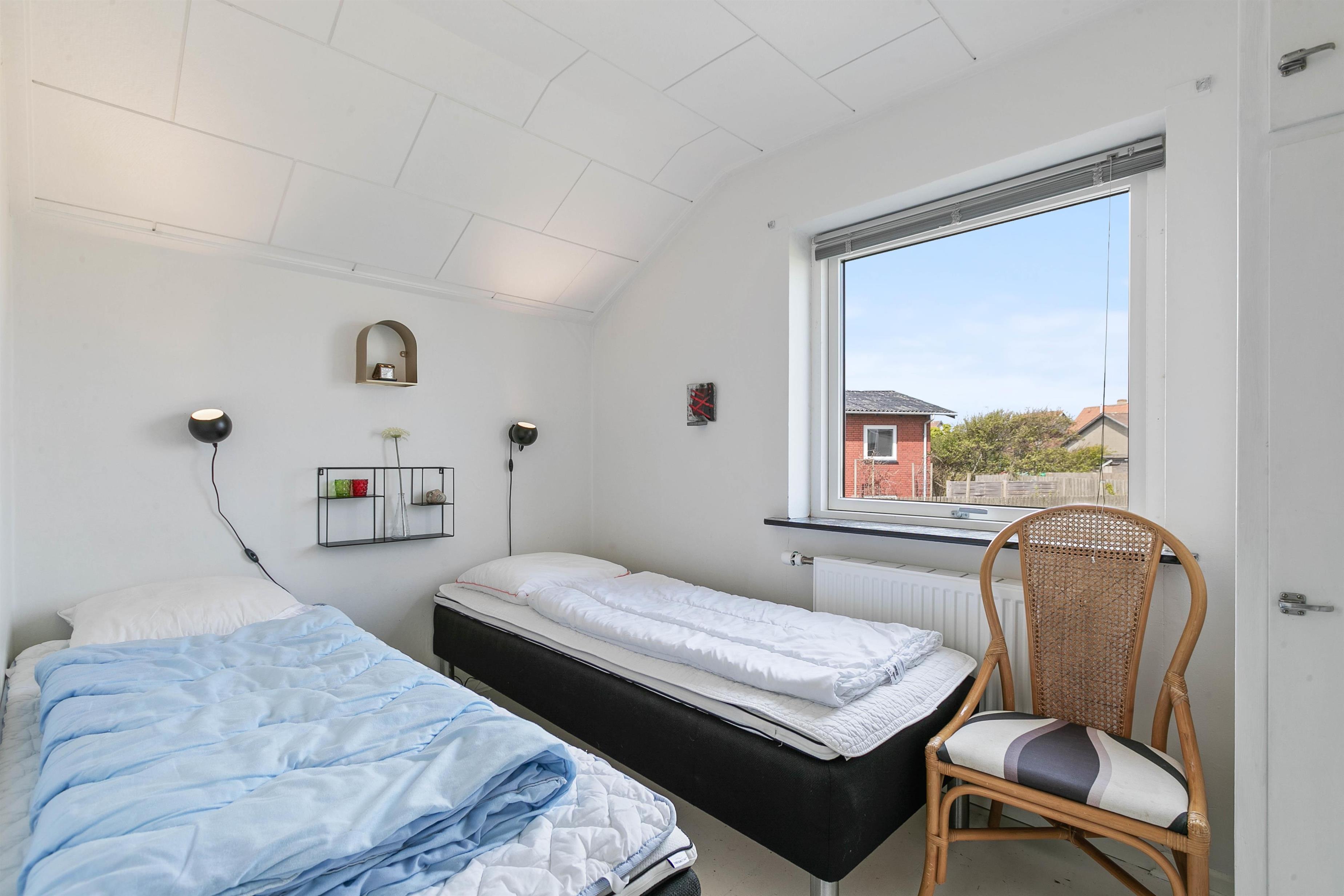 Der er 3 lyse soverum i huset, et værelse med dobbeltseng, et værelse med 2 enkeltsenge og et værelse er med en enkeltseng. Badeværelset er bl.a. med gulvvarme. Desuden er der en vaskemaskine og tørretumbler i huset, som gør det nemmere at pakke det helt rigtige til ferien – og til enhver lejlighed.