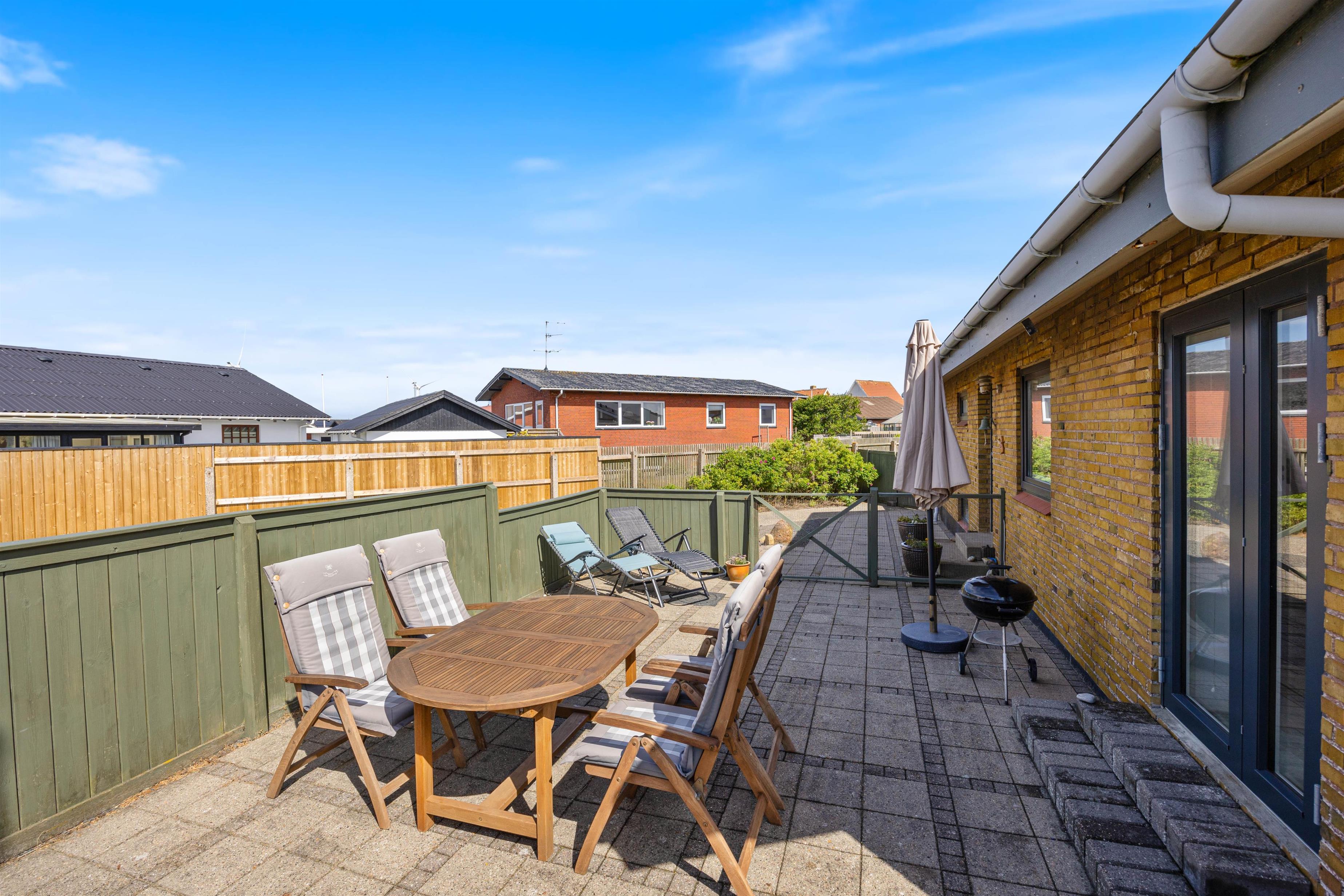 Den lukkede terrasse gør det nemt at lade børn og hunde lege frit, mens man en sommeraften nyder en grillmiddag og en god rødvin, med solnedgangen og havets brusen i baggrunden. Det må være den ultimative nydelse og afslapning - og ren balsam for krop og sjæl.