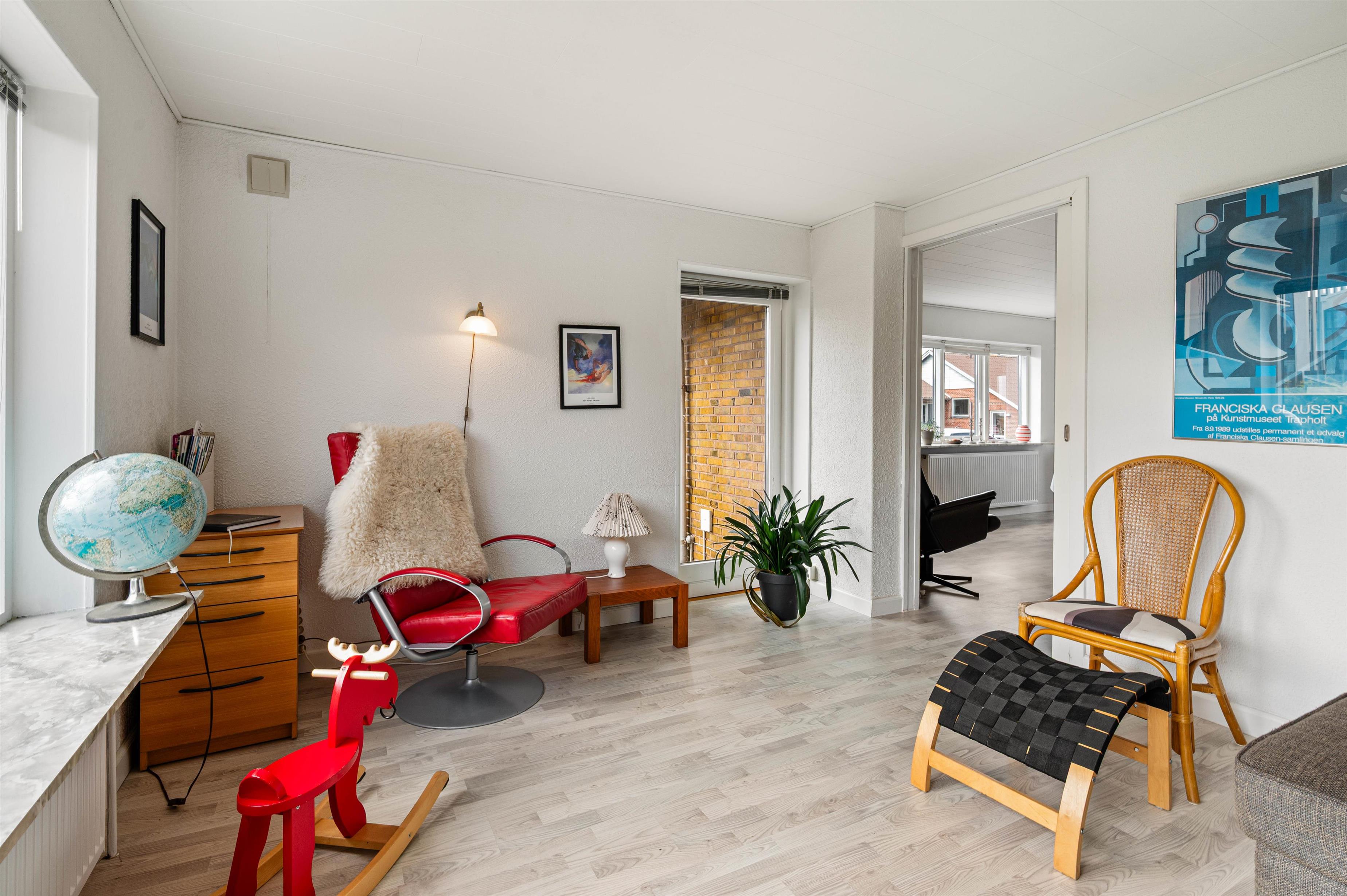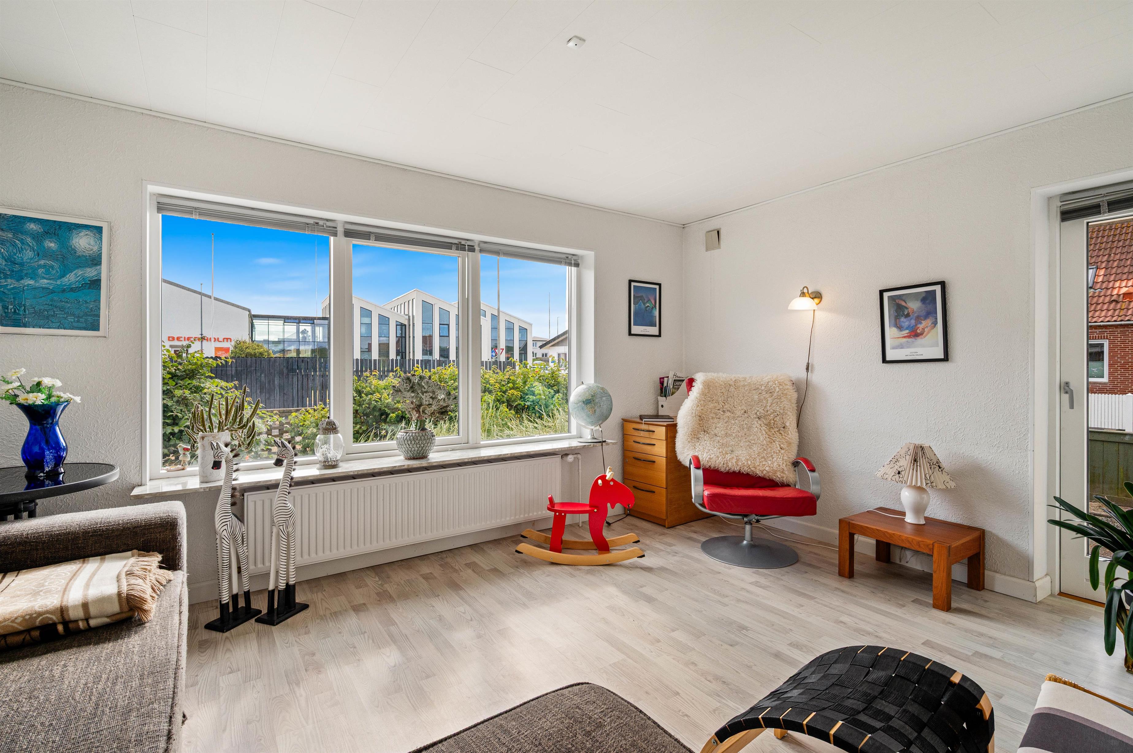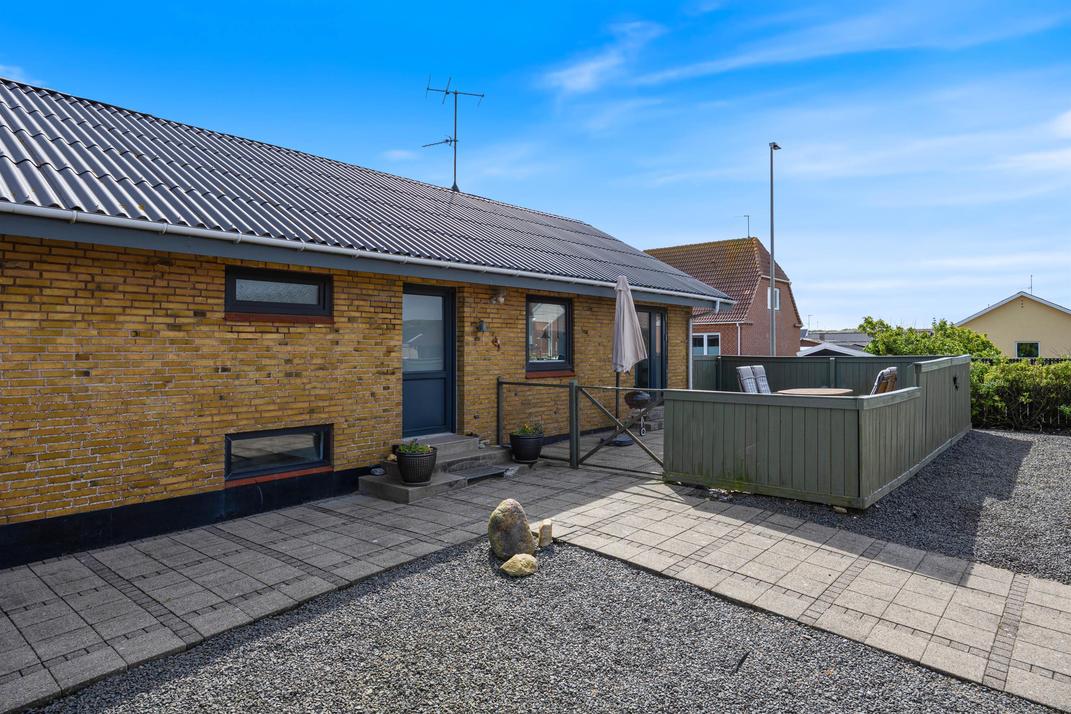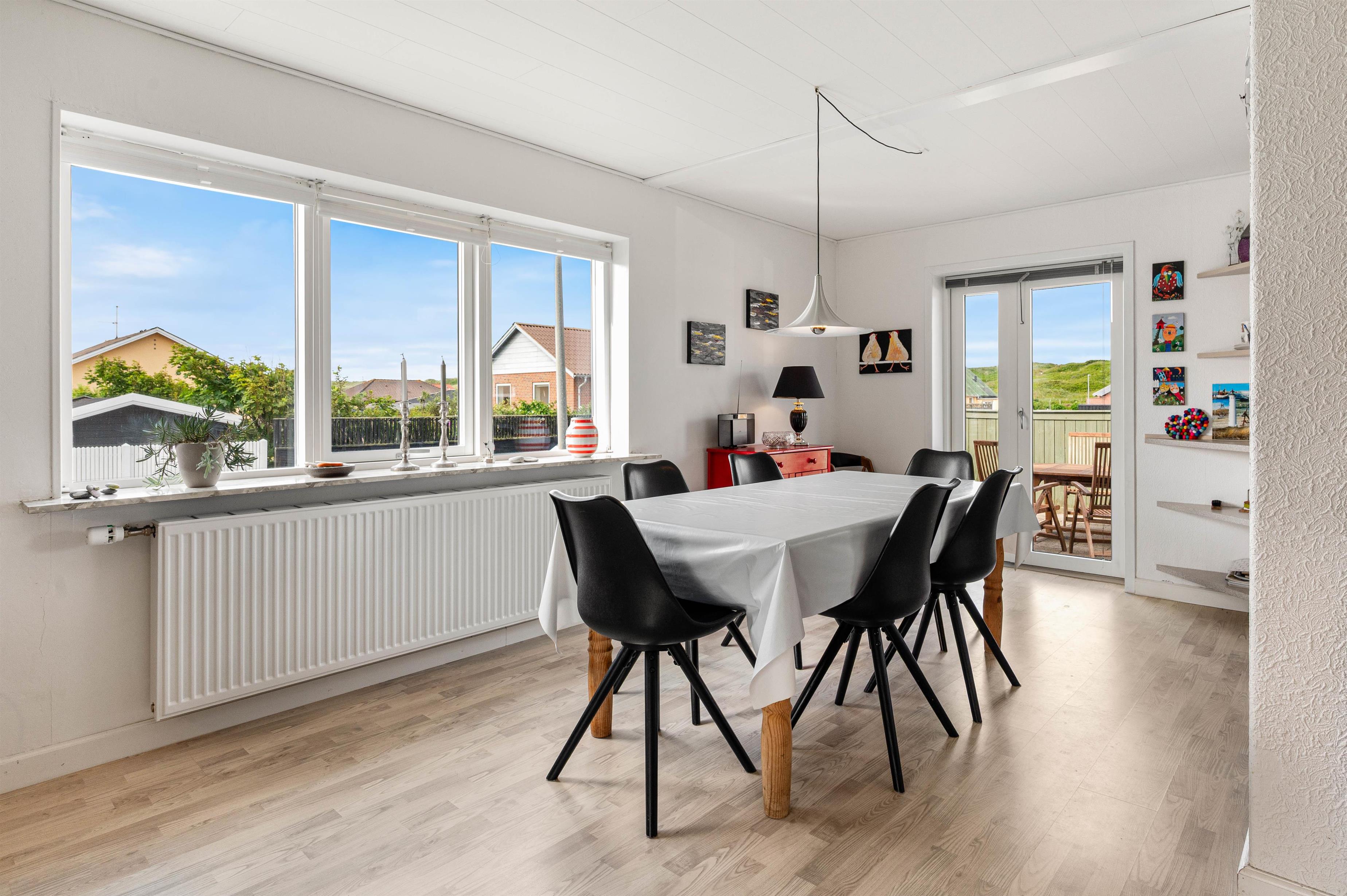 Dette dejlige byhus i det centrale Hvide Sande er overalt hyggeligt og lyst indrettet, med bl.a. trælaminat gulve og klinker.