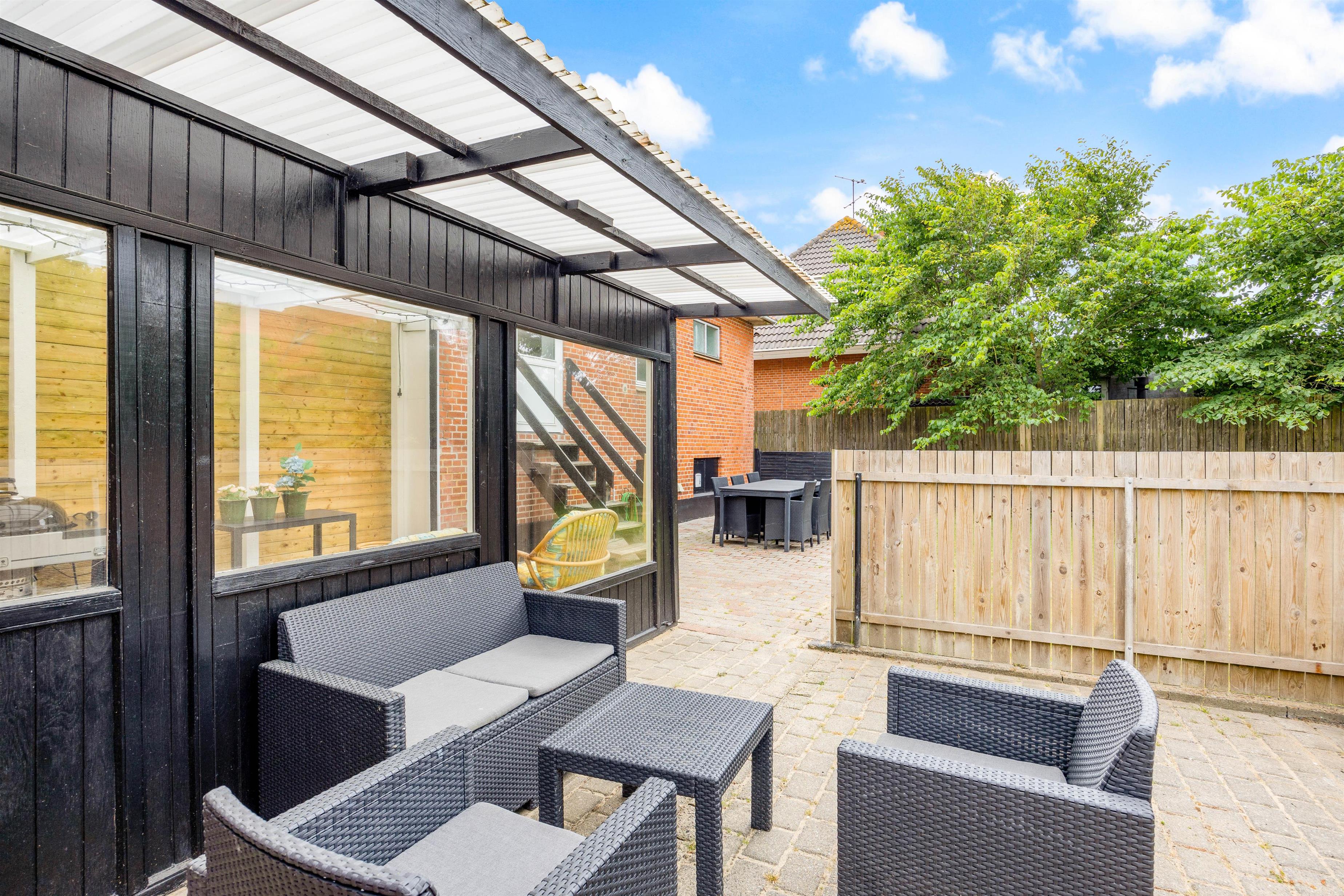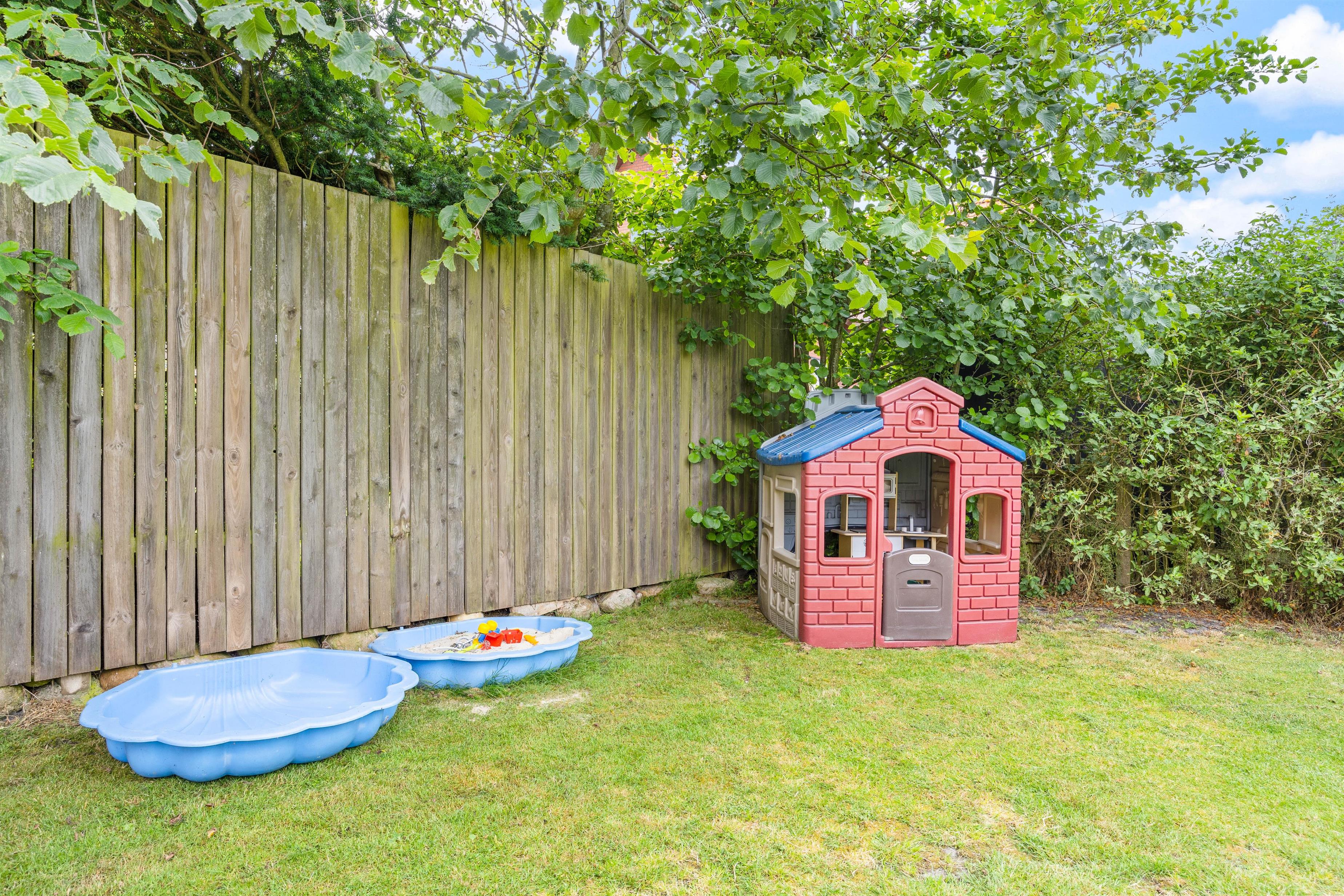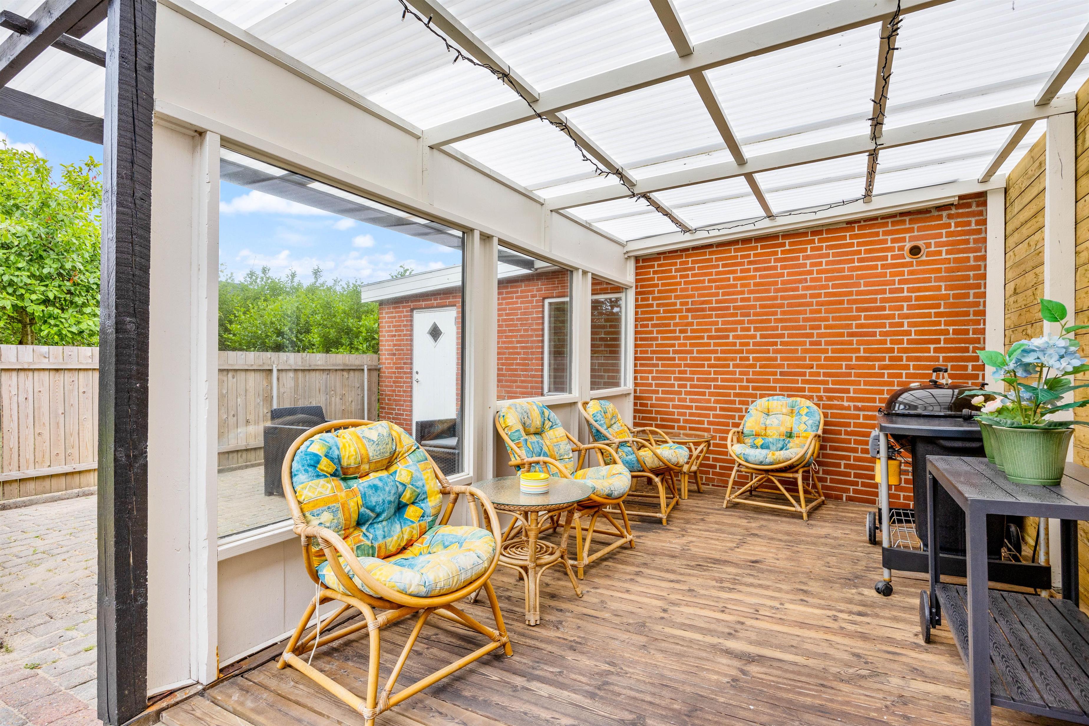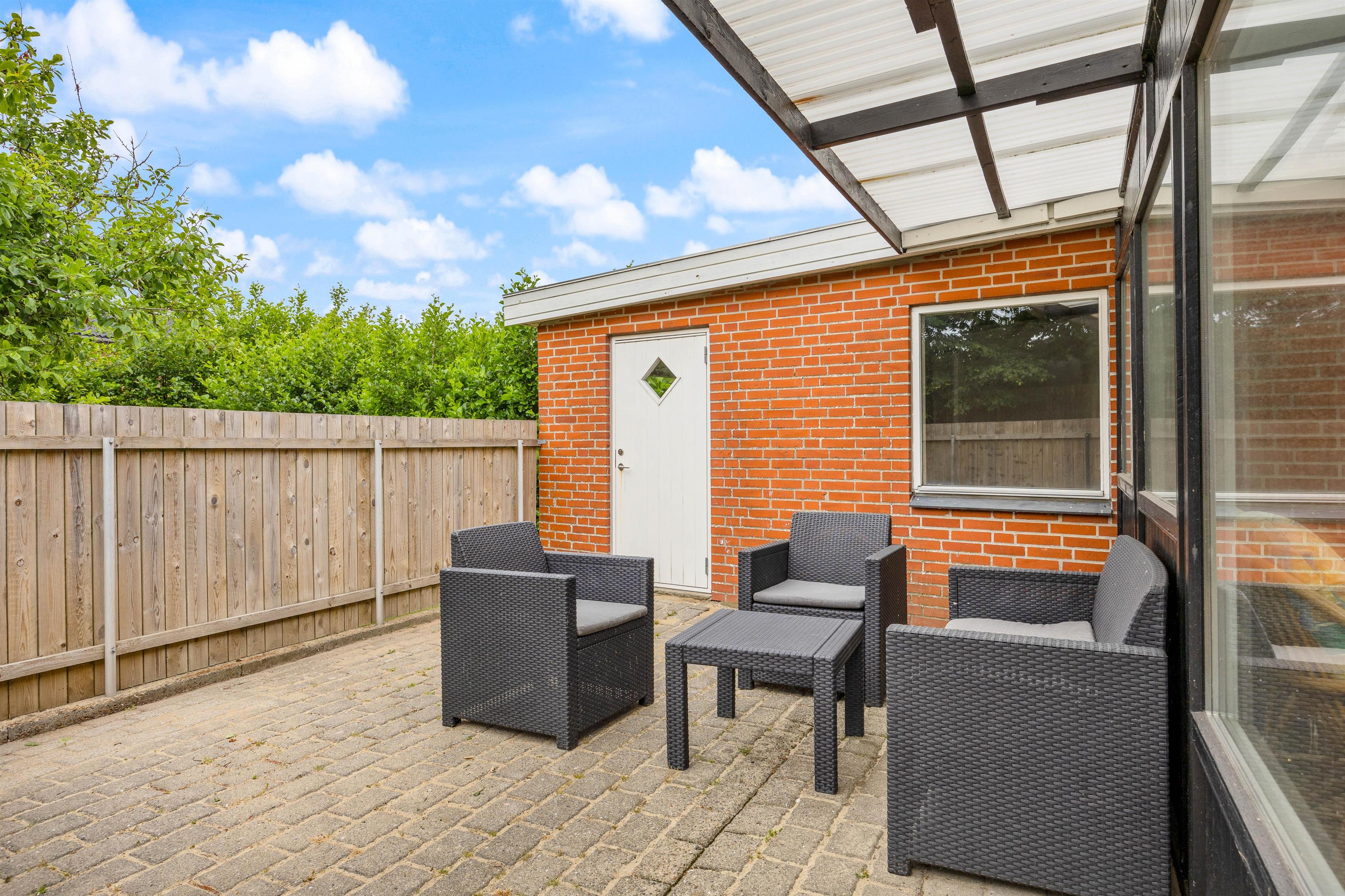 Dette hyggelige feriehus byder på forskellige terrasseområder, som blandt andet er afskærmet og overdækket, så du altid kan finde den rigtige krog til at slappe af med en friskbrygget kop kaffe og en god bog. Plænegrunden er indhegnet, så hunden kan løbe frit rundt, men du hviler dig i sommerens sol.