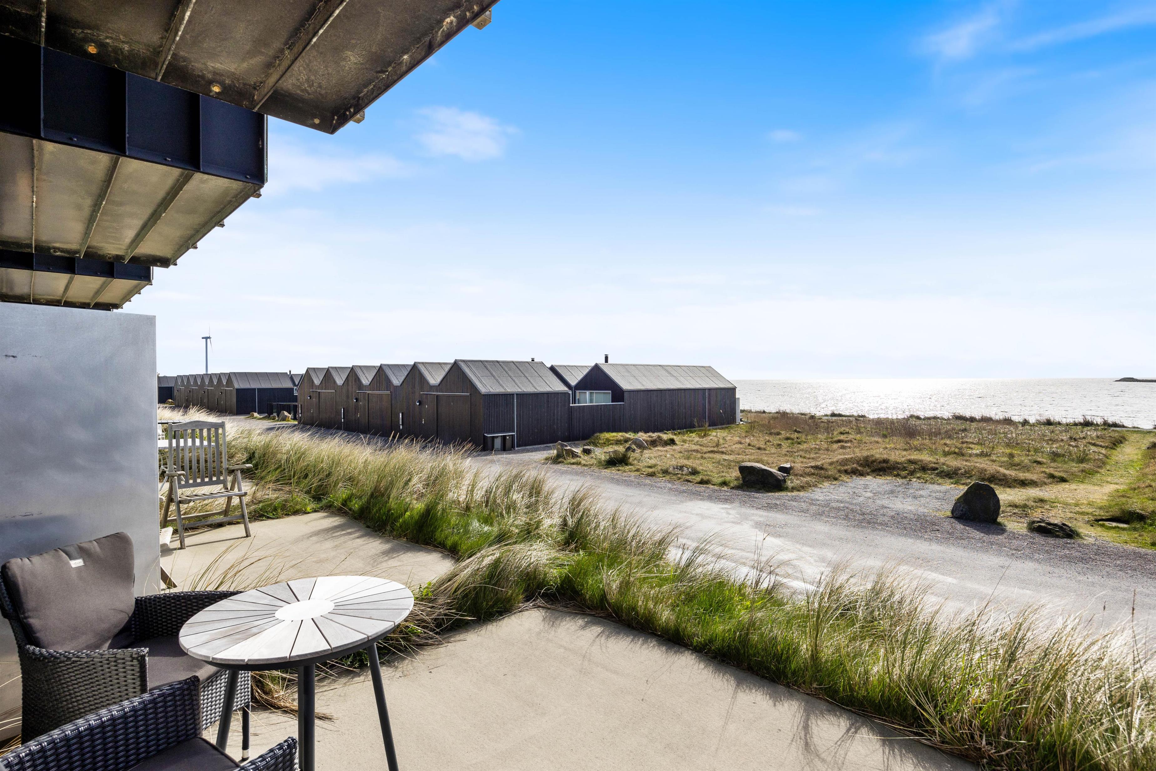På den anden side af ferielejligheden mellem den tilhørende garage og redskabsrum, har I en dejlig lukket terrasse, hvor du kan nyde de hyggelige grillaftener. Her kan I tilberede de lækreste måltider og nyde dem med en god vin – måske I selv har fanget fiskene på molen, der ikke ligger langt fra derfra?