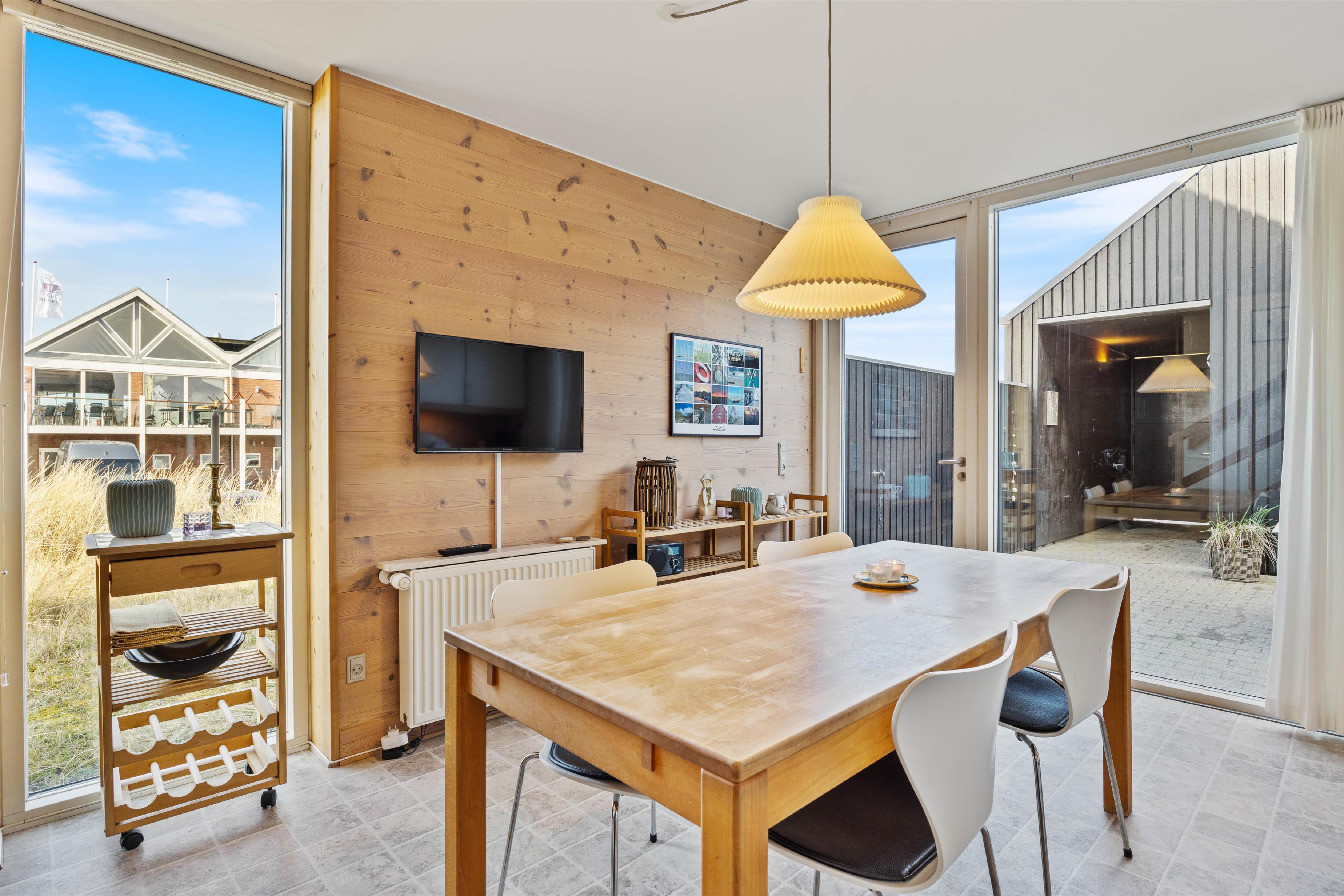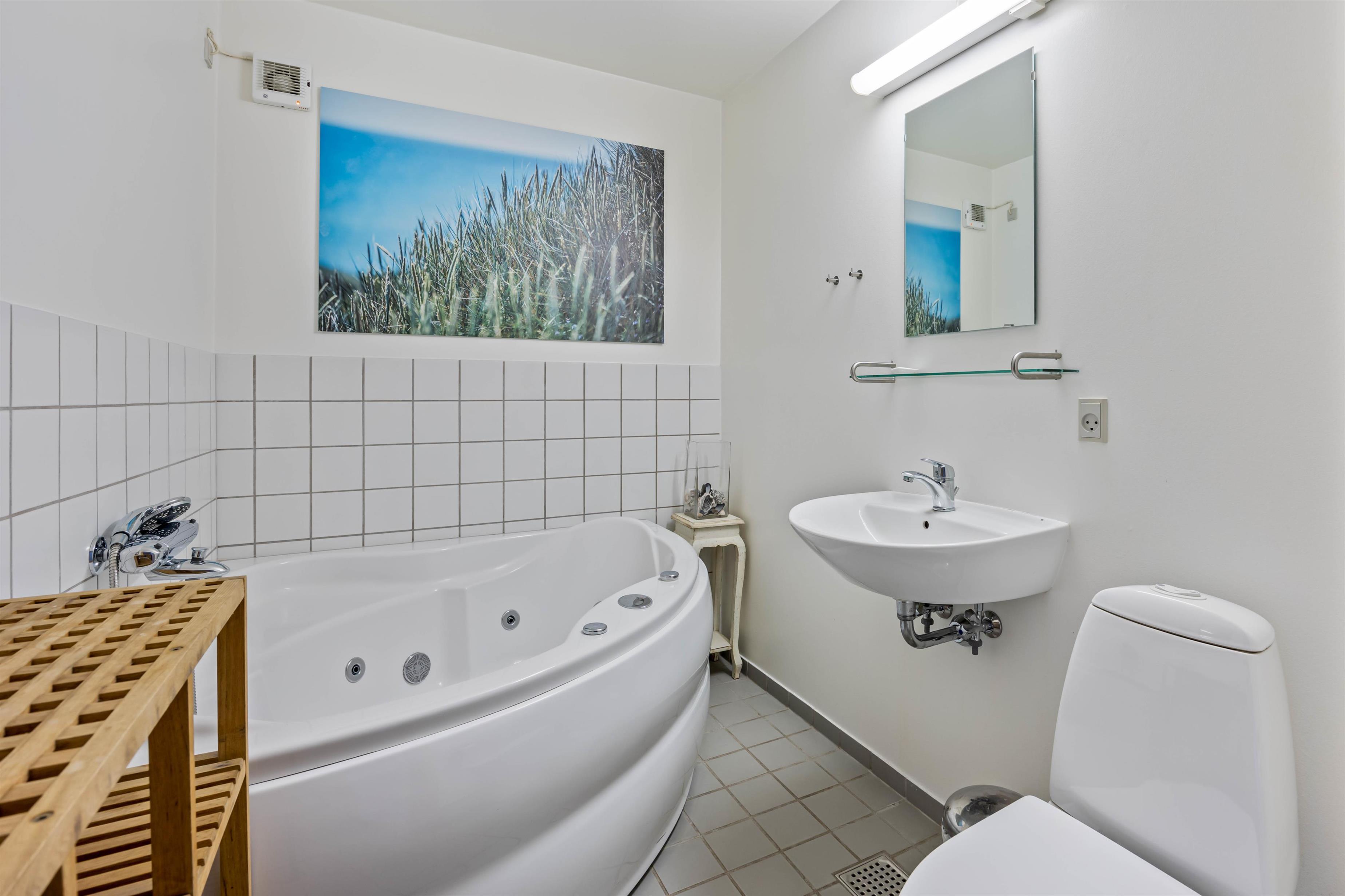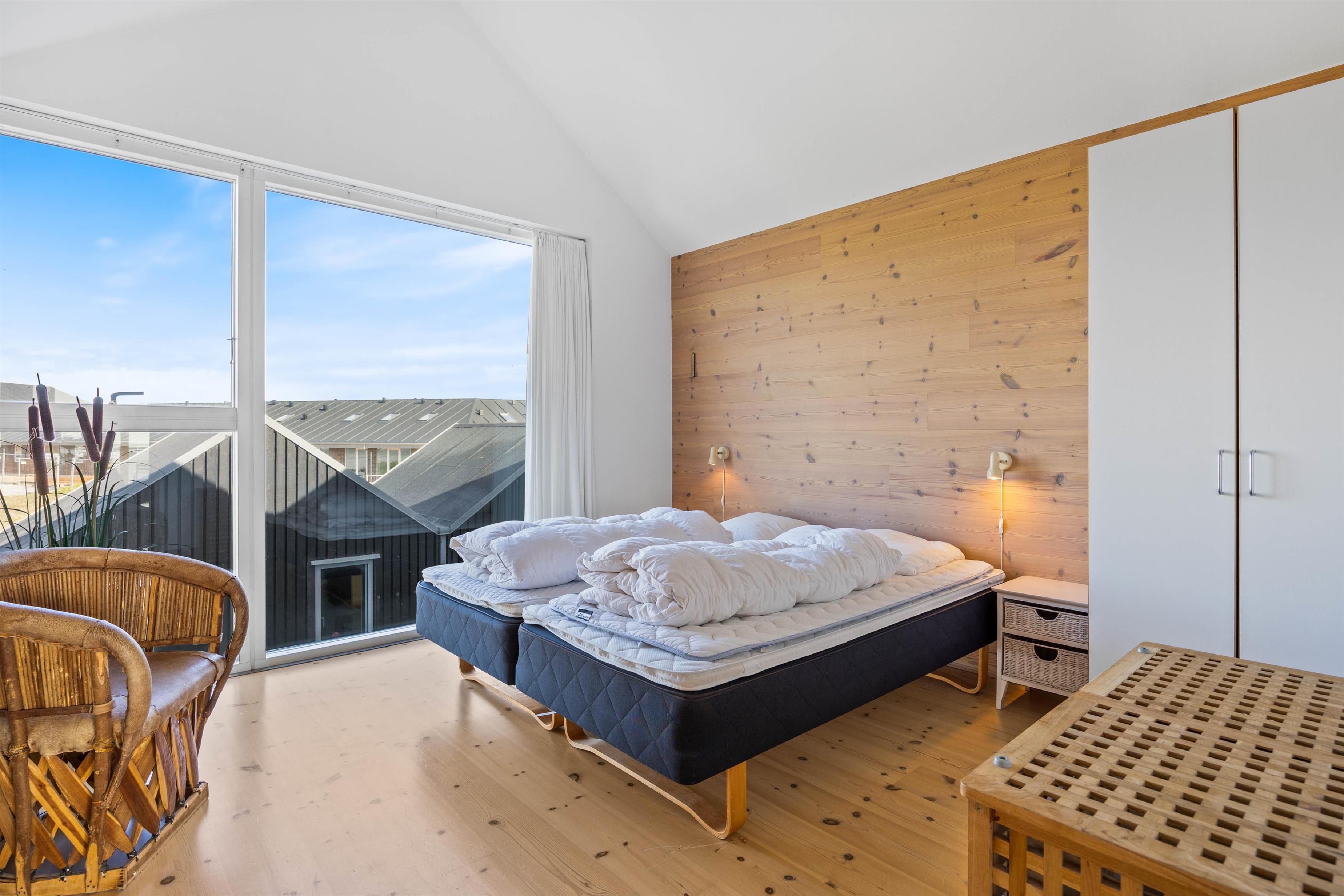 Lejligheden er den yderste i lejlighedskomplekset. Den gode beliggenhed betyder, at du fra ferielejligheden har en smuk udsigt over Ringkøbing Fjord fra stuen og det ene værelse med dobbeltseng. En udsigt du kan nyde, mens du får morgenmad på den sydlige terrasse, nyder solens varme i liggestolen eller langsom vågner fra sengen. I ferielejligheden findes to værelser, og på begge værelser er en dobbeltseng – perfekt til den lille familie eller to vennepar, der gerne vil tilbringe en uge sammen og slappe af! På badeværelset finder I sauna og spabad, hvor I kan få slappet af og ladet batterierne op.