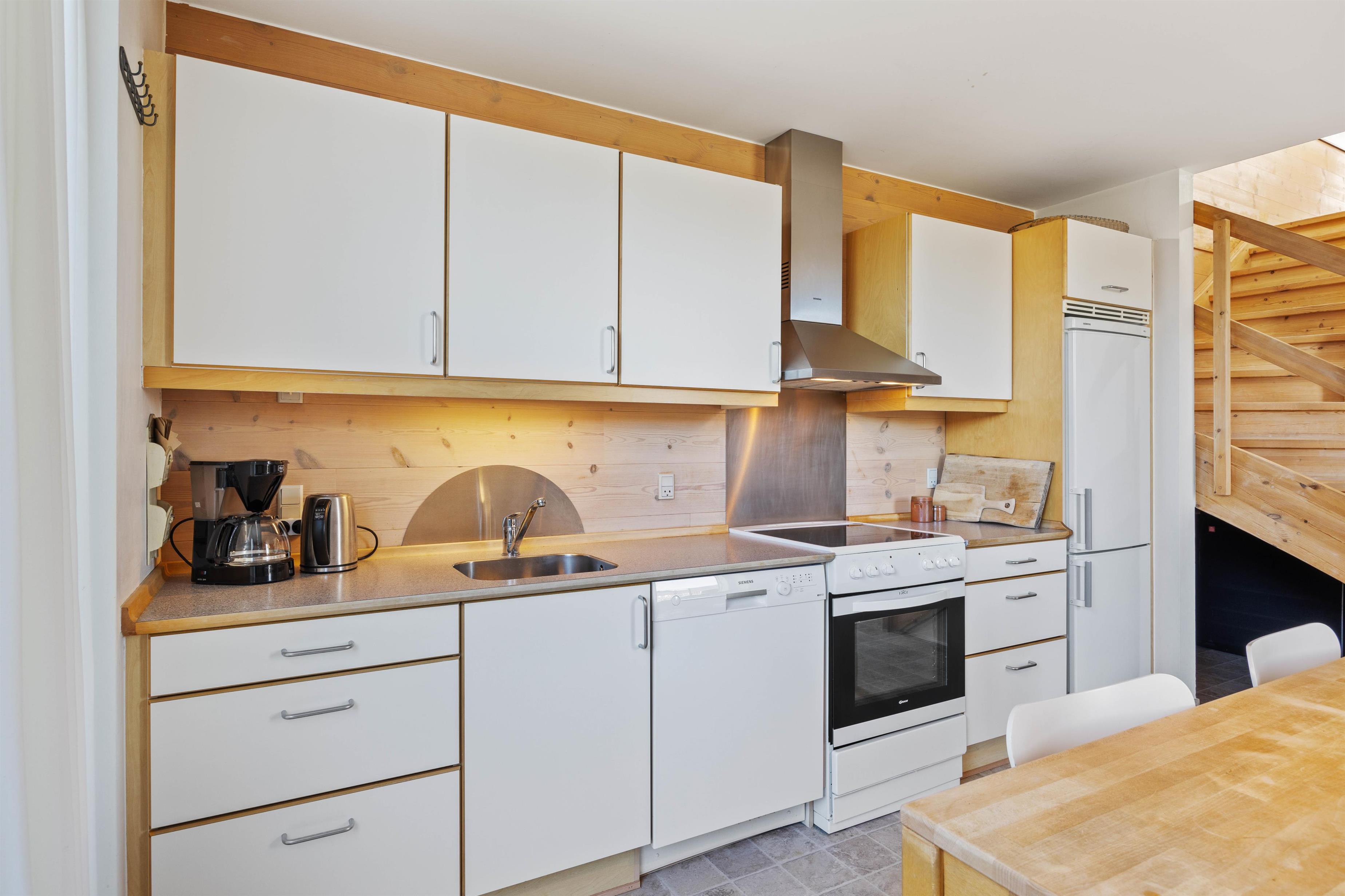 På selvsamme side af huset finder I også et redskabsrum, hvor der evt. kan opbevares tasker eller renses fisk, så de er klar til at blive lagt på grillens gløder med det samme.