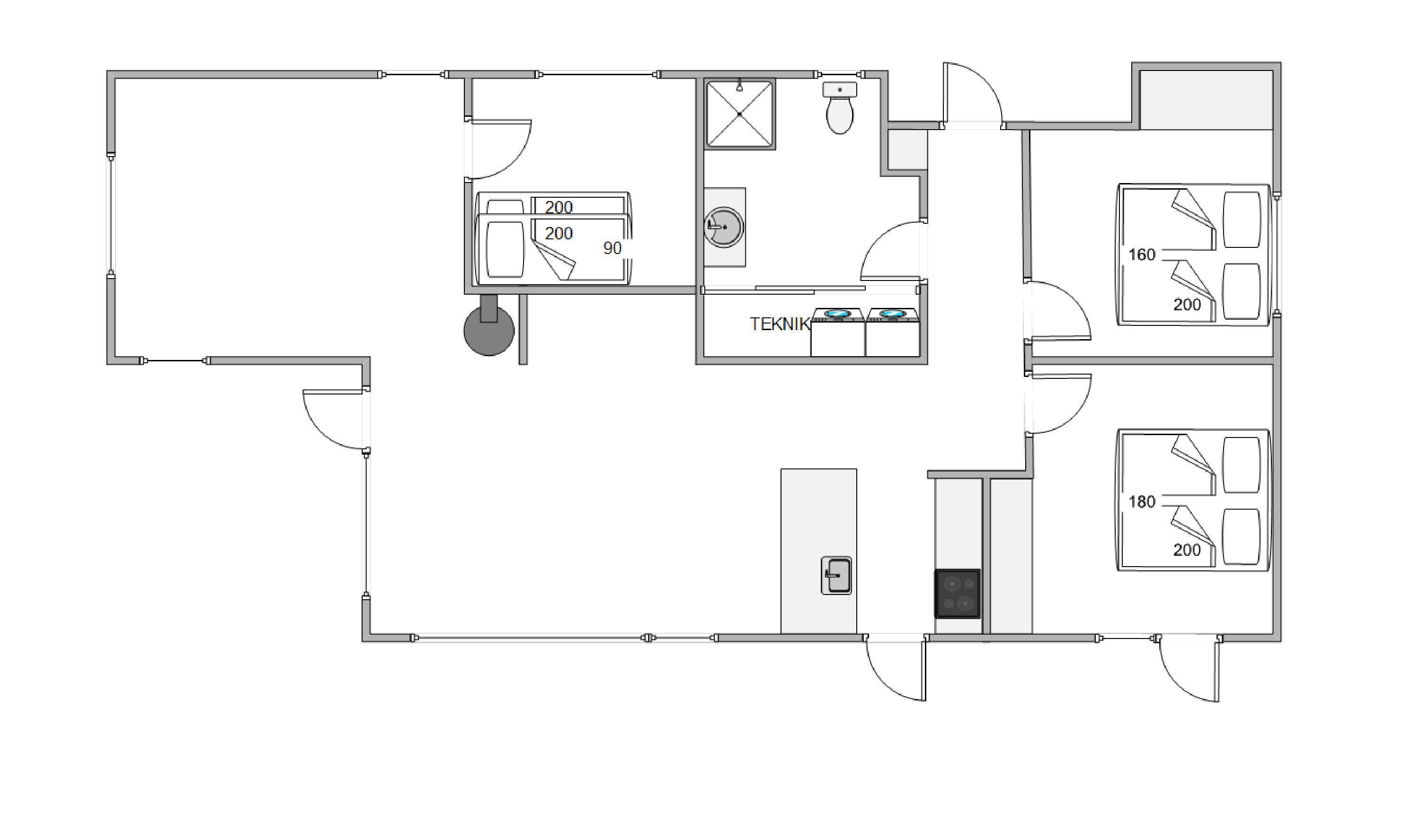 De 5 sovepladser er fordelt i 3 værelser, heraf er de 2 med dobbeltseng. Det tredje værelse er indrettet som et skønt børneværelse – bl.a. med en køjeseng, som giver muligheder for masser af hule-byggeri, samt et skrivebords-hjørne, hvor der kan slappes af med at tegne – eller skrive dagbog fra ferien i det vestjyske.