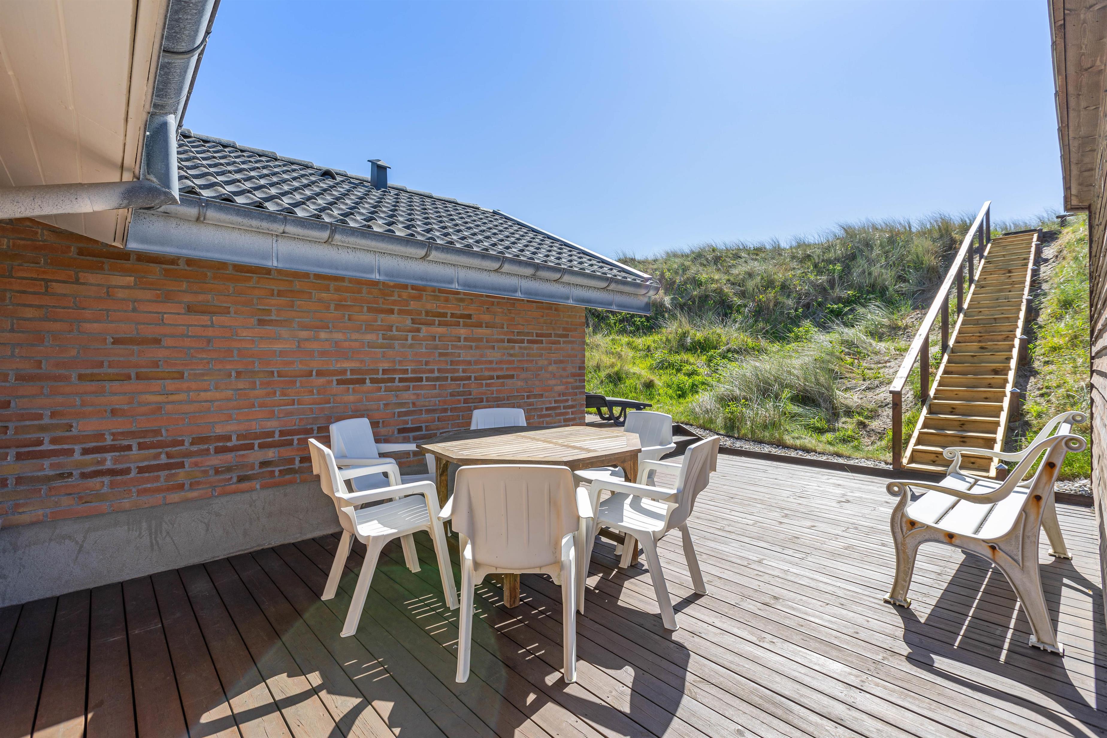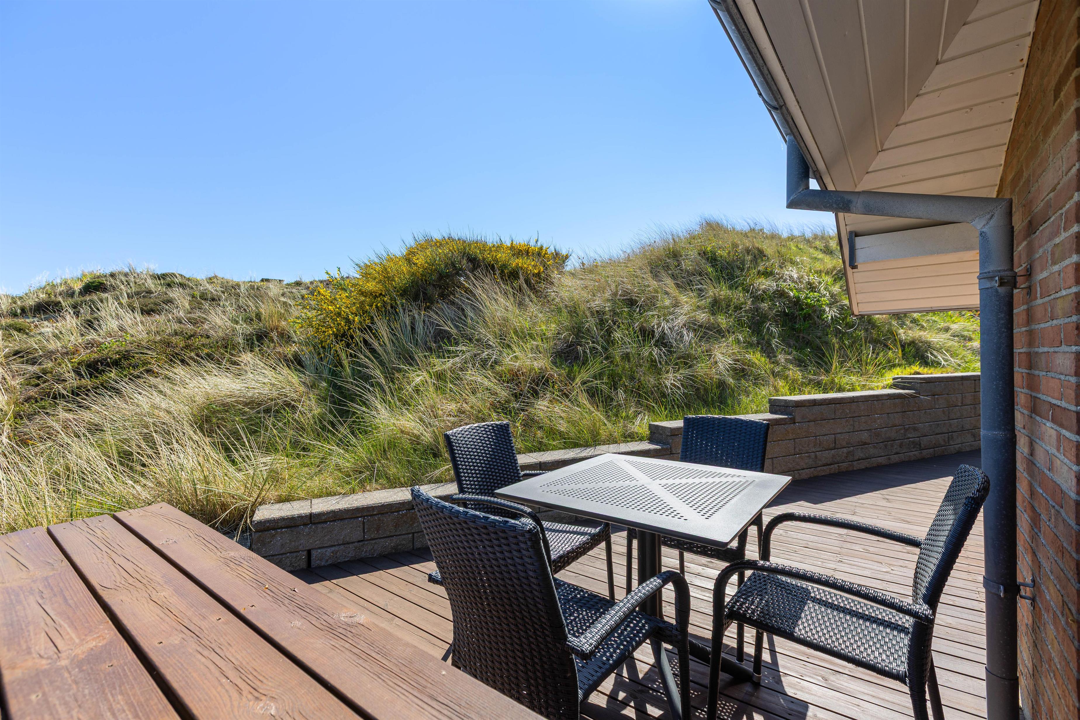 Fra terrassen er der en lille trappe op på højen, hvor I kan sidde som på 1. parket og bare nye den smukke udsigt over området, - her er et skønt panoramablik på både vand og det smukke klitlandskab. Tag på mange gåture i området, og med kun 300 meter til Vesterhavet, er det virkelig oplagt at tage mange ture på stranden. Vesterhavet er helt unikt, og er et besøg værd hele året rundt. Derudover ligger Ringkøbing fjord også ganske tæt på, og er også virkelig værd at tage en tur forbi.