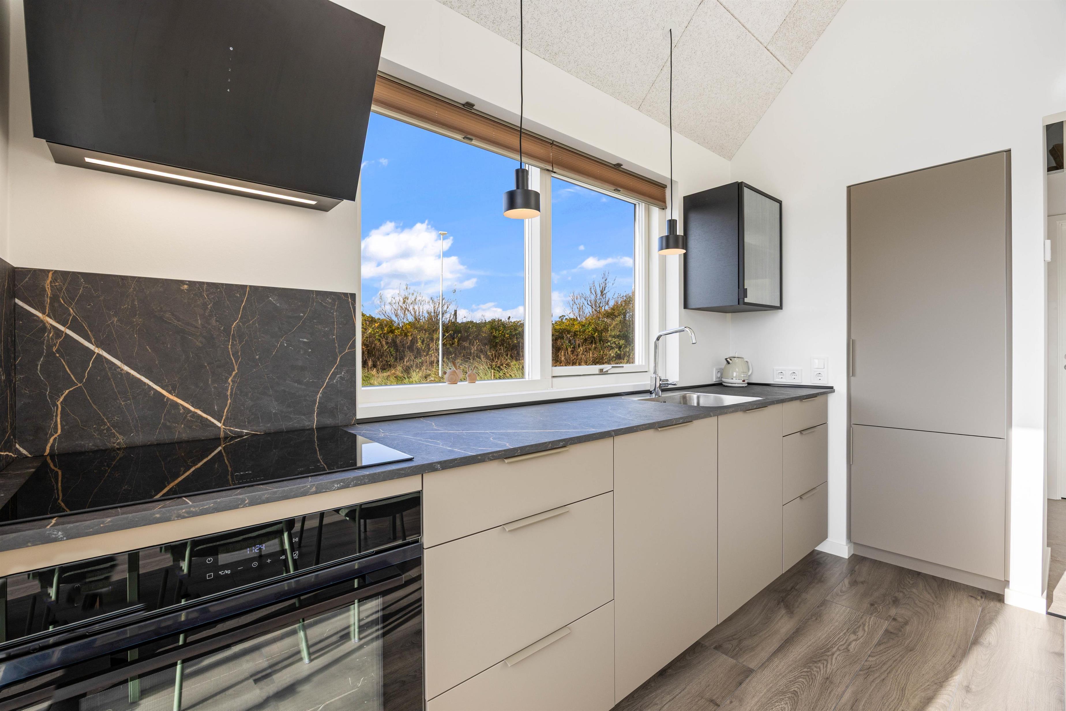 Køkkenet er moderne og fuldt udstyret, så feriens måltider nemt kan tilberedes blandt andet med hjælp fra opvaskemaskinen.
