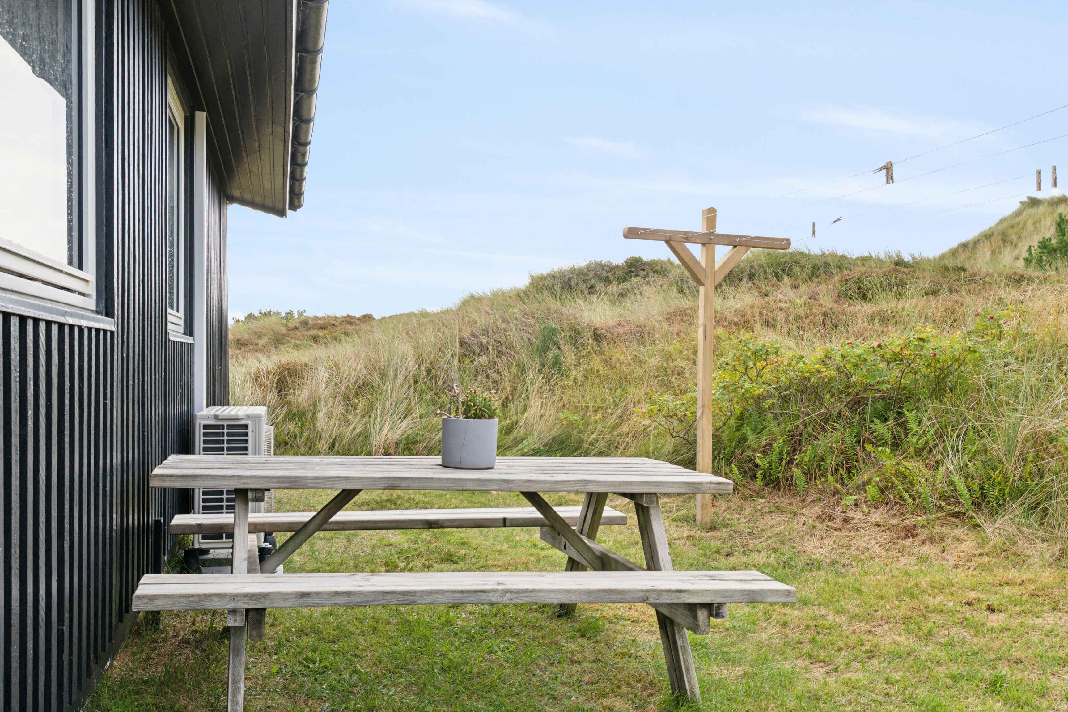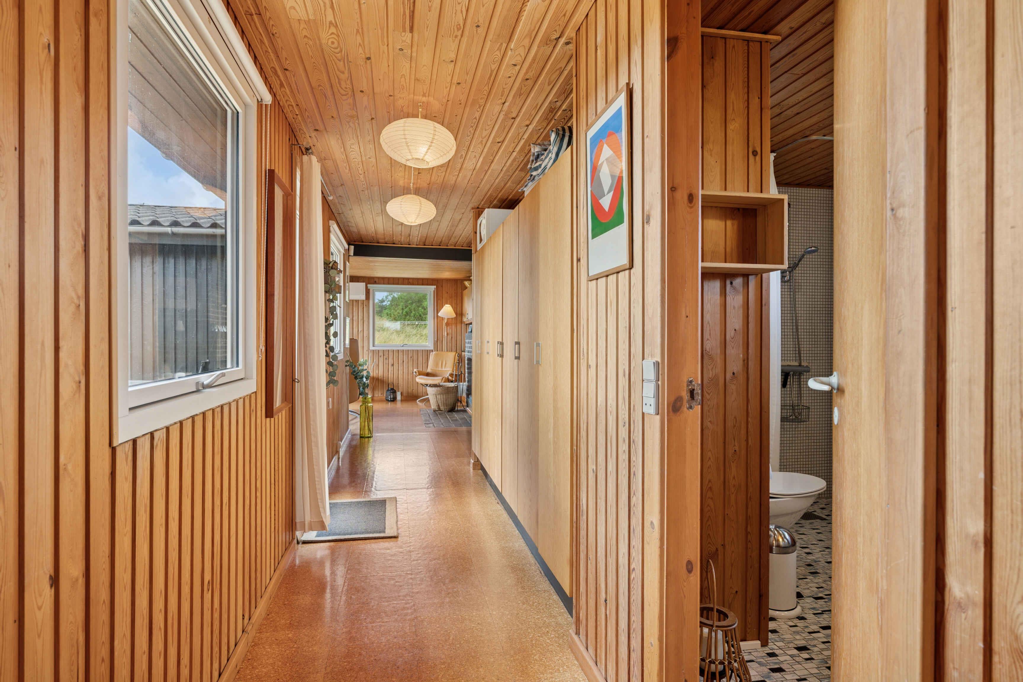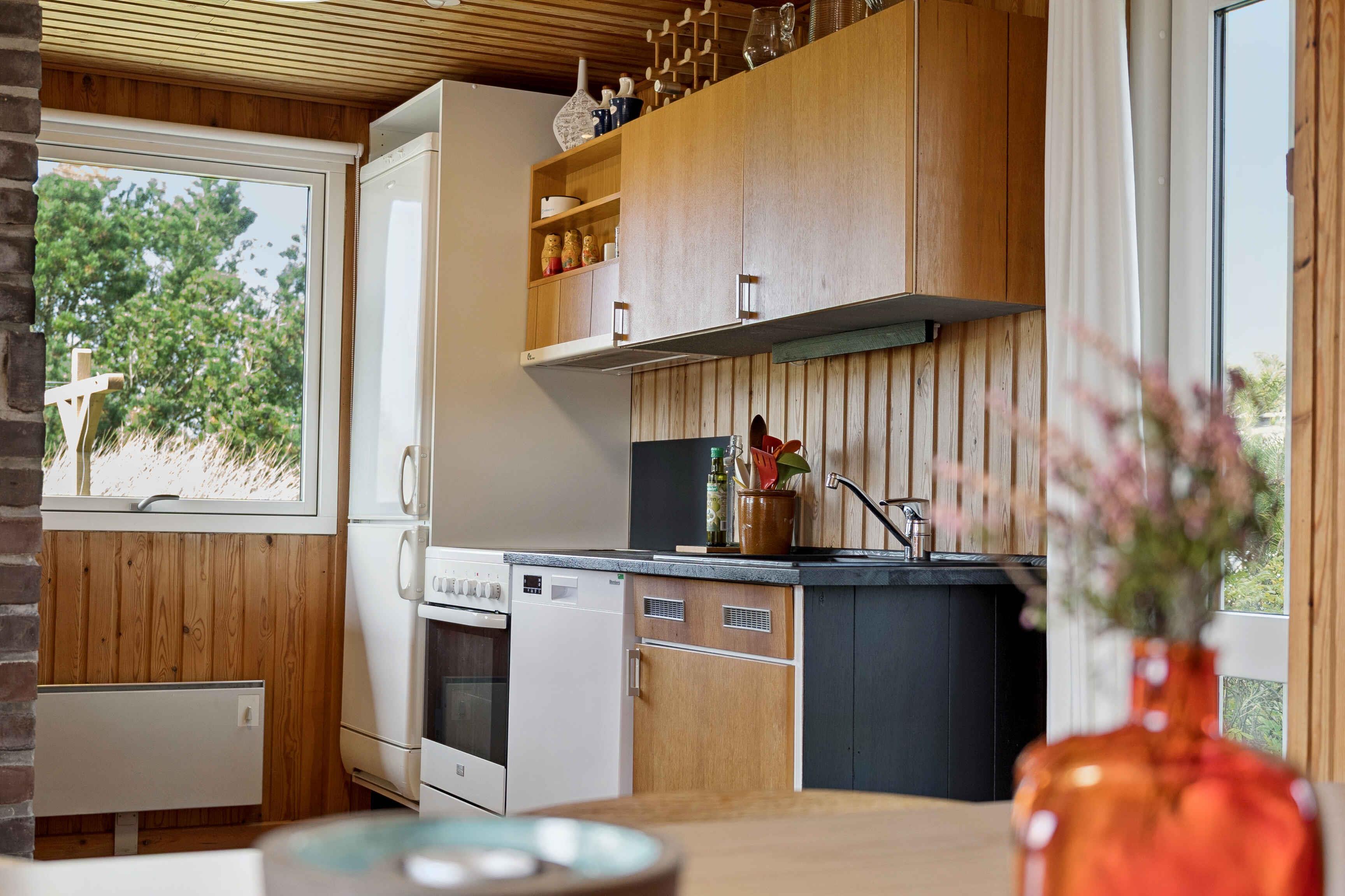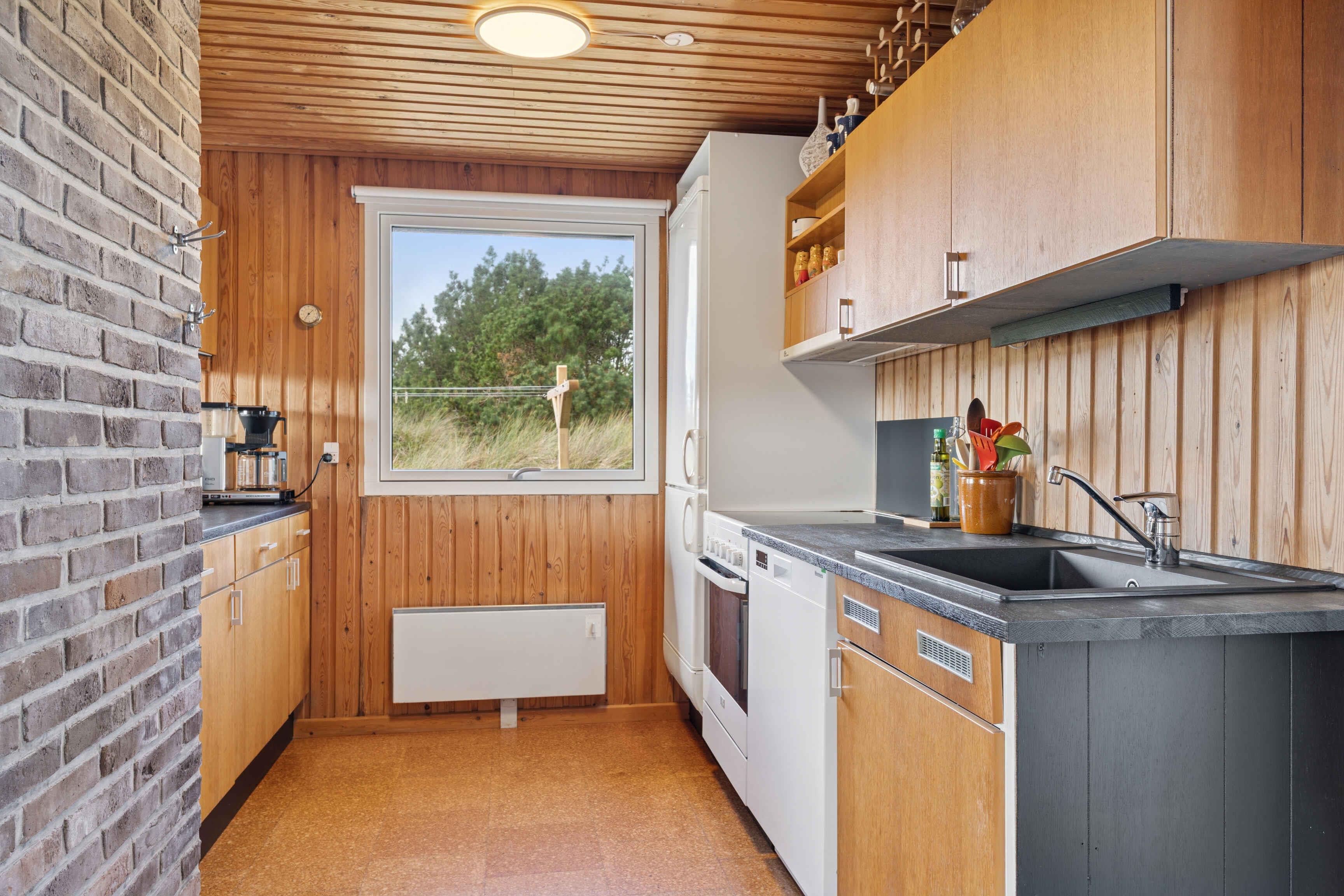Midt i klitterne finder du et sommerhus fra 70’erne, der står skarpt trods sin alder. Huset er nænsomt vedligeholdt, gennemført rent og med nye senge og køkken, så alt fungerer. 83 m² med to soveværelser giver jer en feriebase, der er både autentisk og tryg. Her kan du trække stikket ud. Terrasserne ligger som små oaser, hvor man kan spise, læse eller blot lytte til vinden i marehalmen. Stuen samler jer om måltider, spil eller en bog, mens varmepumpen og grillen holder jer varme på hver sin måde. Området er en legeplads for sanserne. Hav og fjord på hver side, skov og klitter overalt. Fra stranden kan du dyppe tæerne i Vesterhavet, fange aftensmaden eller lade blikket forsvinde ud i horisonten. De nærliggende skove og stier kalder på cykelhjul og vandrestøvler. Og så er der byerne. Hvide Sande med havneliv, friskfanget fisk og markedsstemning. Søndervig med butikker, caféer og brede sandstrande. Alt sammen tæt nok til en cykeltur, men langt nok til, at roen stadig er din. Et hus til jer, der søger langsomhed og nærvær. Hvor naturen dikterer rytmen, og hvor en ferie kan være mere end blot ferie. Her er alt, men på en stille, anderledes måde.