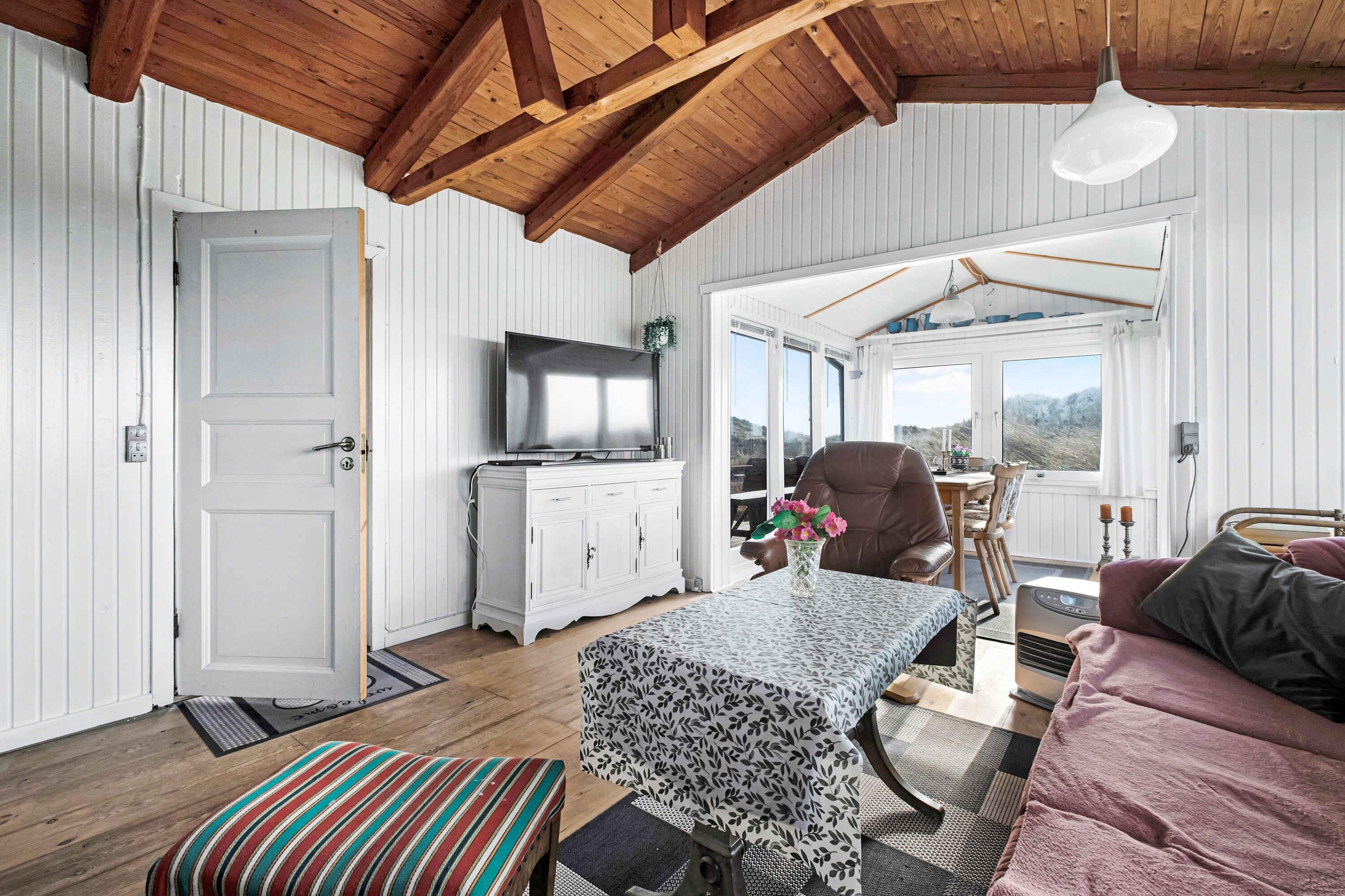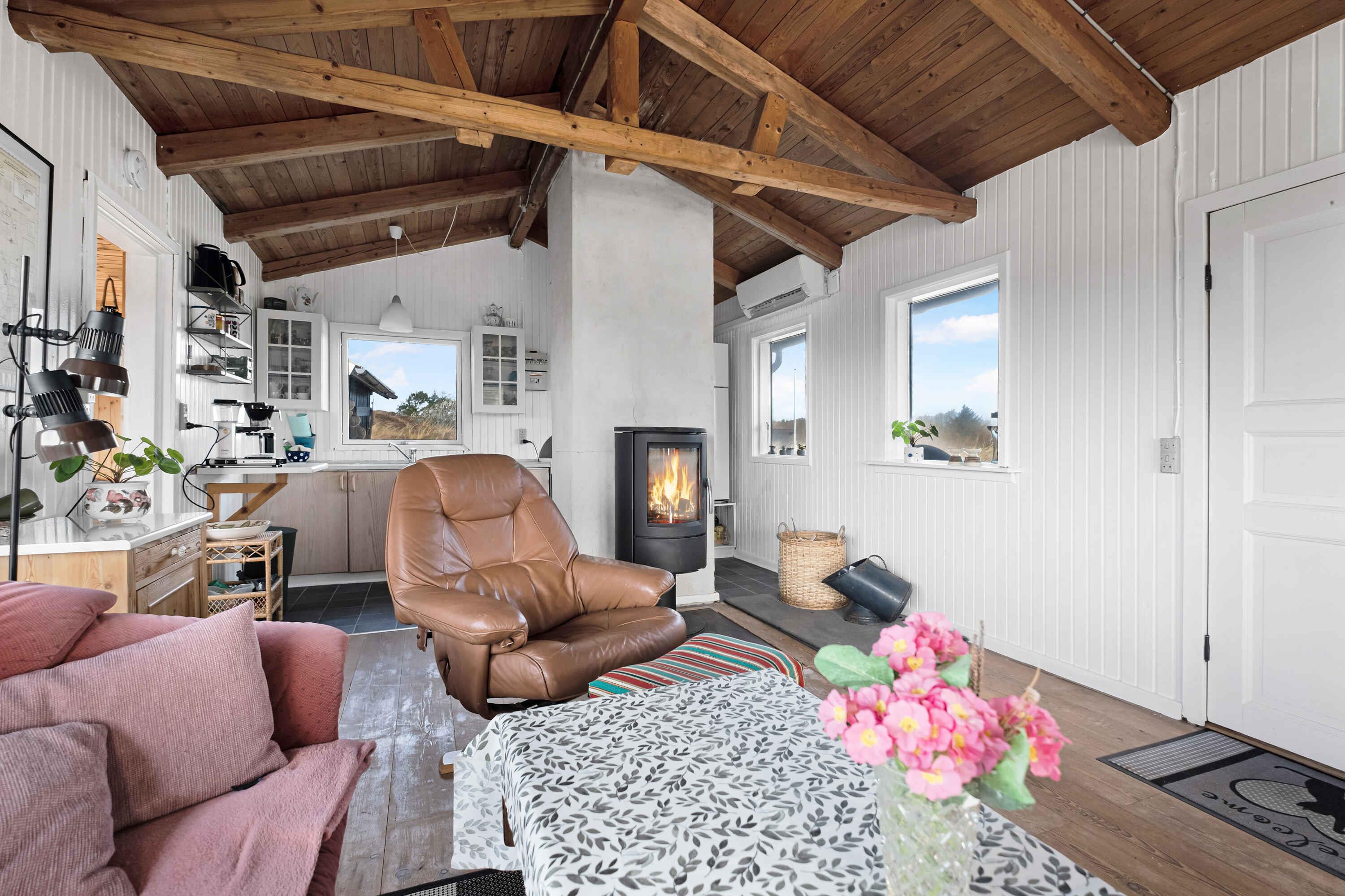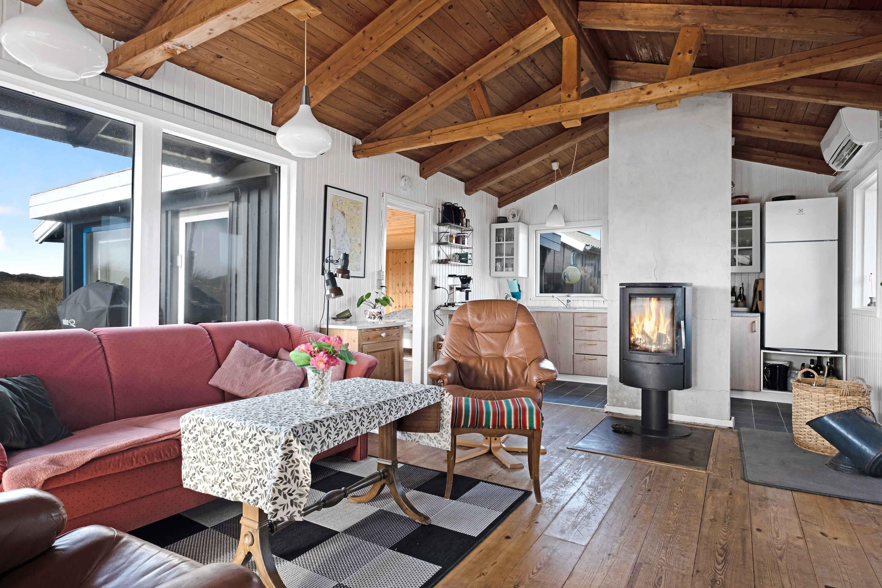 Bo ugeneret med udsigt mod klitterne og kig til fjorden. Huset rummer og emmer af en klassisk sommerhusstemning. Et at de ældste træhuse på Holmsland klit. Morgenmad med morgensol på østterrasse. Aftensmad med aftensol på vestterrasse. Der er fri udsigt til de skønne klitter og kun 150 meter ned til havnen hvor der kan købes frisk fisk. Der er ny ovn, ny køleskab, nye senge fra 2018.Nyhed 2024 er rullegardiner i soveværelse og ny el varme i badeværelse/soveværelse samt stuen er malet om/køkken moderniseret og nye vinduer ud til terrassen - det som mange har savnet. Der er fiber internet 100/100. Boligen Du er tæt på både fjord og hav Bo ugenert med udsigt mod klitterne og kig til fjorden. Huset rummer og emmer af en klassisk sommerhusstemning. Et at de ældste træhuse på Holmsland klit. Morgenmad med morgensol på øst-terrasse. Aftensmad med aftensol på vest-terrasse. Godt med læ. En uforlignelig duft af cabrifol. Der er terasse imod øst, syd og vest, altid en solplet nyde. Gæsteadgang Der er parkering lige ved huset. Autocampere fra venner er lignende er ikke tilladt, huset er til 4 personer. Andre ting, der er værd at bemærke Du vil som udgangspunkt skulle betale for dit forbrug af strøm, 2,25 DKK pr. kwh. Det er normalvis ikke den store udgift. Men da huset forvejen er endog meget billigt i forhold til feriehuse omkring det, vil jeg gerne have den udgift dækket. Der måles af inden du kommer og du måler selv af efterfølgende. Huset er velholdt indvendigt og vi har mange personlige ejendele i huset. DERFOR siger vi maksimum rengøring, tak. Et ældre hus virker snusket når der ikke er gjort ordentlig rent. På forhånd tak :-)