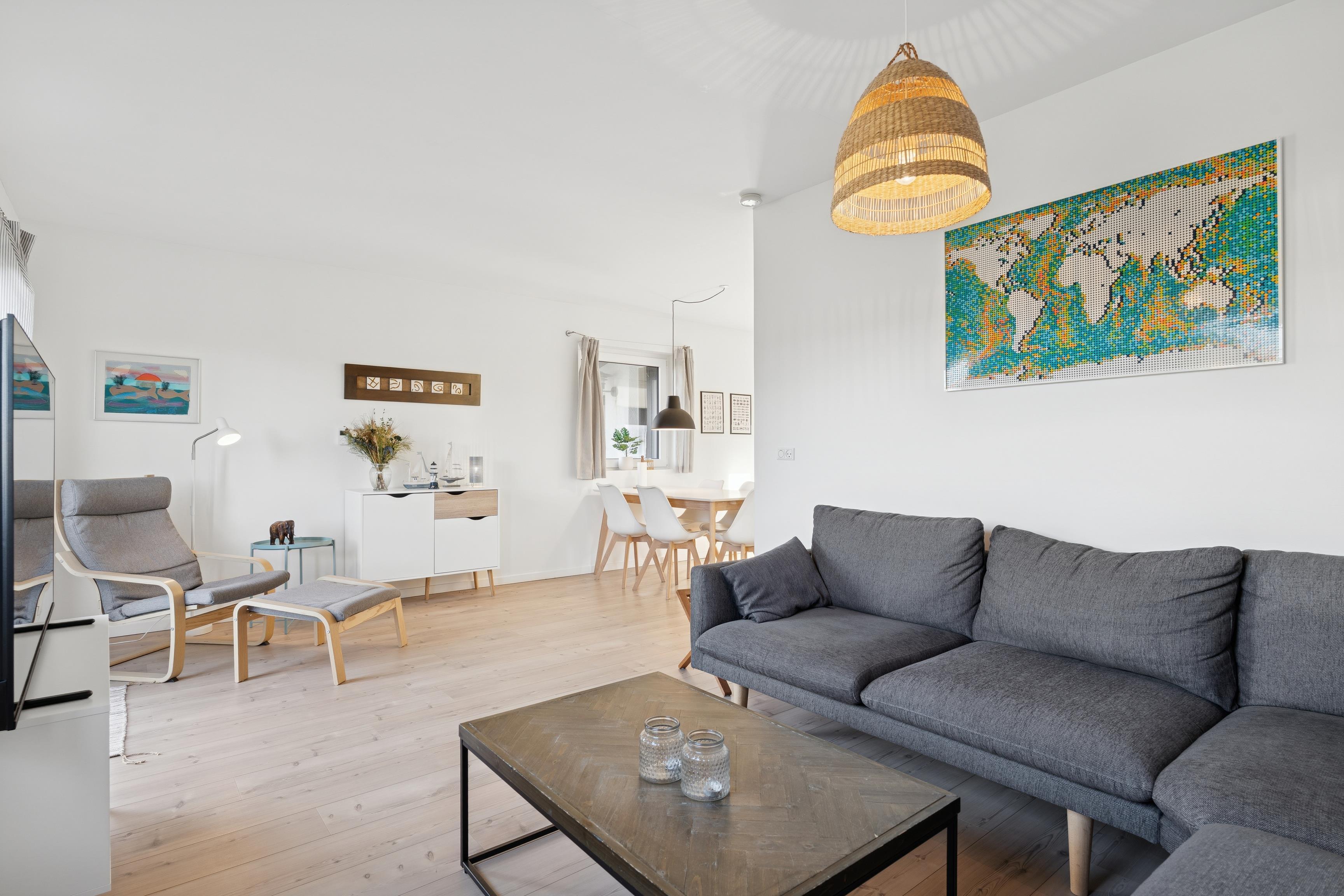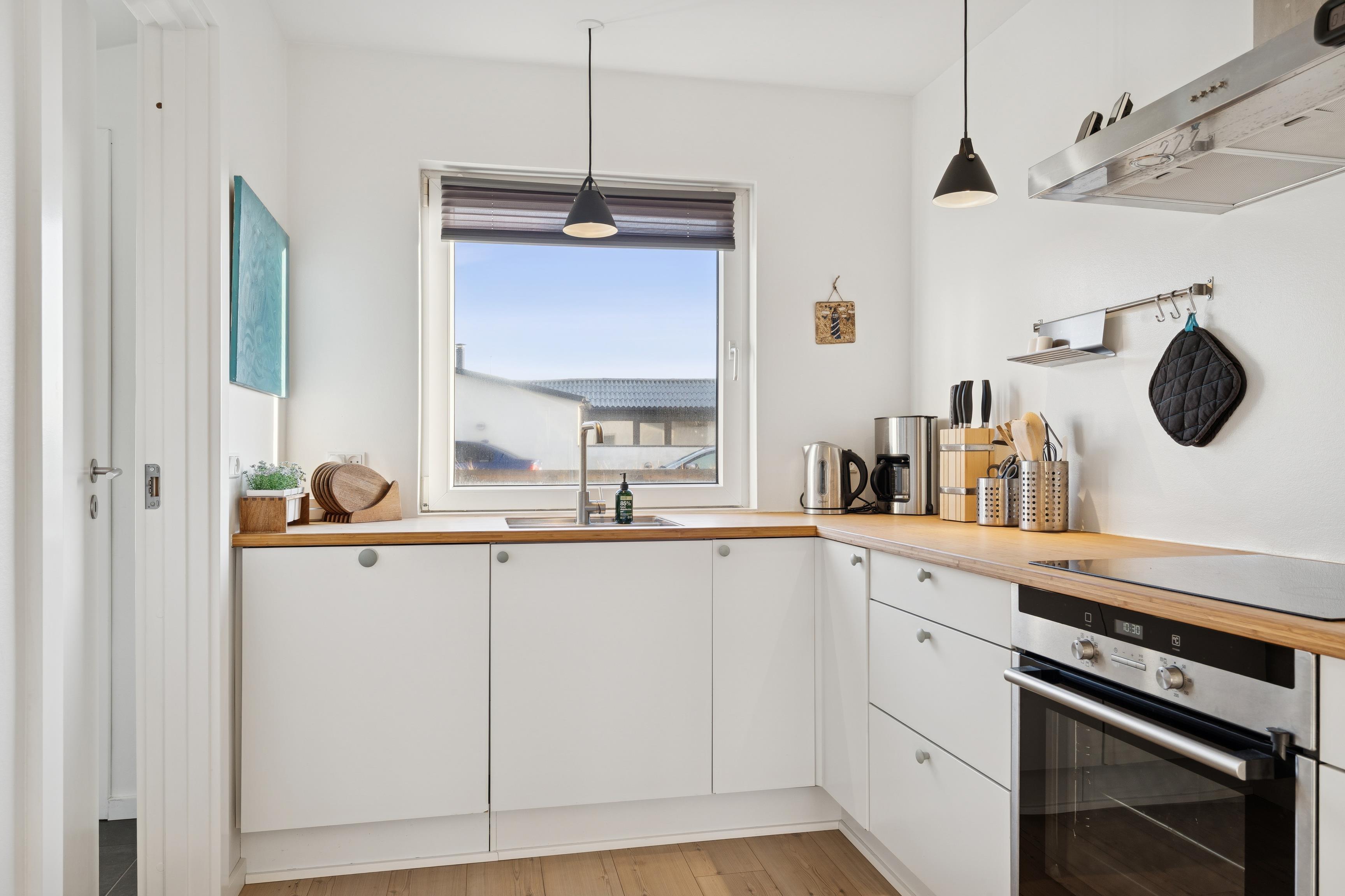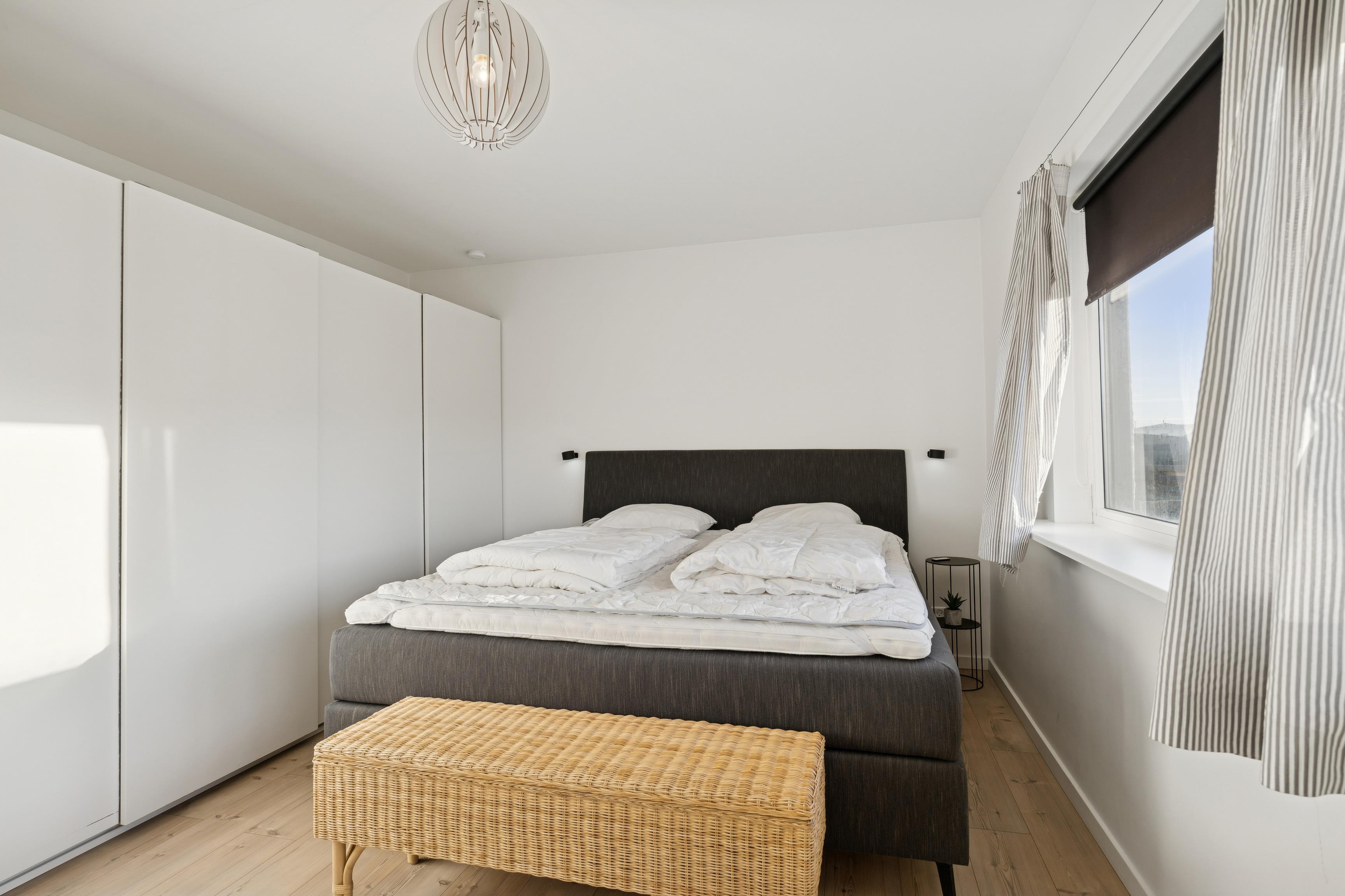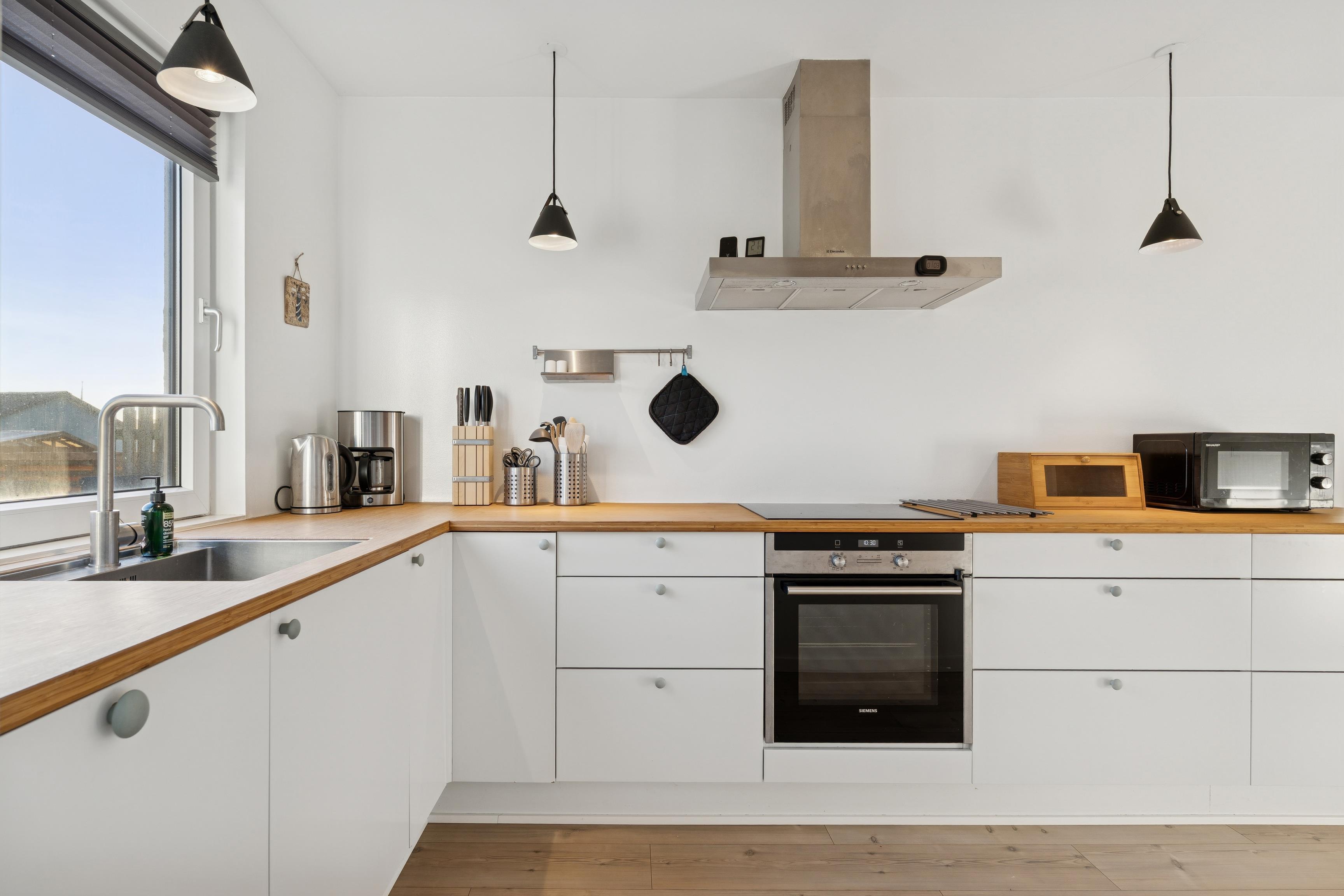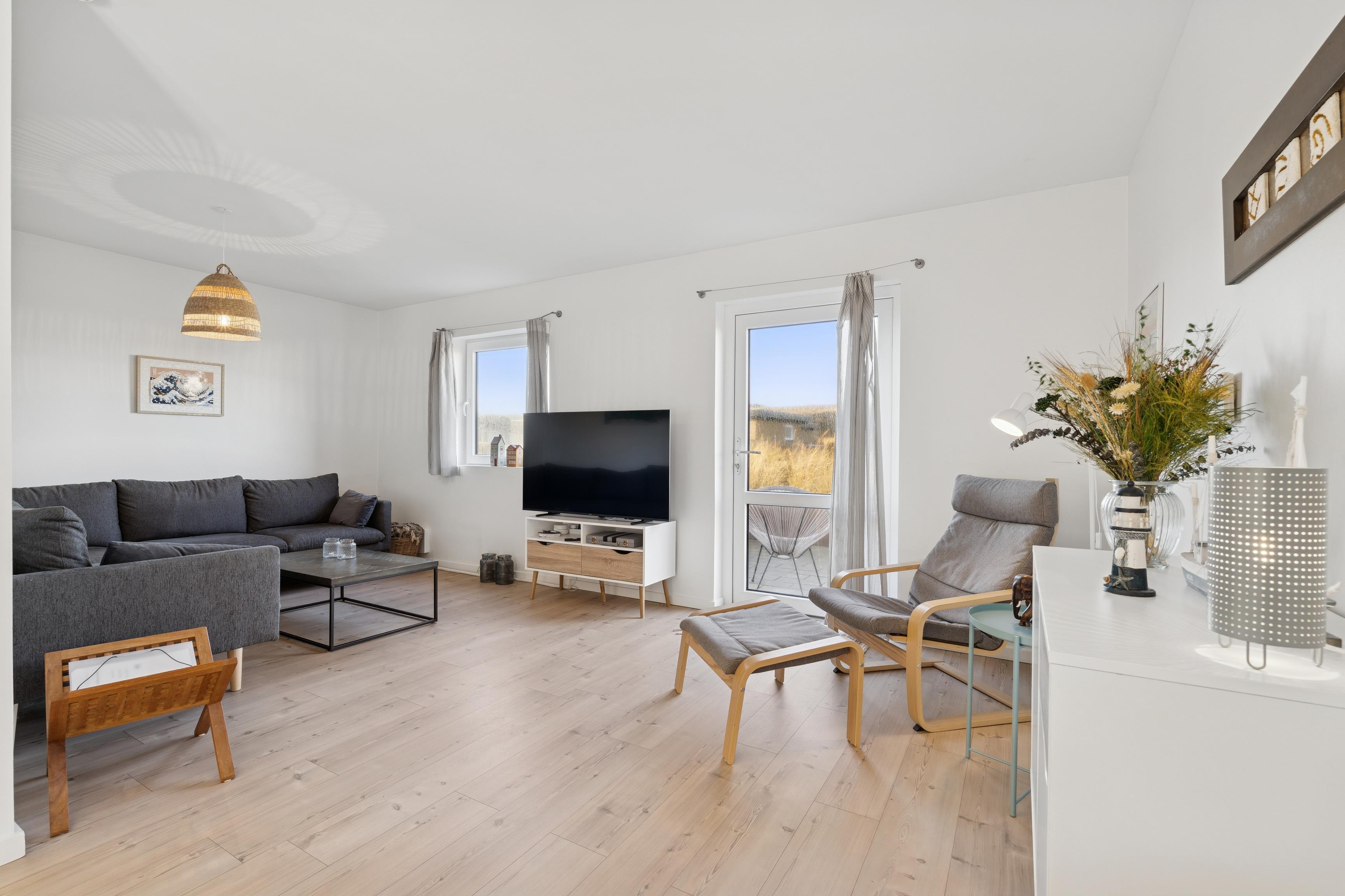 Boligarealet er på 85 m² og udnyttes optimalt takket være den åbne rumindretning, hvor fokus er på funktionalitet og fleksibilitet. Fra det lyse, åbne køkken-/spiseområde er der direkte adgang til stuen, hvor der står en hyggelig sofagruppe klar til jer. Herfra kommer du ud på terrassen foran huset, hvor du kan nyde din morgenkaffe med en fantastisk udsigt over vores klitlandskab. De to lyse soveværelser vender mod vest og er udstyret med mørklægningsgardiner for at sikre en god søvnkomfort. I soveværelset med den store dobbeltseng er der en ekstra enkeltseng, og i det 4-dørs skab er der god plads til alt det tøj, I har medbragt. Badeværelset med toilet og bruser er ligesom resten af huset udstyret med gulvvarme. I kommer til aktivitetsrummet via den store terrasse bagved, hvor der også står liggestole klar til afslapning og rekreation. Gasgrillen og det store bord med havestole på terrassen bagved sørger for hyggelige grillaftener. Komforten afrundes af forskellige bekvemmeligheder som opvaskemaskine, vaskemaskine, tørretumbler og en stor græsplæne, hvor de små kan lege.