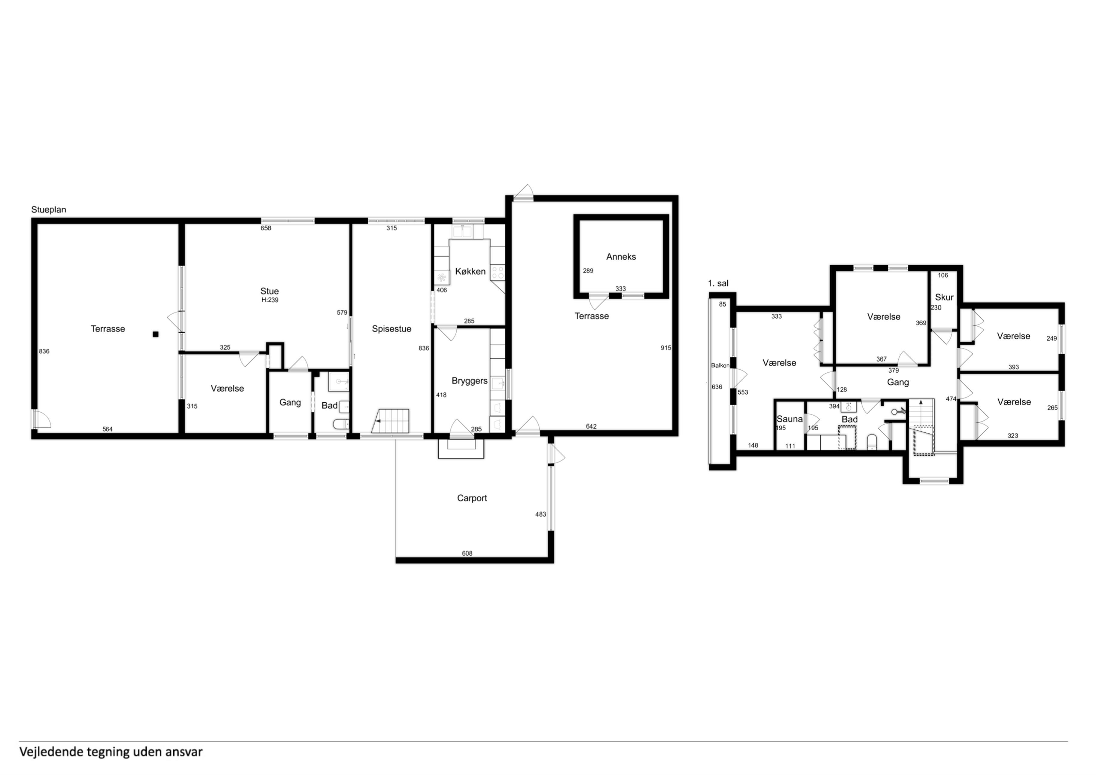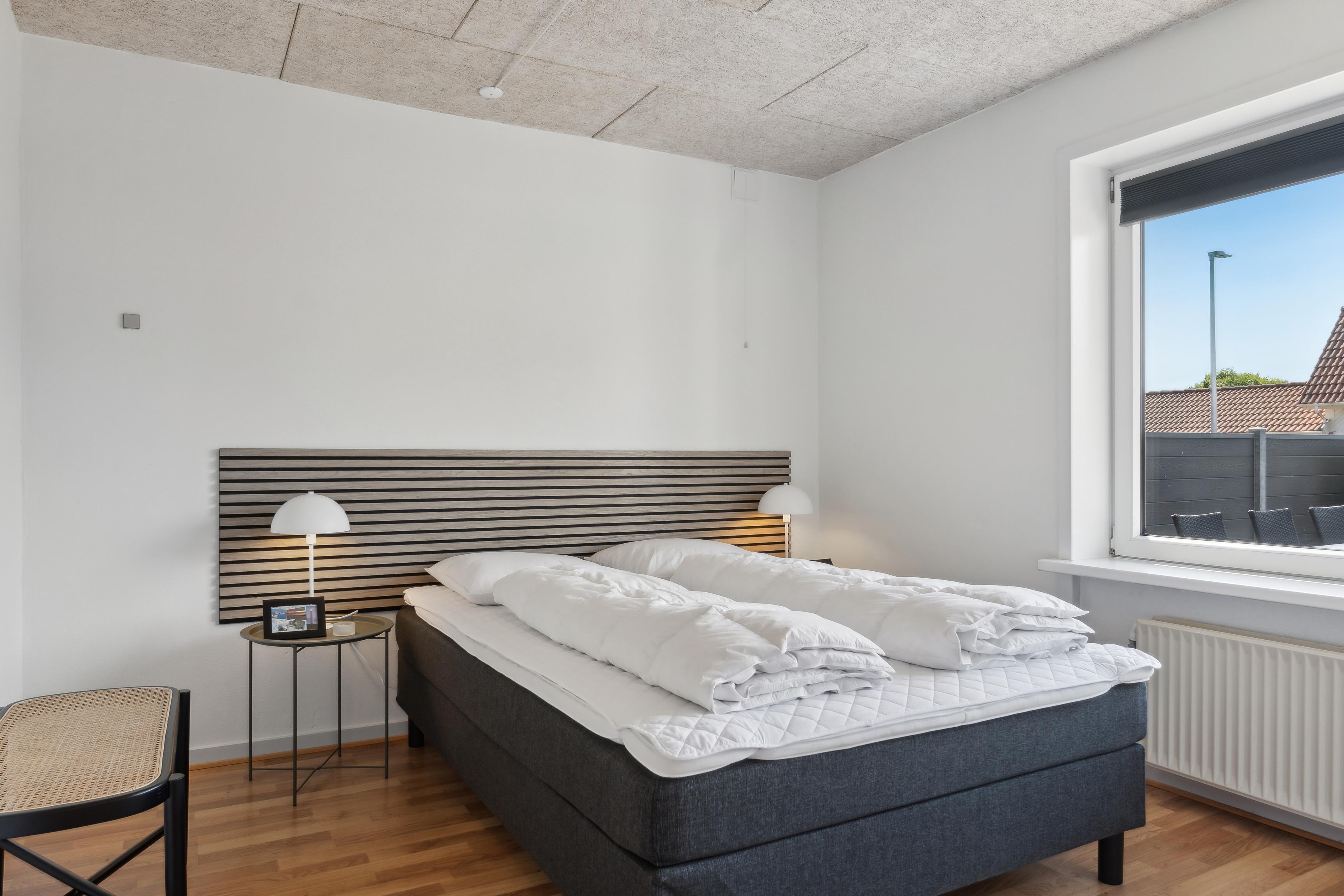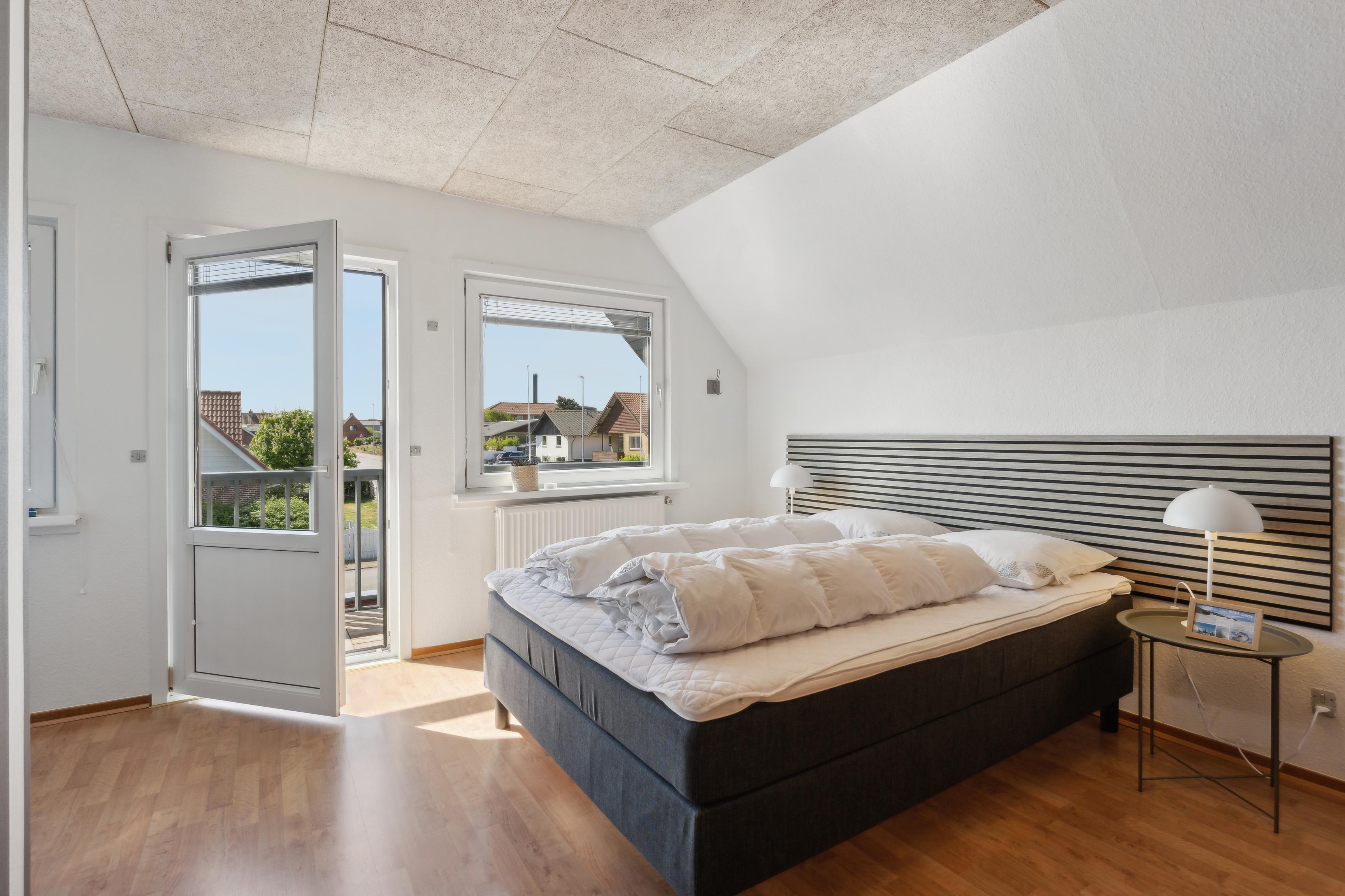 På førstesalen finder I 4 soveværelser – alle med dobbeltsenge (140x200 cm) – samt et ekstra badeværelse og en privat sauna, perfekt efter en lang dag ved havet eller på fjorden.