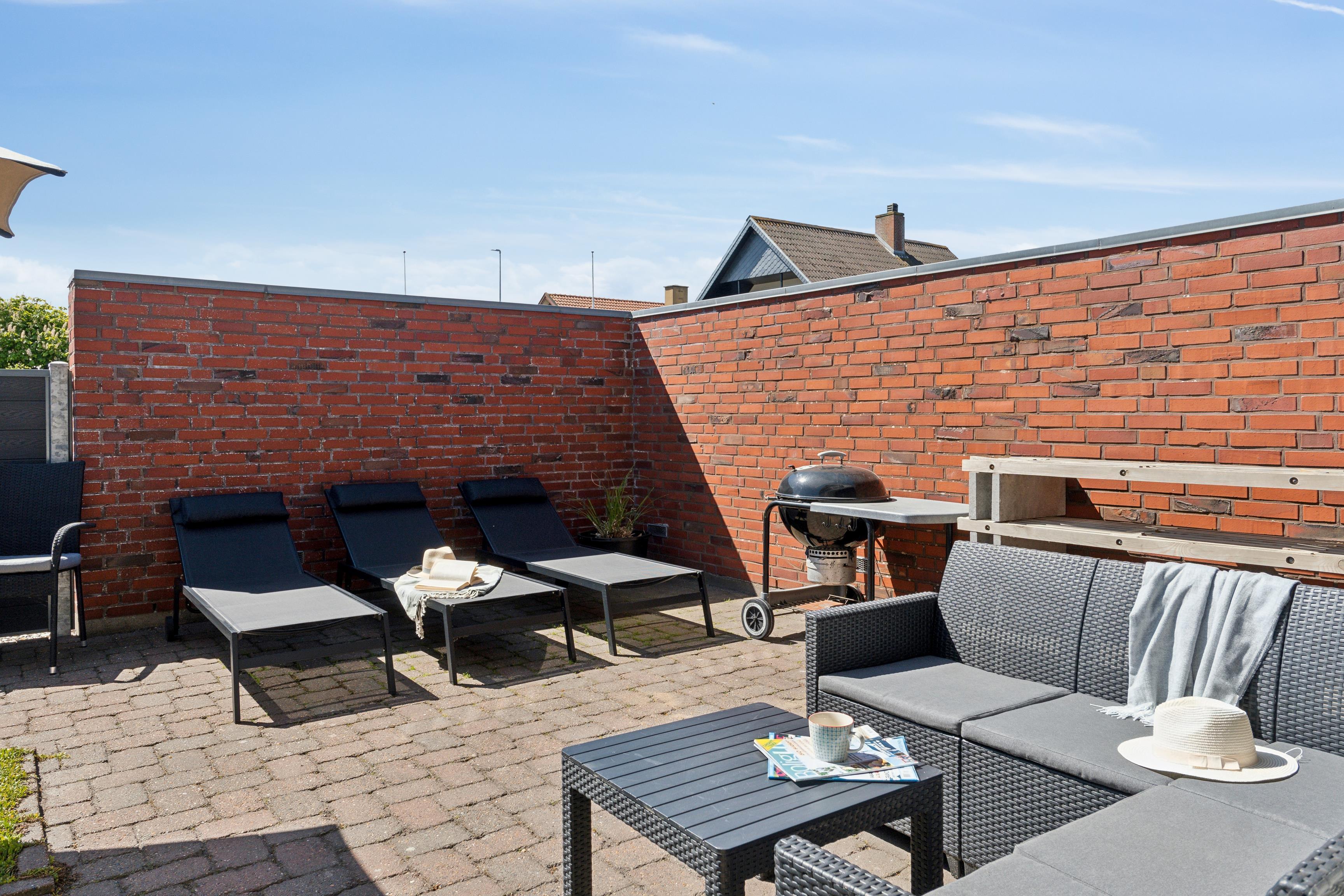 Den nordvestvendte gårdhave møder I annekset, hvor bordfodbold og dart kan udfordre jer til en ferie dyst. Garage til fri afbenyttelse, hvor cykler og andet udstyr kan stå aflåst. God parkeringsforhold på grunden.