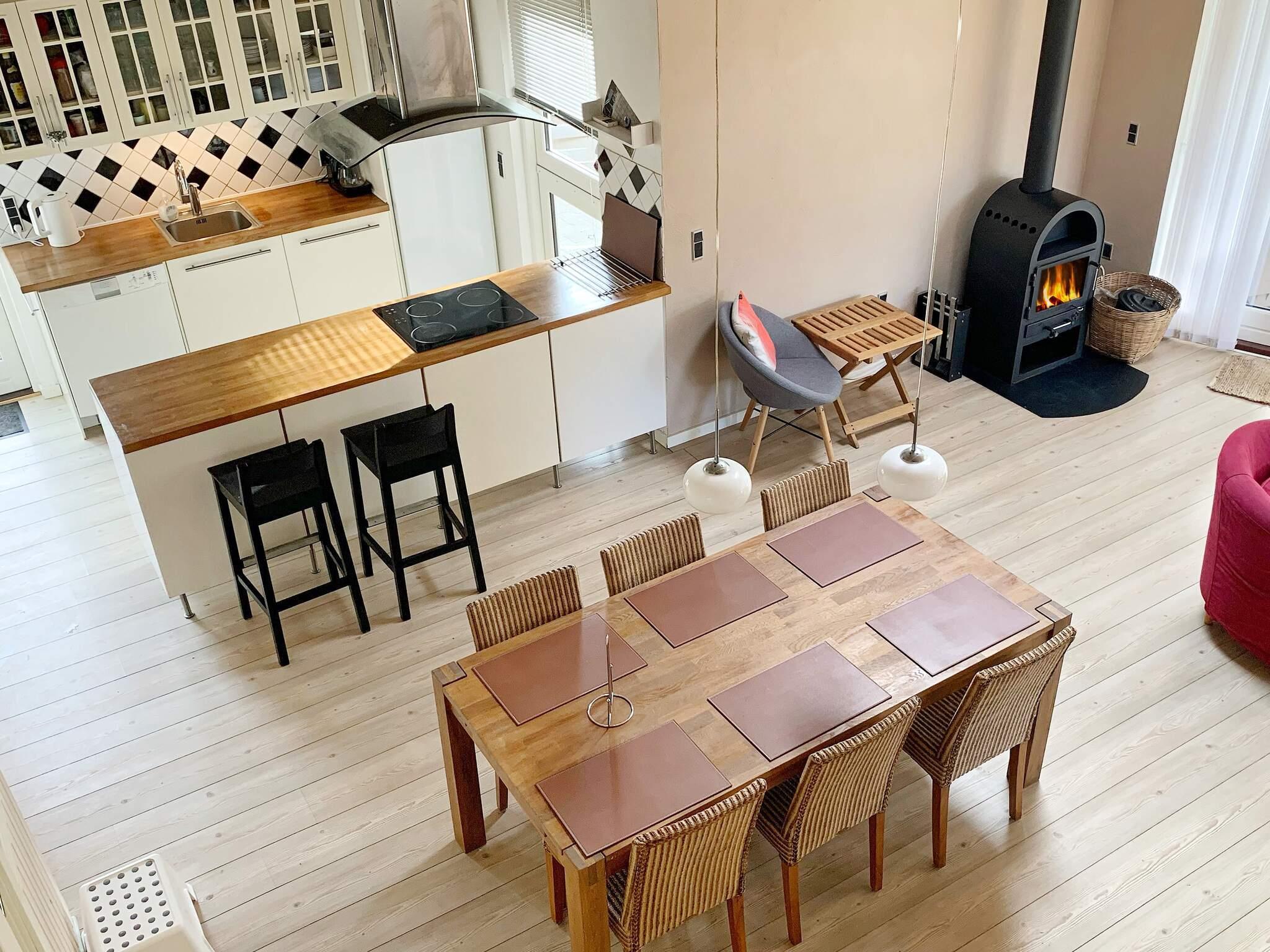 1 Opholdsstue: Brændeovn, tv, høj stol
