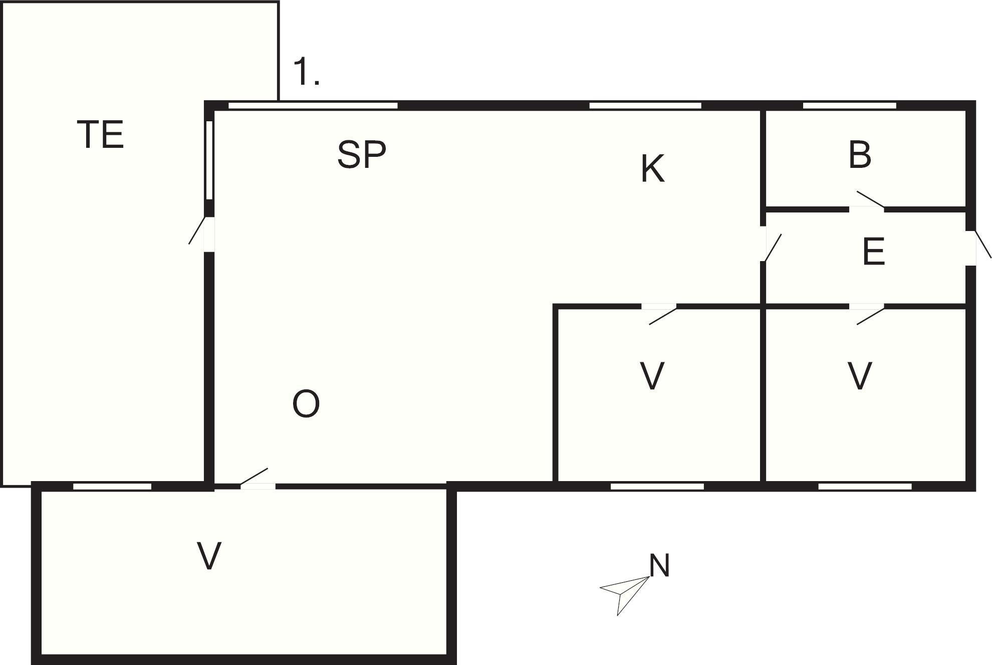 Sengepladserne fordeler sig på et værelse med en dobbeltseng og et værelse med en køjeseng samt et værelse med en enkeltseng. Husets badeværelse er udstyret med toilet, håndvask og bruseniche. Stuen opvarmes med luft/luft varmepumpe og værelser med el-radiator.