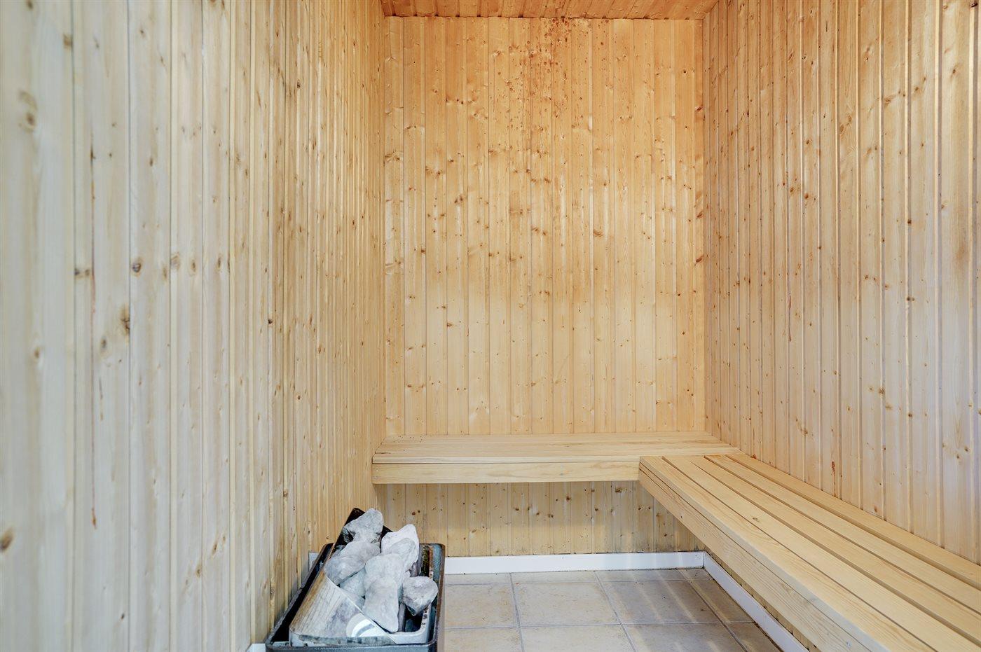 Der er 3 badeværelser med bruseniche og 3 toiletter. Der er gulvvarme på 3 badeværelser. I saunaen er der mulighed for afslapning.