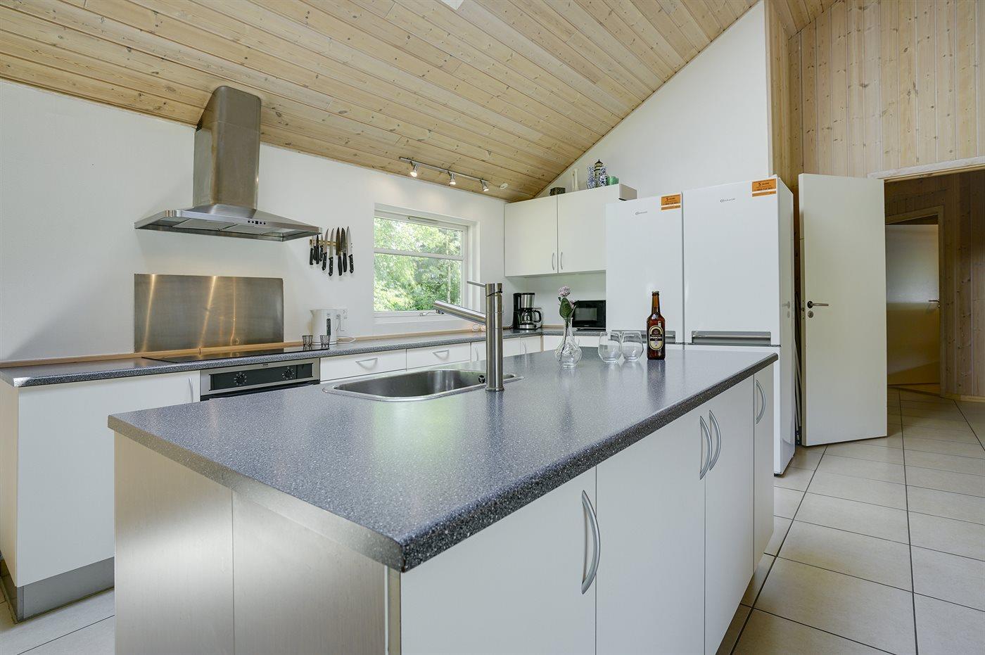 Køkkenet er udstyret med 1 køleskab. Der er 4 keramiske kogeplader, varmluftovn, mikrobølgeovn samt opvaskemaskine.