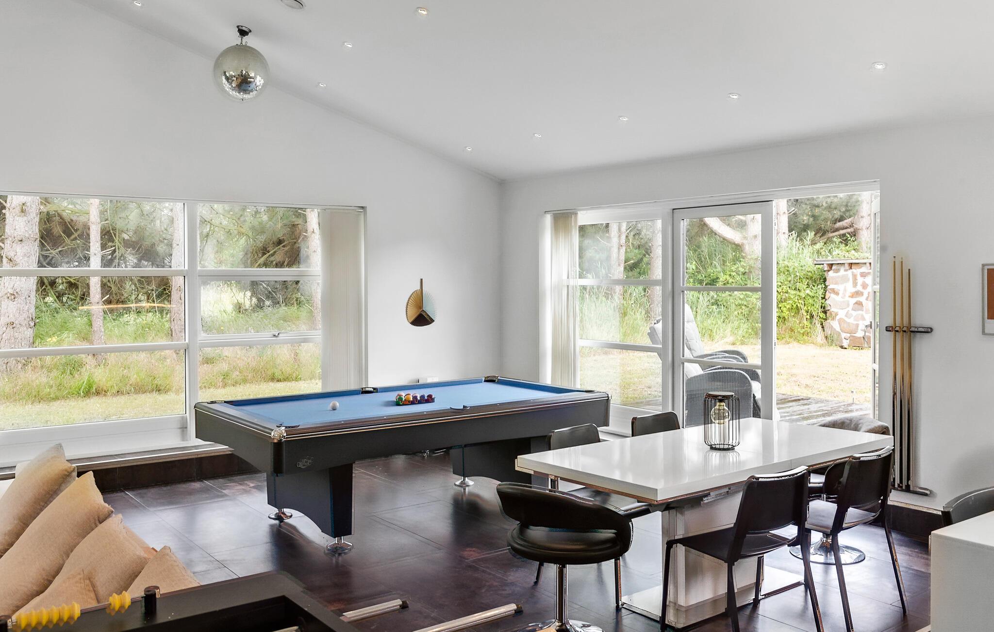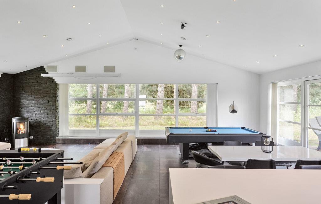 Dette sommerhus ligger nær Rødby færgehavn og giver jer et godt udgangspunkt for at komme rundt på Lolland. Huset præsenterer sig lyst og indbydende med store indendørs- og udendørsarealer samt en lang række aktivitetsmuligheder.I det åbne køkken kan I sammen tilberede lækre ferieretter og nyde dem rundt om det lange elegante spisebord, mens brændeovnen skaber en hyggelig atmosfære. Snup senere en dyst i aktivitetslokalet, hvor I kan kåre en vinder i alt fra billard til bordtennis og dart. Rund dagene af med en tur i spabad, før I gør jer klar til endnu flere spændende oplevelser på den syddanske ferieø.