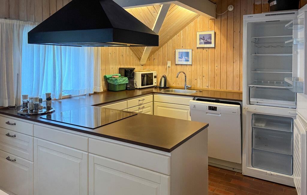 Træd indenfor og føl jer øjeblikkeligt velkommen i det smukt designede interiør. Brug stuens komfortable sofaer og brændeovn til hyggelige aftener. Lad ilden knitre, læn jer tilbage og nyd den rolige atmosfære. Find sammen omkring det store spisebord og server jeres feriemåltider sammen. Tilbered jeres måltider i det åbne, moderne køkken med køkkenø og udnyt de generøse arbejdsflader.