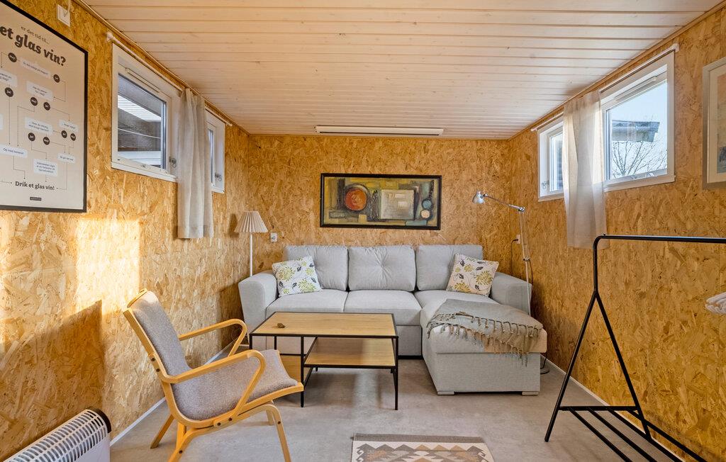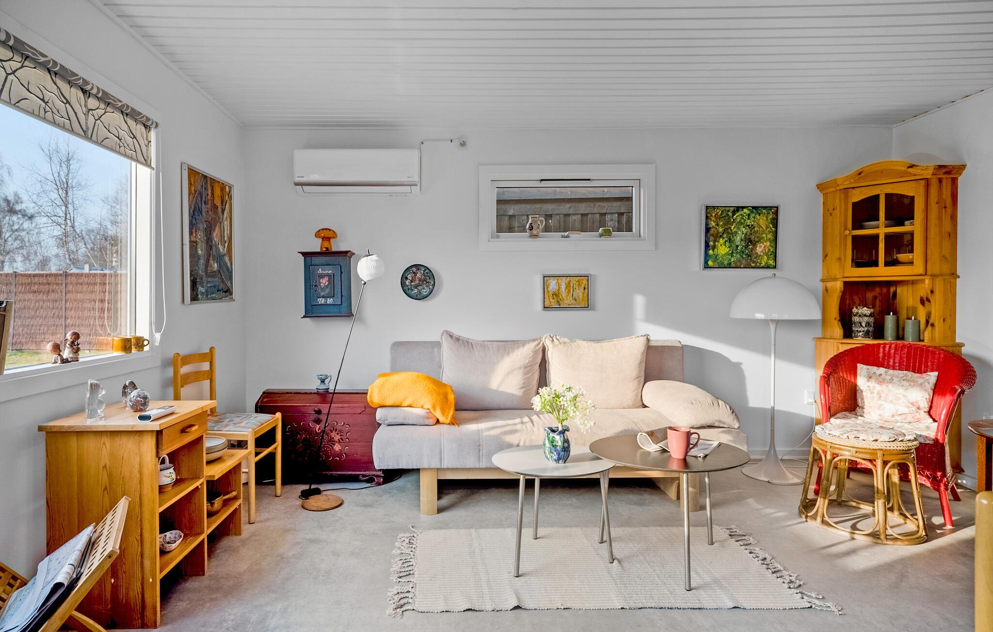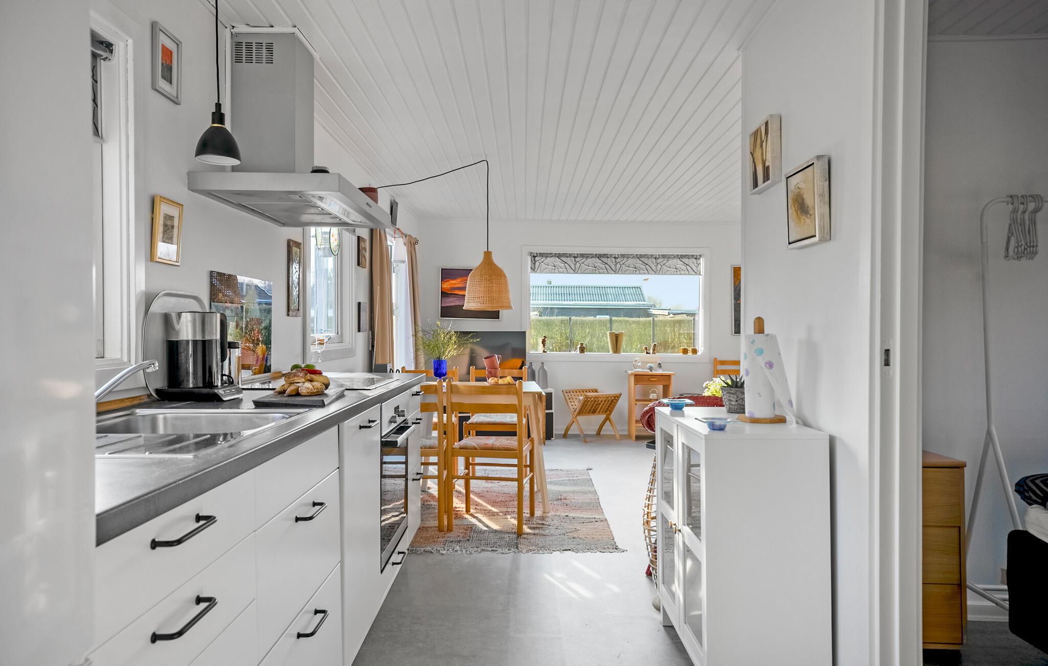 Slap af ved Roskilde Fjord, og nyd en pause fra hverdagen i dette hyggelige feriehus. Den lyse stue byder jer velkommen med en venlig og smagfuld atmosfære. Brug det åbne køkken- og spiseområde til at tilberede måltider sammen, og slap bagefter af ved spisebordet eller på sofaen. Hyg jer med en god bog eller et sjovt brætspil, eller nyd udsigten til det grønne gennem de store vinduer. Et separat, hyggeligt rum med en blød sofa giver jer en ekstra mulighed for at trække jer tilbage til ro og afslapning.