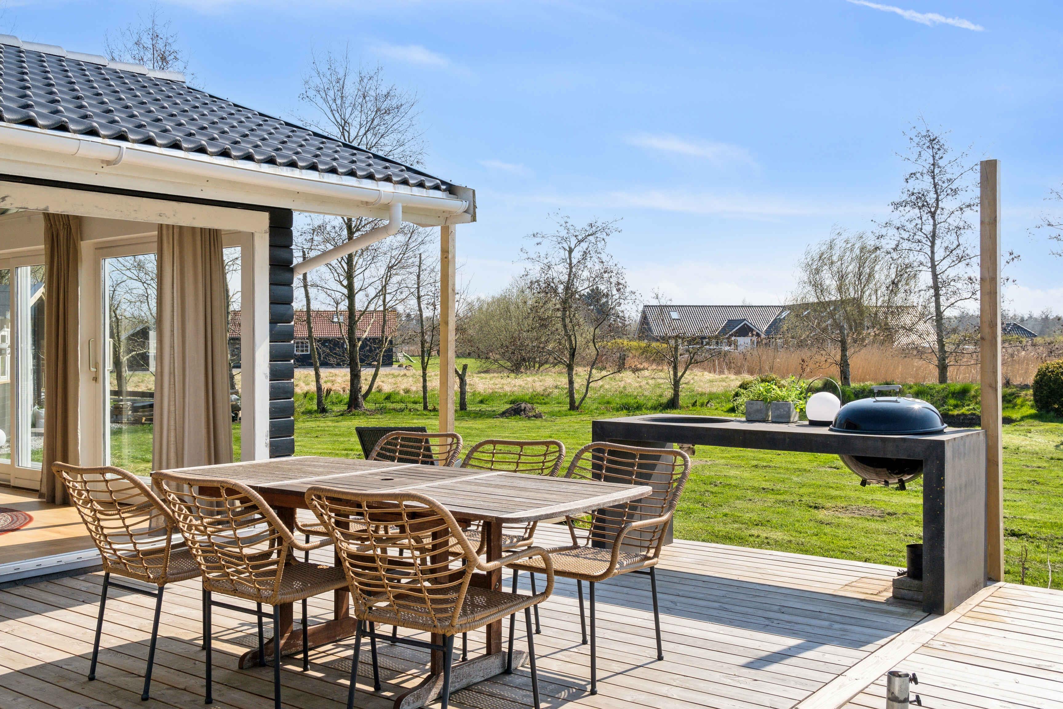 Nyd den fortryllende atmosfære af et hyggeligt sommerhus, der emmer af ægte charme. Træd ud på den imponerende træterrasse, hvor du kan lade op nyde et skønt måltid ved en af de dertil indrettede spisepladser. Eller blot sidde i en af havesofaerne og læse en god bog, følge med i dyrelivet i haven eller spille spil. Mulighederne er mange. Dette skønne tilflugtssted ligger kun 3 km fra Marielyst centrum og tæt på den dejlige Marielyst Strand. Her er cykler så i nemt kan komme rundt. Marielyst strand er flere gange kåret til Danmarks bedste strand. Når i kommer hjem fra stranden kan man nyde både et varmt eller koldt bad i udendørsbruseren, og få vasket sand og salt af. Marielyst centrum byder på masser af restauranter, paddletennis, minigolf cafeer og meget andet. Her oser af rigtig sommer stemning med sine mange ishuse, livsstilsbutikker og marked hver tirsdag i sommerferie månederne. Marielyst Street Food er ligeledes et besøg værd, med både aktiviteter, madboder og storskærm hele sommeren der viser film, sportsbegivenheder og andre store arrangementer. Ved Marielyst Street Food findes flere paddelbaner, fodboldbaner minigolf, bowling og meget andet. Indendørs byder huset på et rummeligt køkken-alrum, udstyret med hvad du måtte forvente i et sommerhus køkken, der indbyder til hyggelige madlavningsseancer og lange middage. Husets indretning inkluderer to soveværelser med senge på henholdsvis 180 x 200 og 140 x 200, som lover komfortable nætter. Den intime og hyggelige stue byder på underholdning med projektor og en masse brætspil, samt en loungeseng. Udenfor på terrassen er der gasgrill og en udepejs. En skøn overdækning, med sofaer, hvor aftenerne kan vare længe, - Selv efter duggen er faldet. Hvis vejret ikke viser sig fra sin bedste side og terrassen ikke er det oplagte valg til madoplevelsen, er spisestuen hyggelig med vinduer til tre sider, så du nærmest føler at du sidder midt i naturen. Her er den ene side, mod solnedgangen et foldedørsparti som kan åbnes helt op, så inde og ude nærmest flyder sammen Dette skønne sommerhus giver dig muligheden for at omfavne den ægte sommerhusstemning og skabe minder, mens du nyder det bedste af både natur og oplevelser. Obs, udlejes ikke til erhversmæssigt brug.