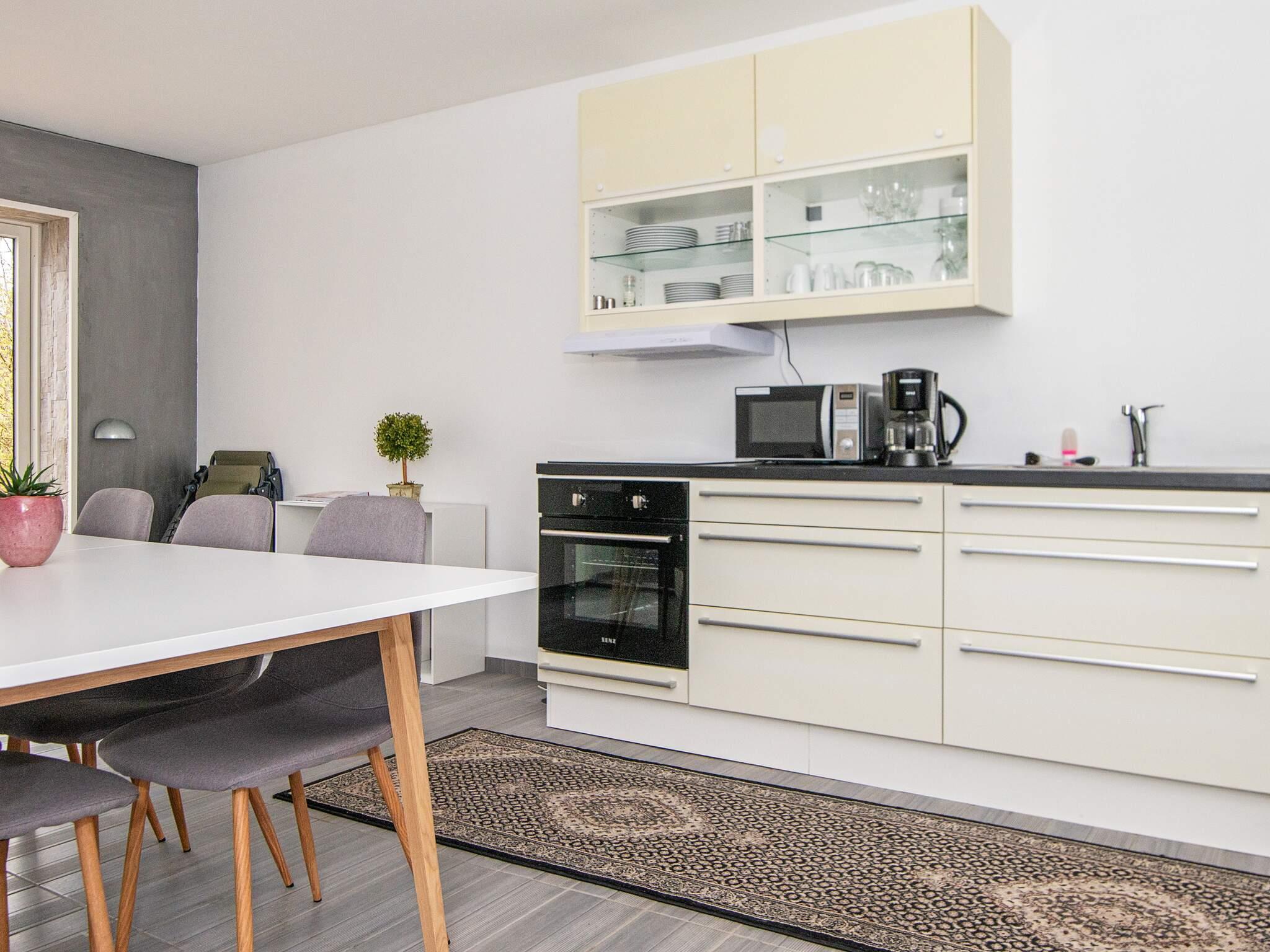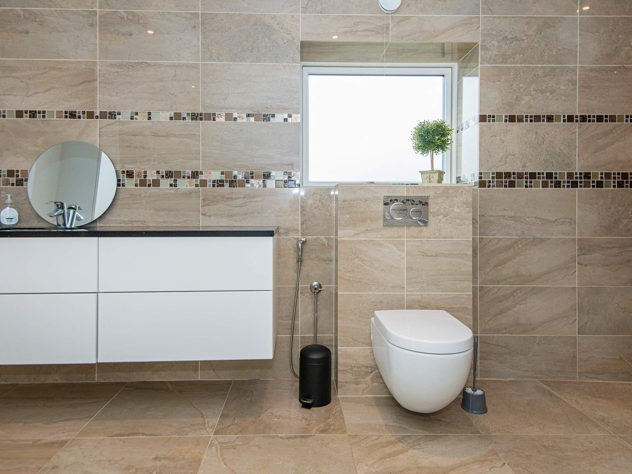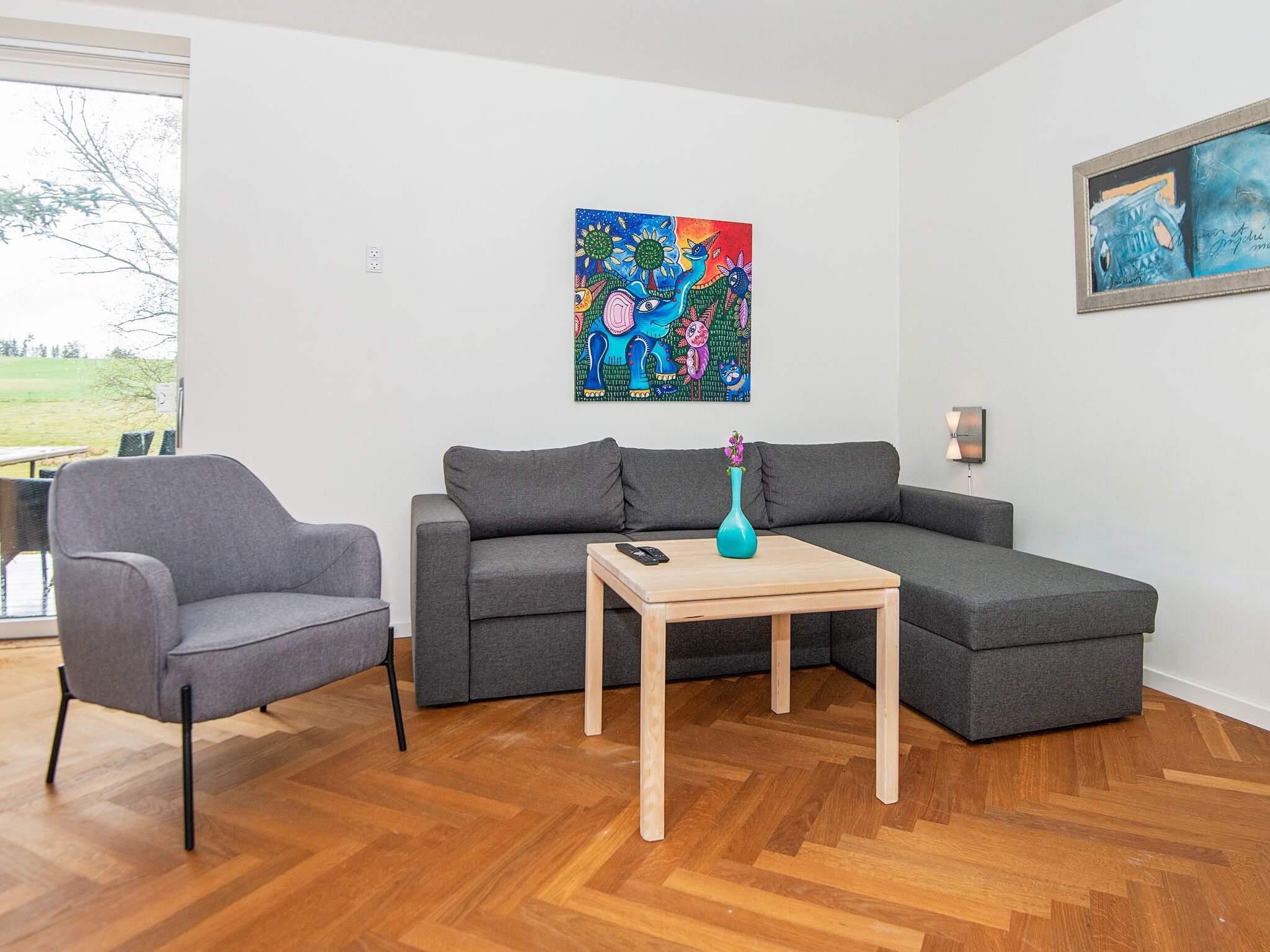 Sommerhuset har køkken med bl.a. keramisk komfur, mikroovn og opvaskemaskine. Stor stue med moderne møblement, gratis internet og Netflix Premium, fladskærms-tv med internationale kanaler samt Chromecast, så I har mulighed for at streame egne tv-tjenester. For at komme fra køkkenet til stuen går man gennem begge værelser. Fra stuen er der direkte udgang til terrassen. Badeværelse med bademiljø samt bruseniche og 2-personers spabad. Der er vaskemaskine og tørretumbler. Huset har to soveværelser fordelt på et med dobbeltseng og et med to køjesenge. I stuen er der sovesofa til to personer.