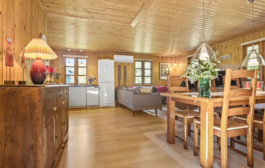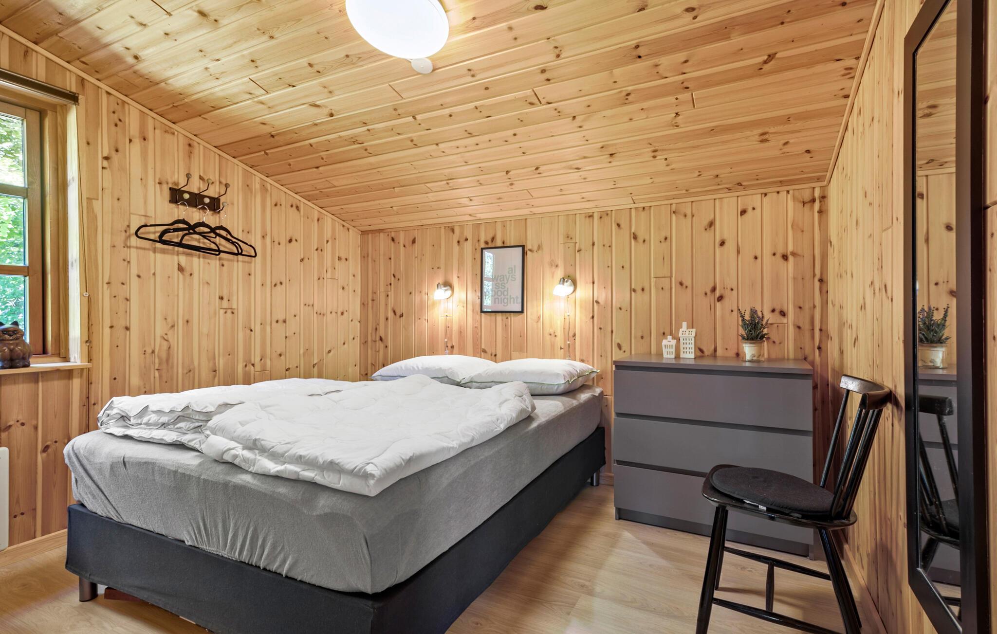 Tæt ved Hvalpsund finder I denne fine oase, som kan danne rammen om jeres feriedage i det nordjyske. Her kommer alle helt ned i gear, for træets varme farve i huset, den fredfyldte grund og de hyggelige faciliteter gør det nemt at slappe af. Begynd dagene med god tid til morgenmad i opholdsrummet, hvor naturmaterialerne skaber en særlig ro. Senere kan I sætte jer til rette i sofahjørnet med film, brætspil eller en god bog og fordøje dagens indtryk.
