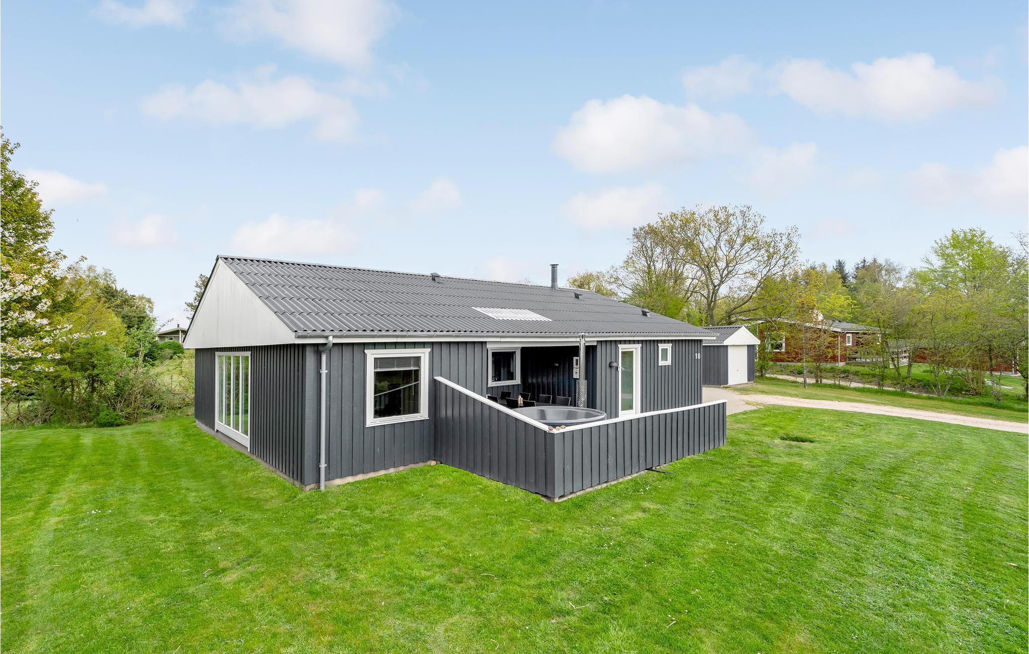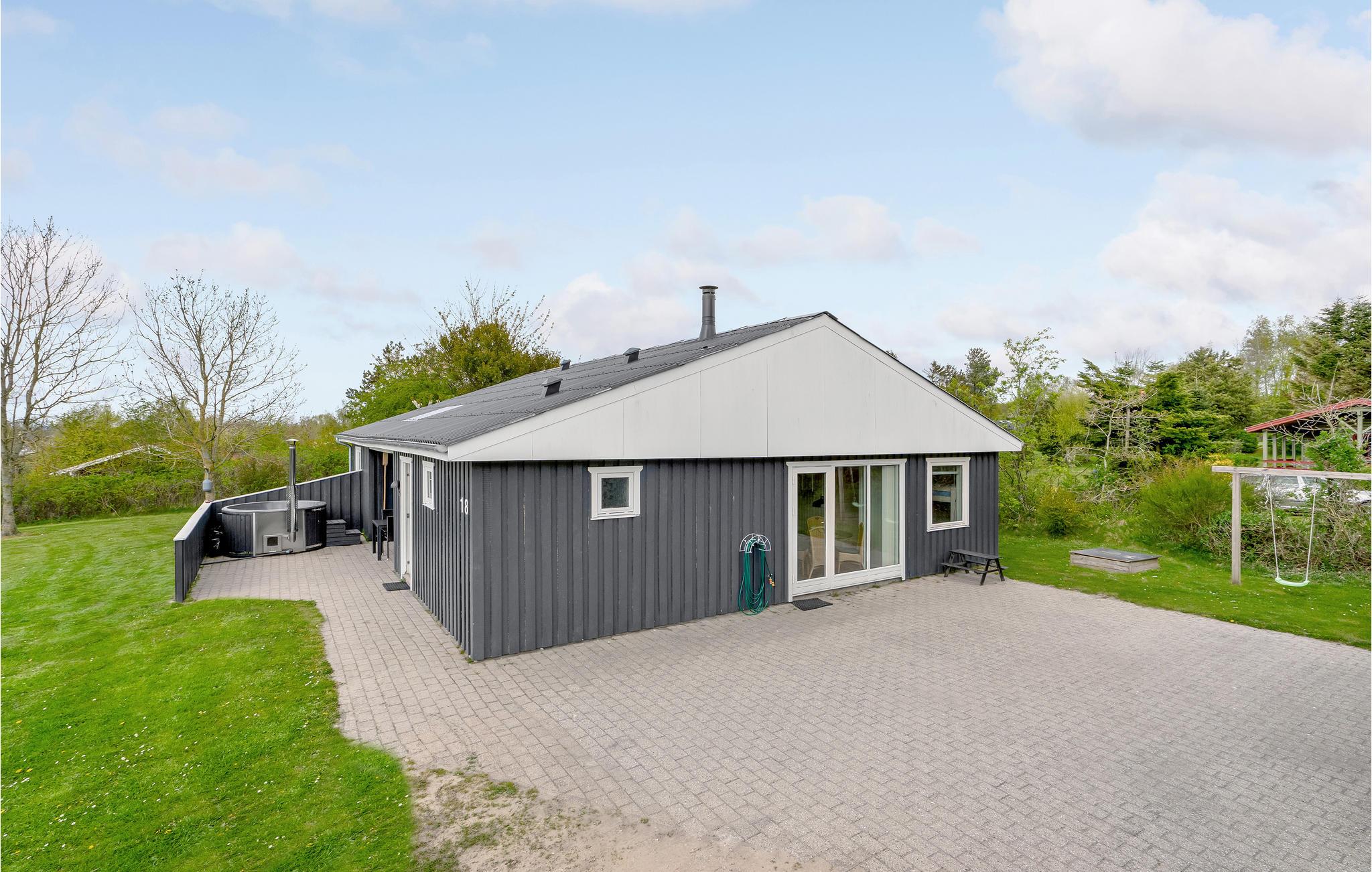 Hyggeligt kvalitetsferiehus i Farsø med boblebad, vildmarksbad, sauna og stor naturgrund tæt på strand.