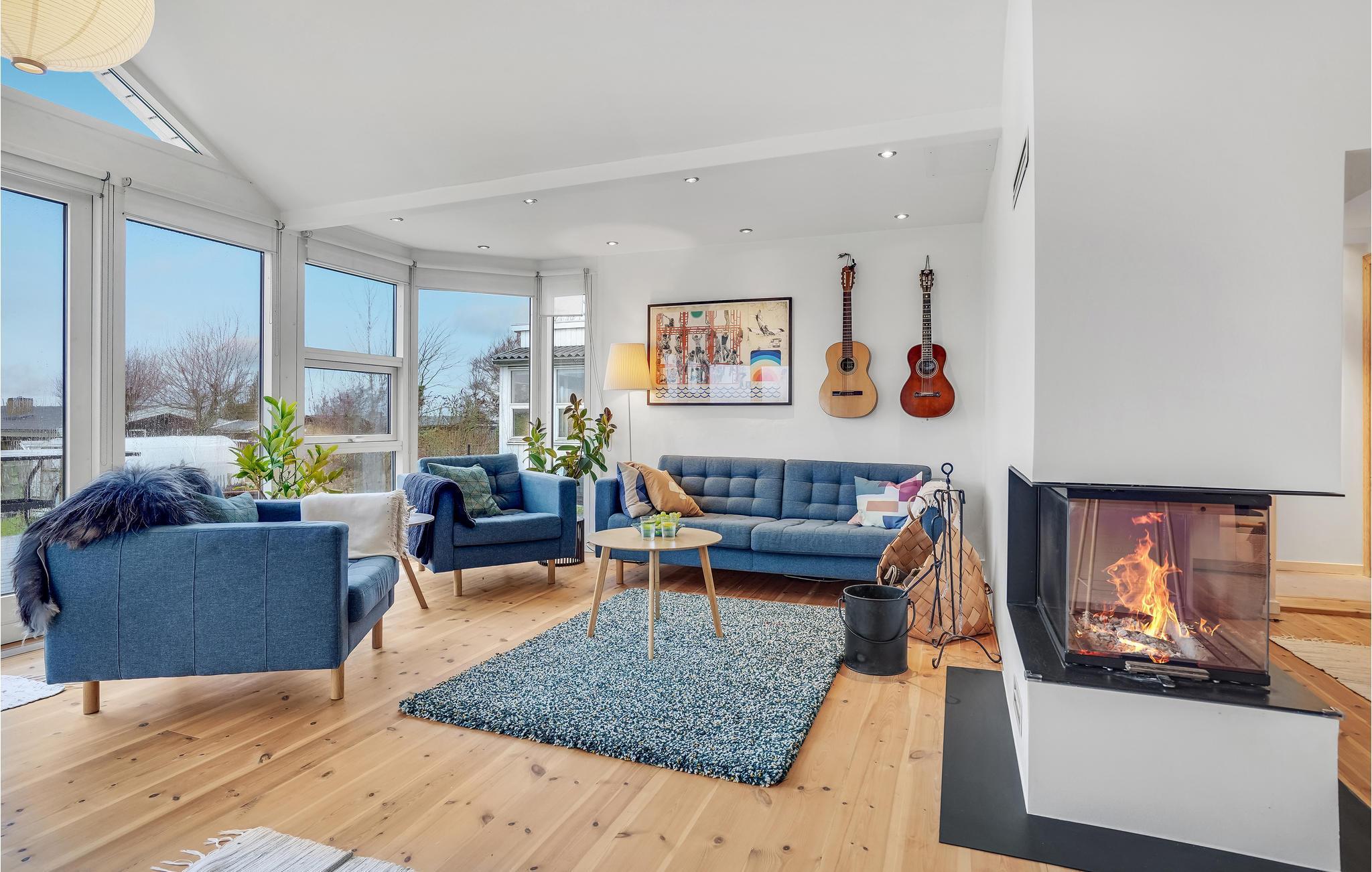 Glæd jer til en dejlig familienferie i dette fantastiske hus. Her glemmer man hurtigt alt om den travle hverdag. Huset har et vidunderligt lyst og giver jer gode afstressende rammer, så her kommer I helt automatisk ned i tempo. Den store stue giver et dejligt sted at samles eller hygge jer med forskellige aktiviteter i samme rum. Efter en lang dag på farten er det skønt at læne sig tilbage i sofaen, mens ilden knitrer i brændeovnen. På de solrige dage kan I sætte jer med morgenmaden på terrassen og planlægge dagens aktiviteter.