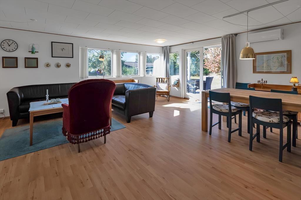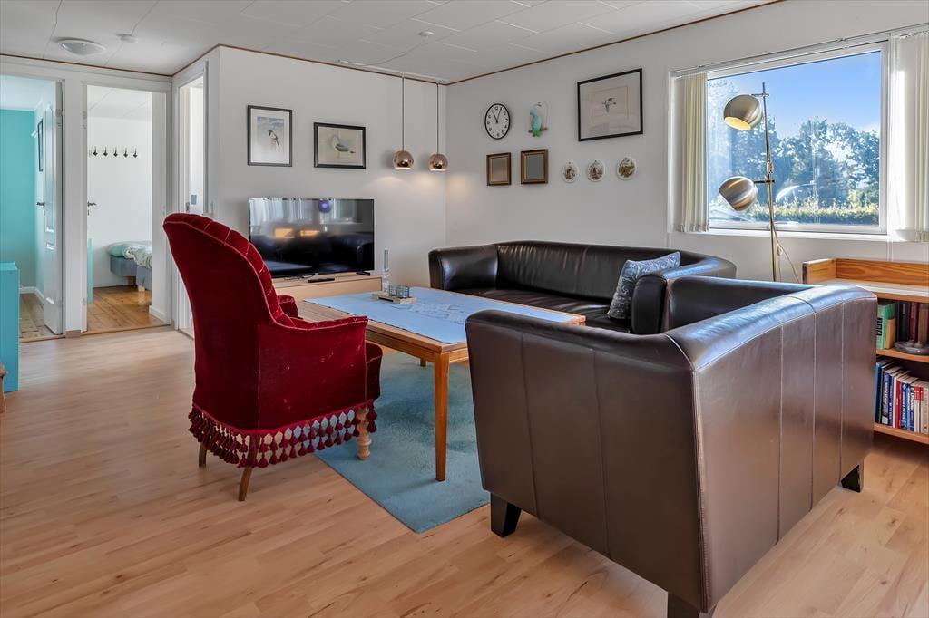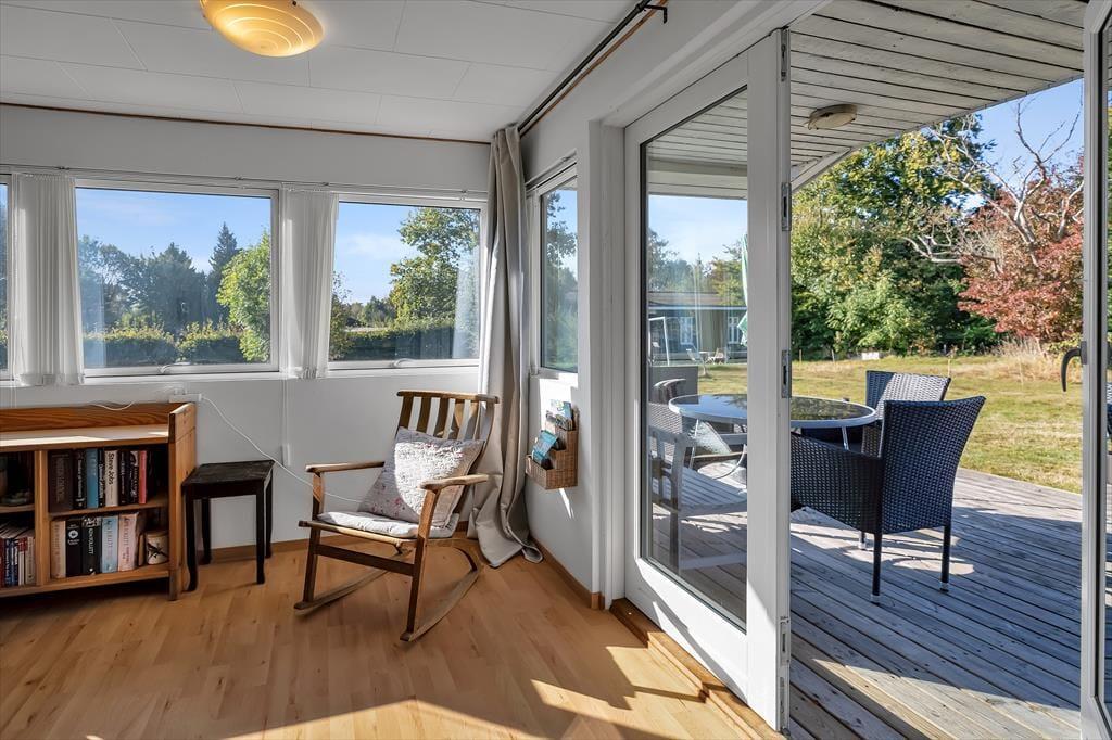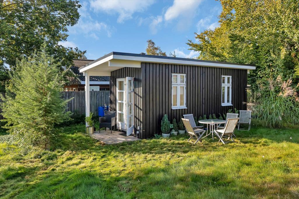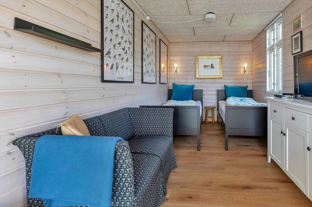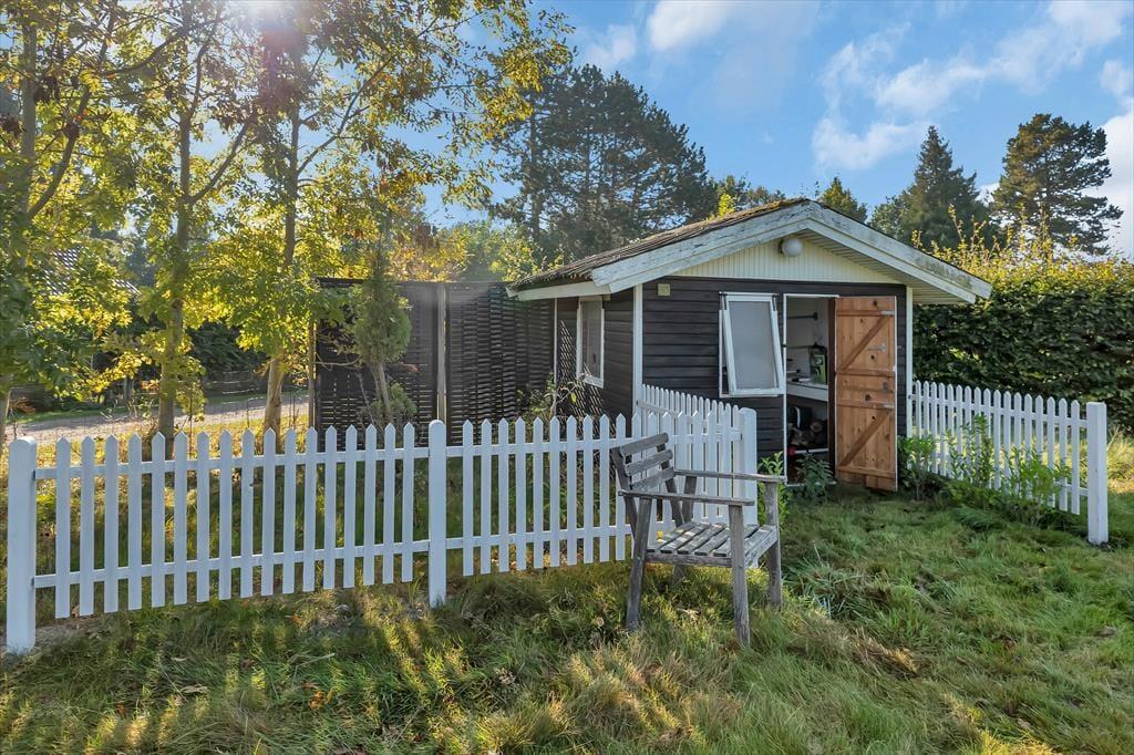 Huset indeholder 2 gode soveværelser med henholdsvis 1 dobbelt og 2 enkeltsenge og god skabsplads. I stuen er der fjernsyn med chromecast til streaming af fjernsynskanaler og åbent køkken. Fra stuen er der udgang til den hyggelige overdækkede terrasse, hvor du kan grille, hygge og se børnene lege i den store dejlige have med hyggeligt legehus med loft til kip samt fodboldmål. Det rummelige anneks indeholder dobbeltseng og TV .