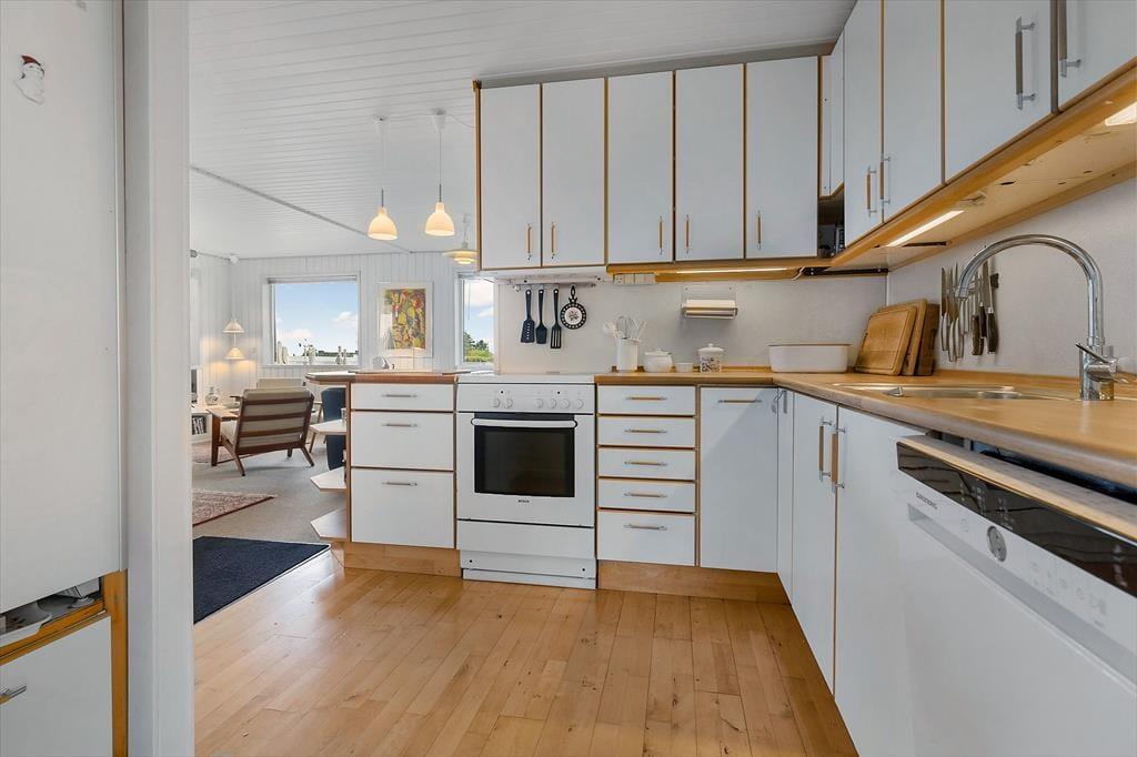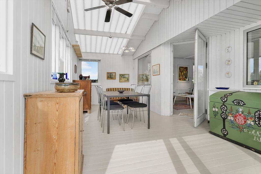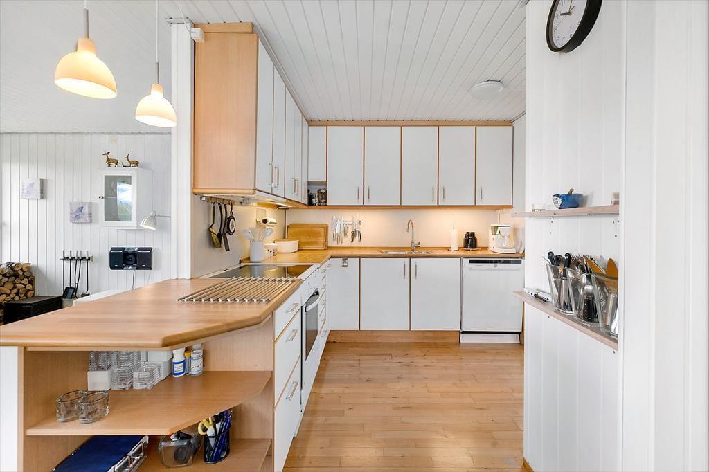 Sommerhuset fremstår både lyst og indbydende med en integreret udestue. Det åbne køkken i forbindelse med stuen er samlingspunktet, hvor dagens oplevelser drøftes over en god middag, inden der skal slappes af i sofaen enten med en god bog eller film, imens ilden i brændeovnen syder bag glasset. I huset er der 2 gode soveværelser sat et anneks med plads til 2 personer.